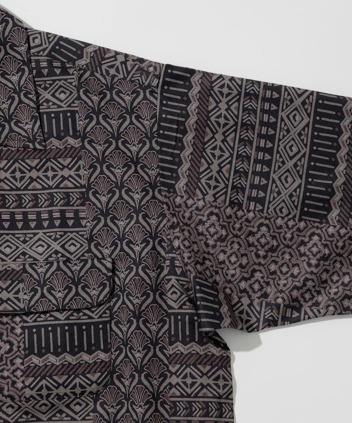 印度制 寬鬆版型 巴蒂克圖案印花 開領襯衫 短袖 非洲風格