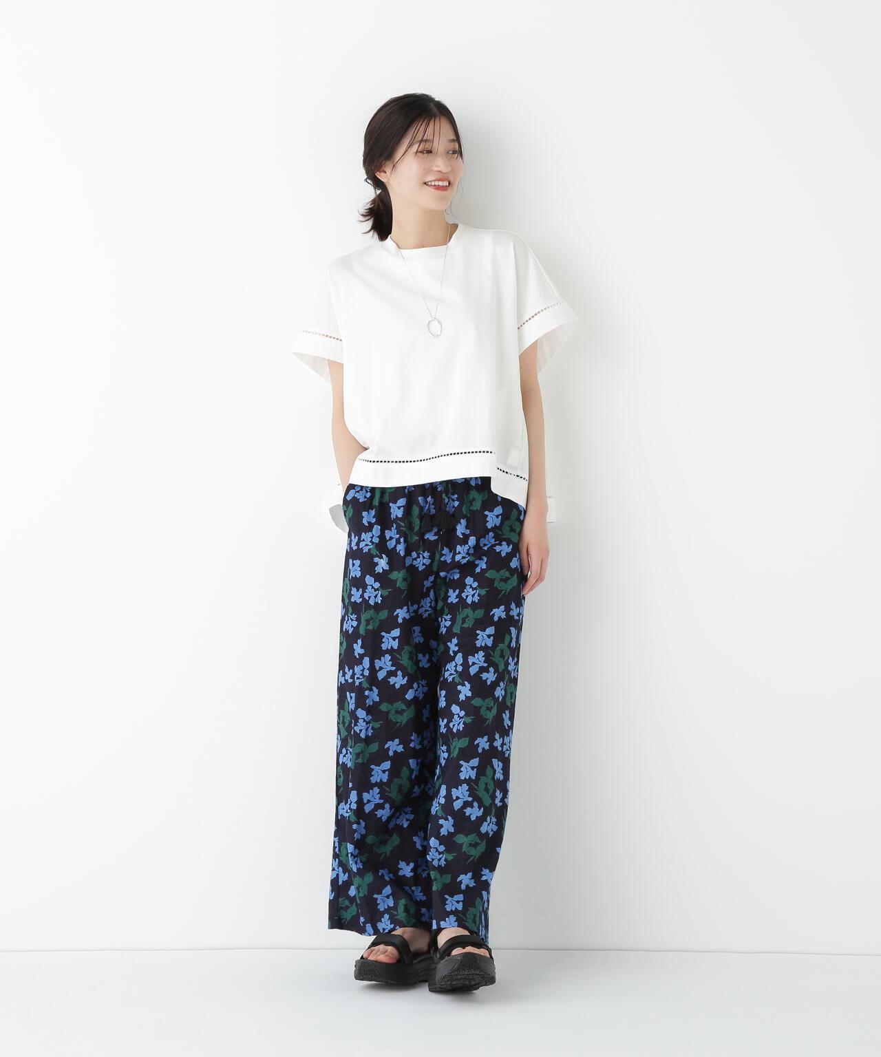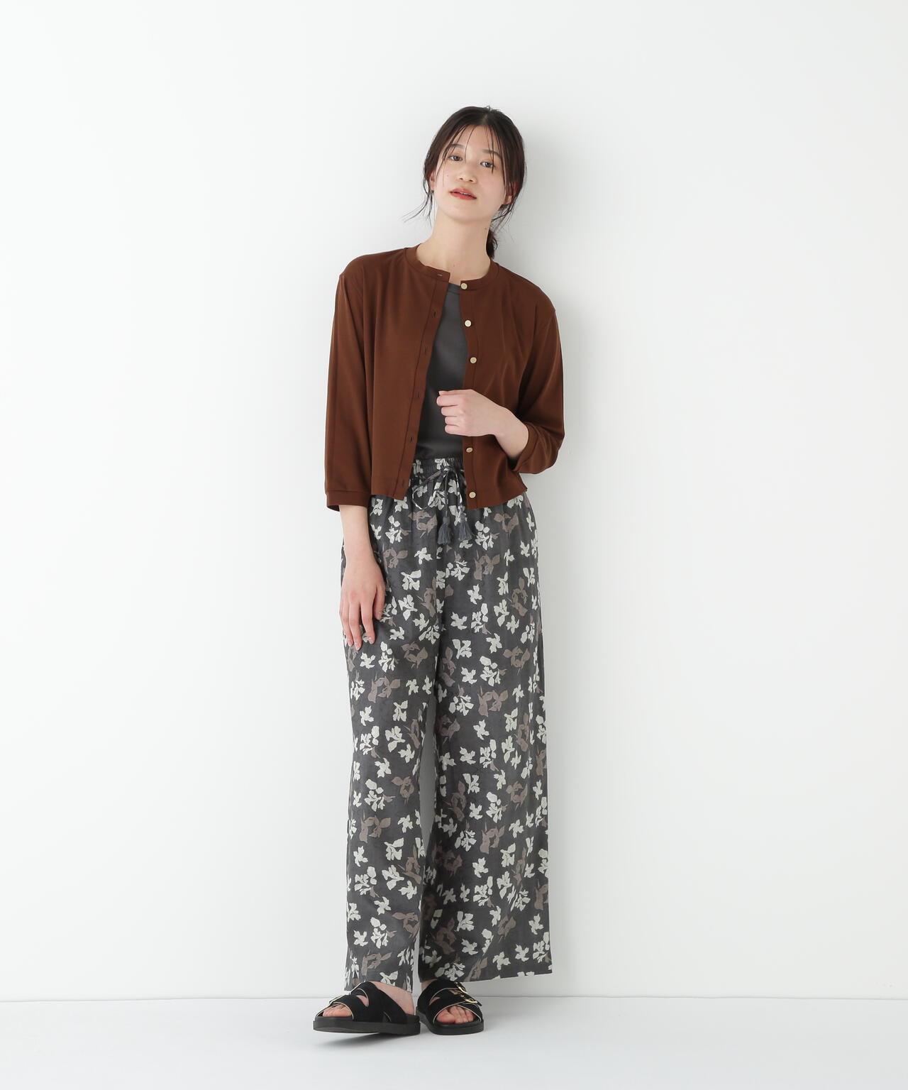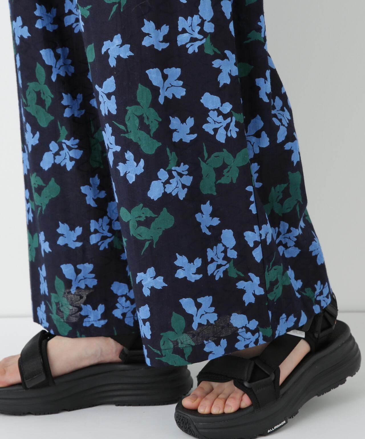 這款簡便的長褲上印有醒目的藝術印花,為夏日增添了一抹亮色 [設計要點] 這款印花半寬鬆長褲的腰部有印度風格的流蘇抽繩。設計基於原始的印度印花材料,在多臂棉質薄紗上跳過醒目的雅緻樹葉圖案,呈現出幾何圖案。推薦搭配:這款打底褲具有很強的存在感,但採用了基本色,因此是一款夏季打底褲,既可搭配彩色上衣,也可搭配簡單的上衣。建議搭配涼鞋。