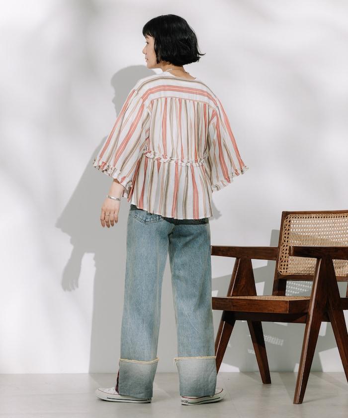 華麗的長袍上有獨創的多條紋圖案。