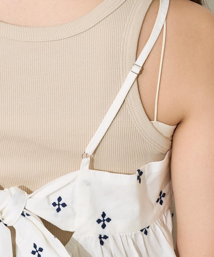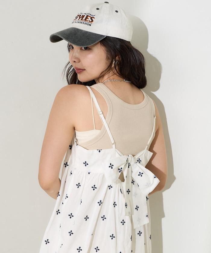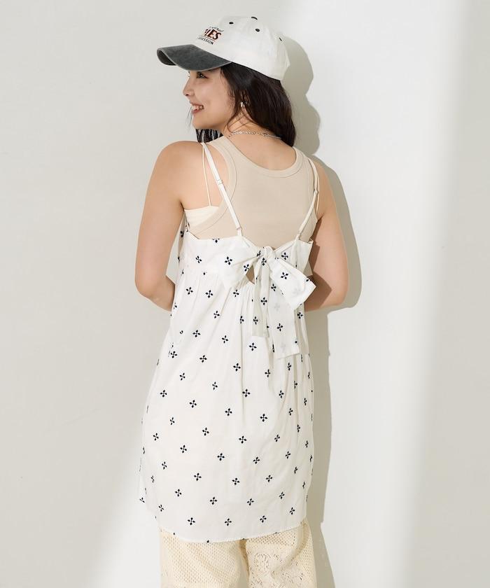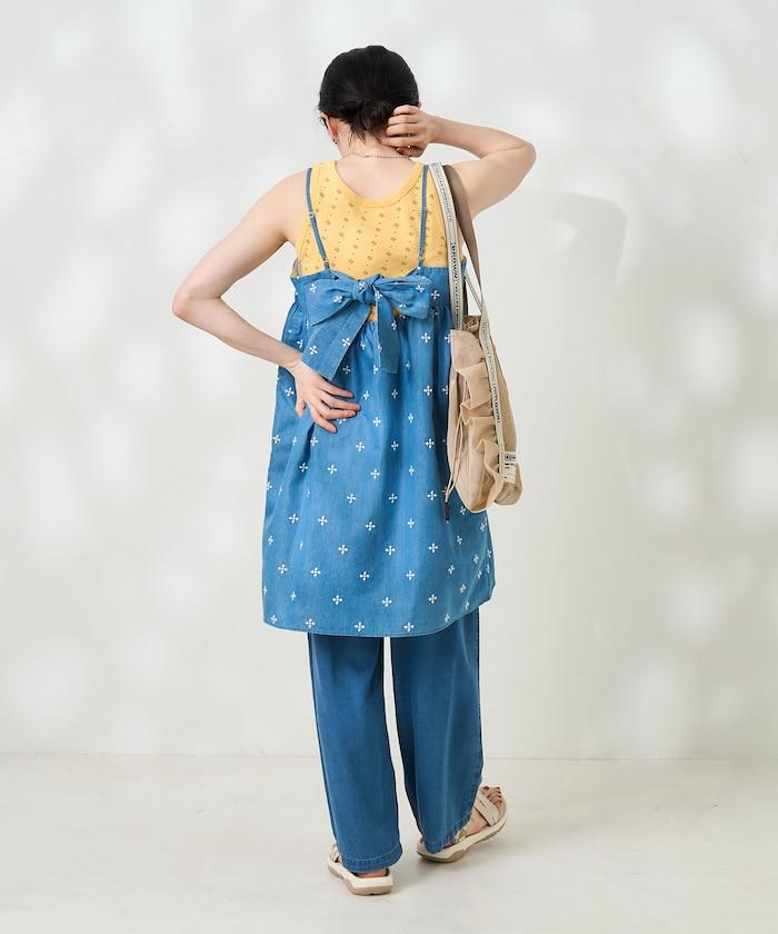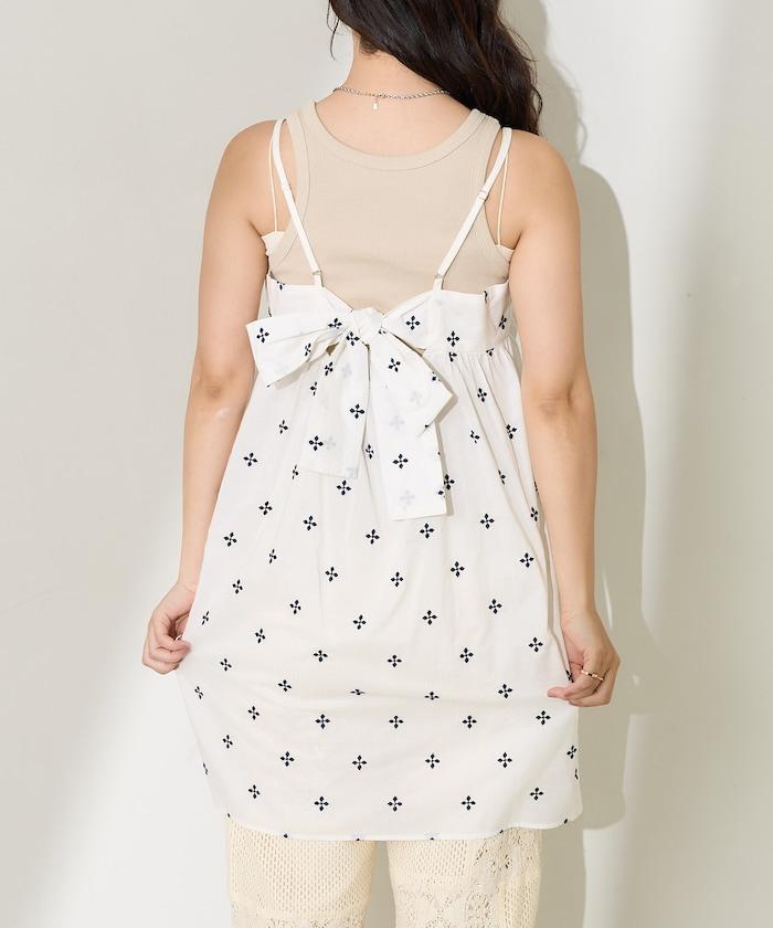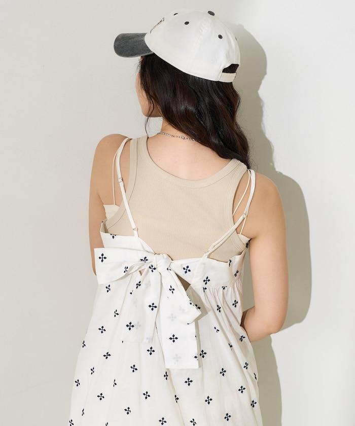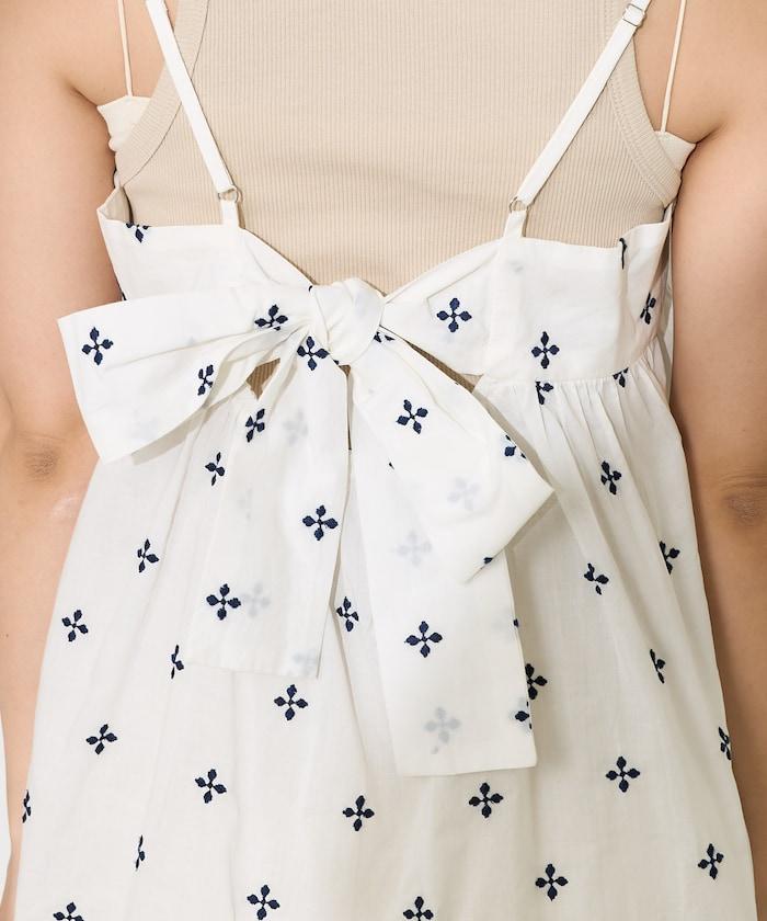 印度小花刺繡細肩帶蝴蝶結連衣裙