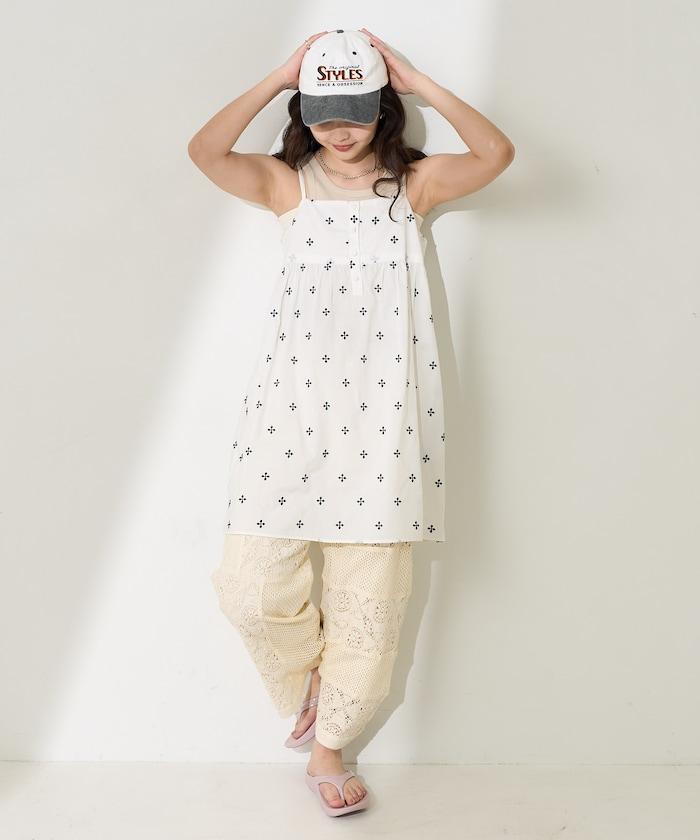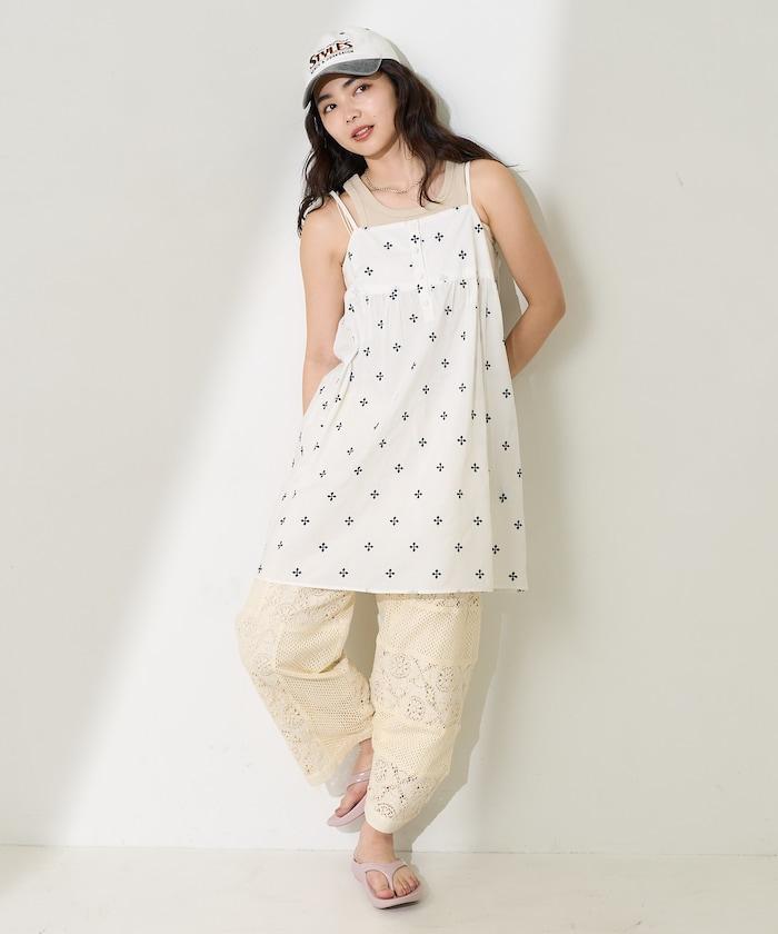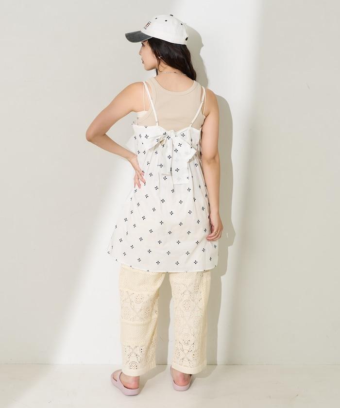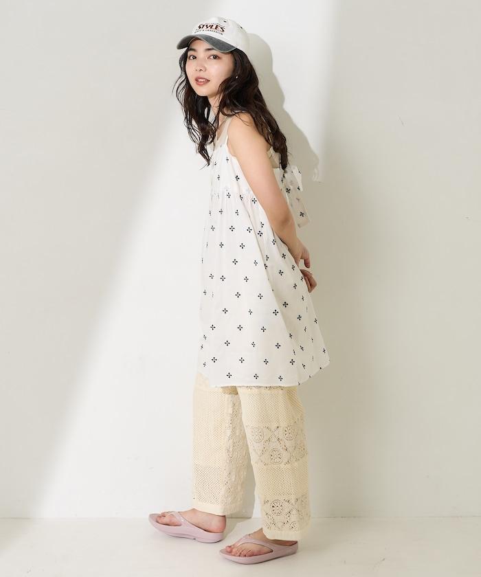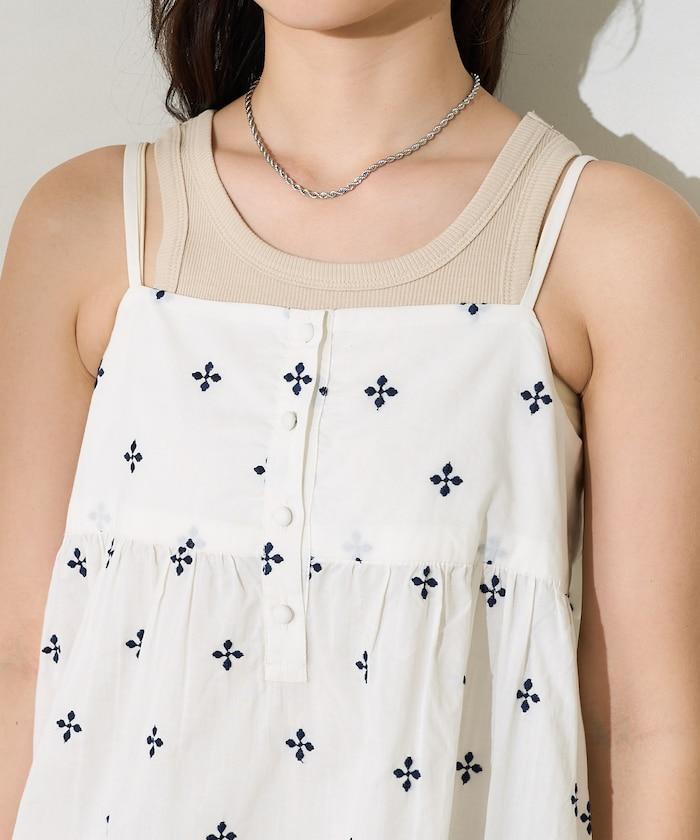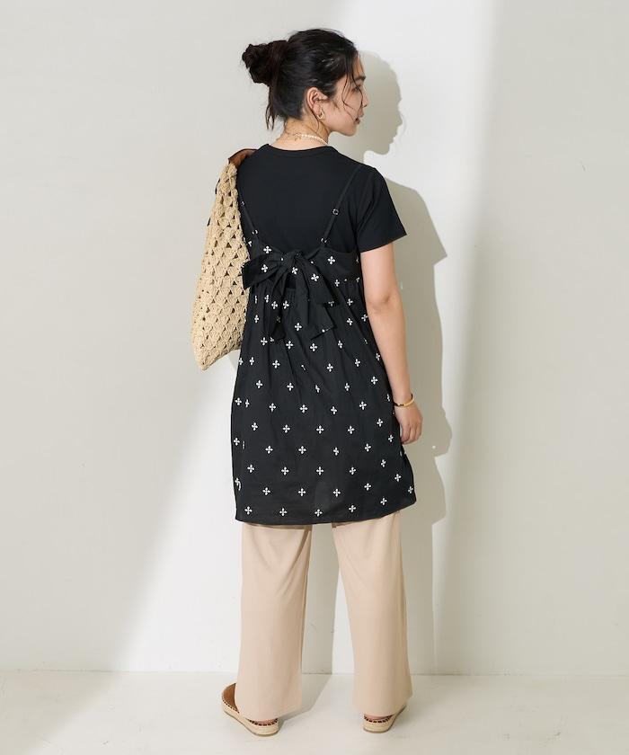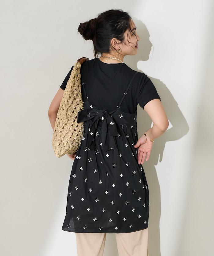印度小花刺繡細肩帶蝴蝶結連衣裙