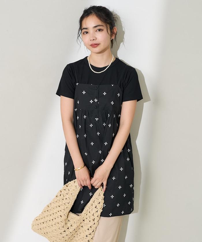 刺繡迷你連衣裙,可疊加穿著,華麗協調。