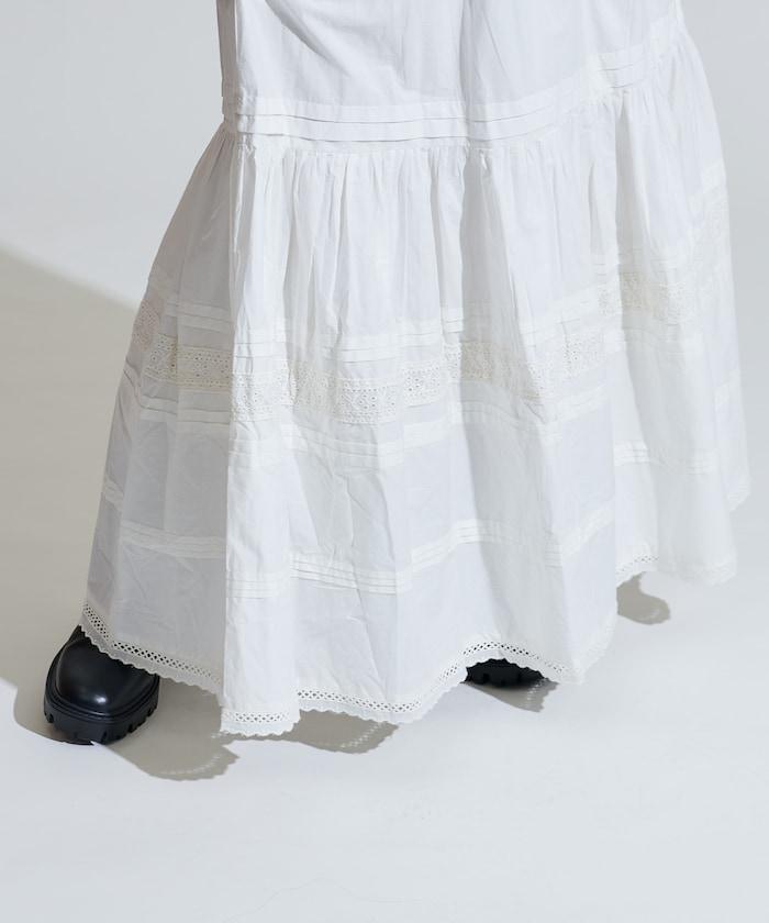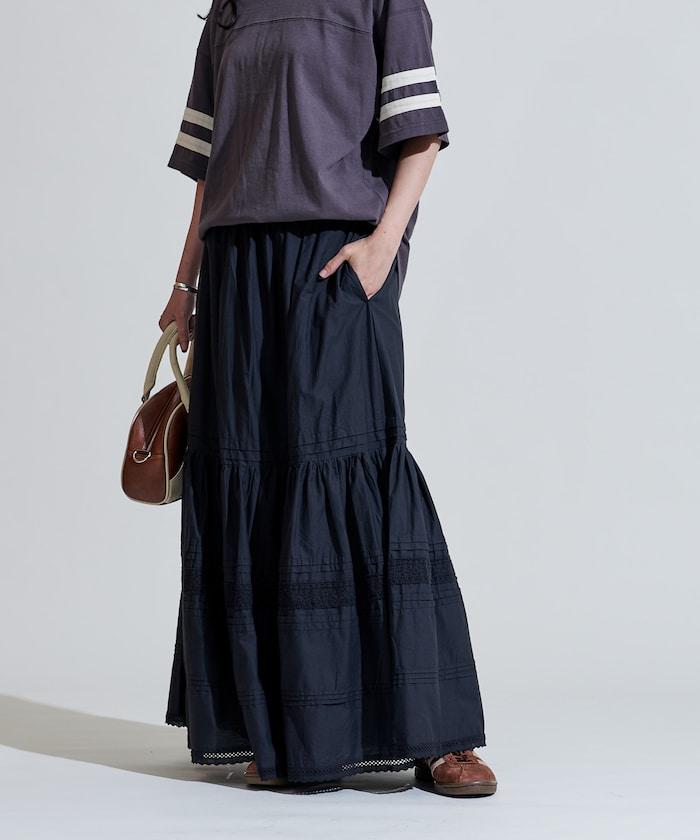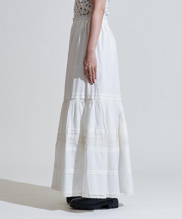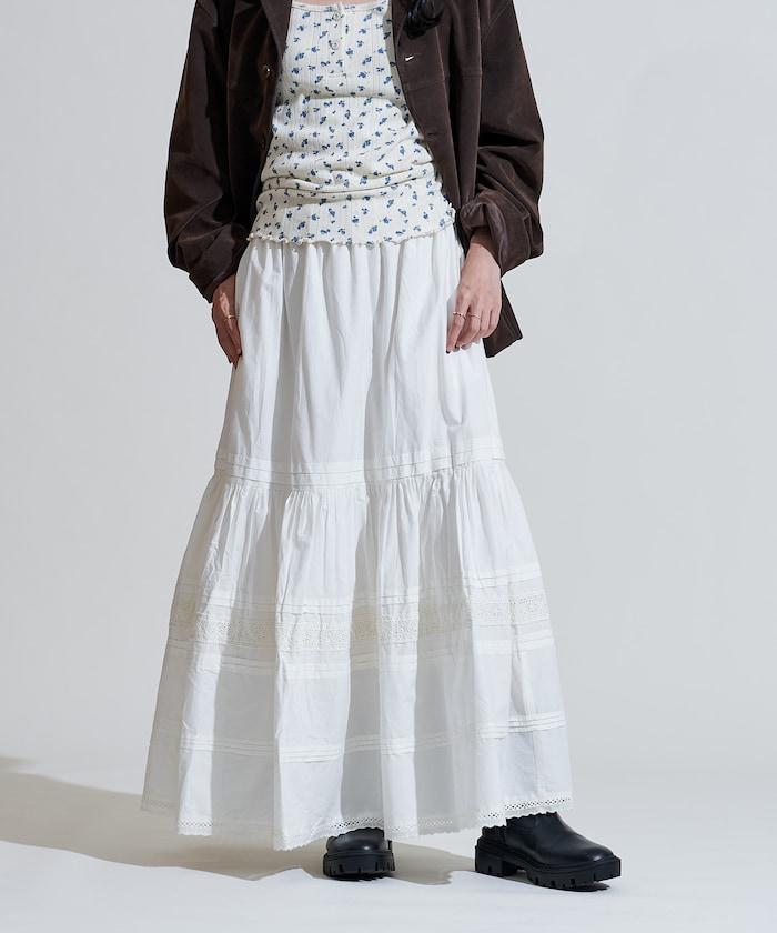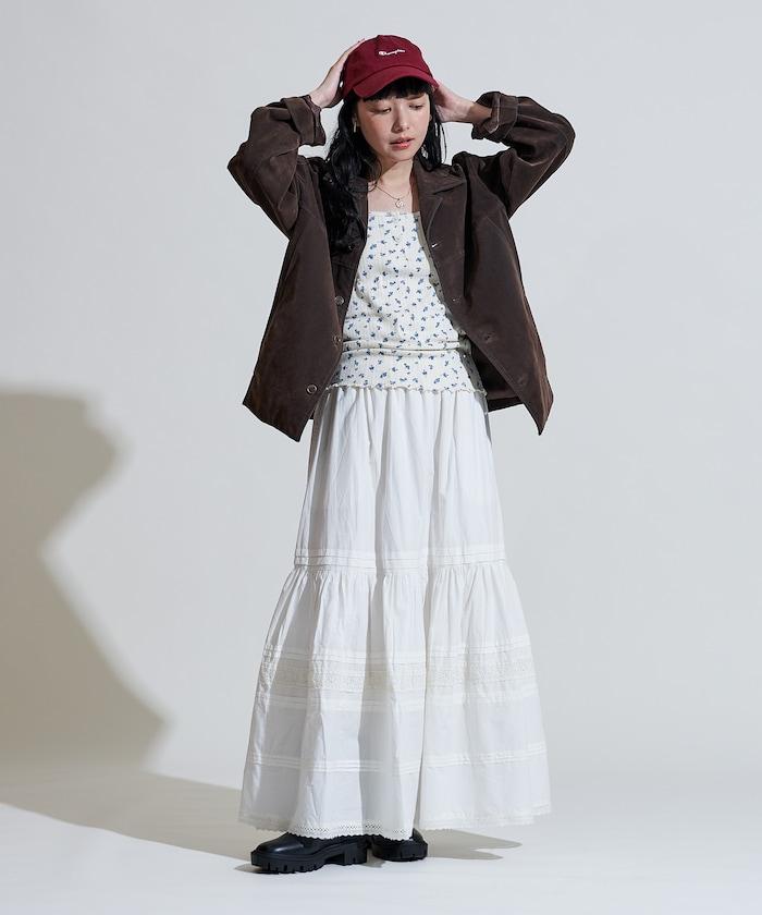 棉質半身裙,採用層疊和內搭設計,呈現出優美的喇叭形輪廓。