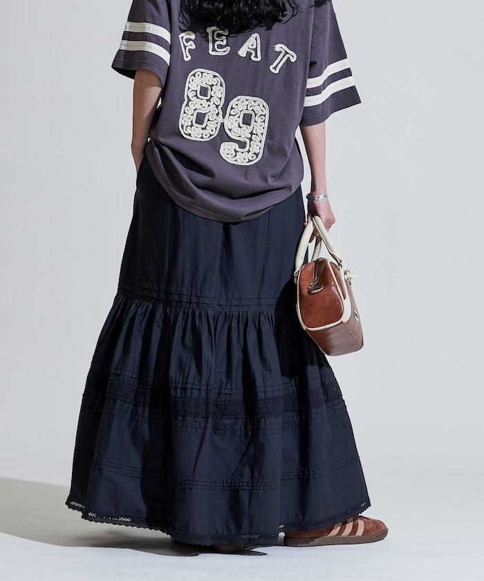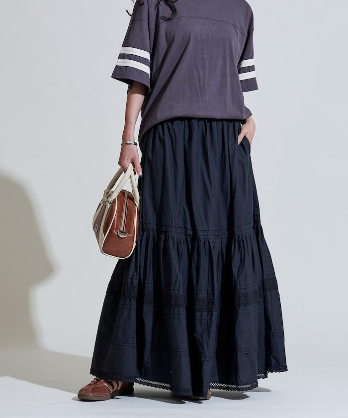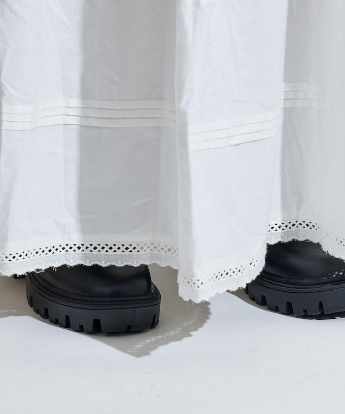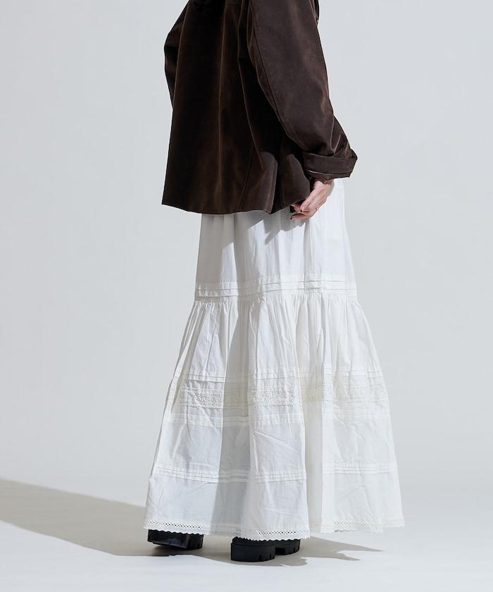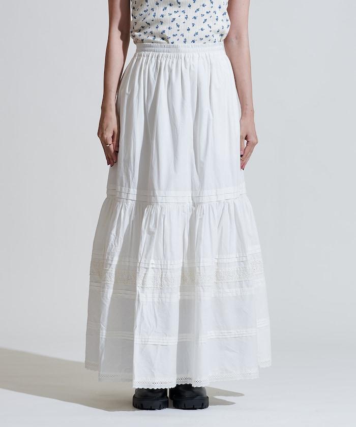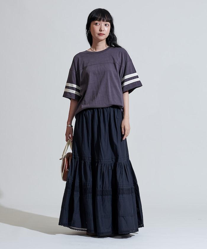 棉質半身裙,採用層疊和內搭設計,呈現出優美的喇叭形輪廓。
