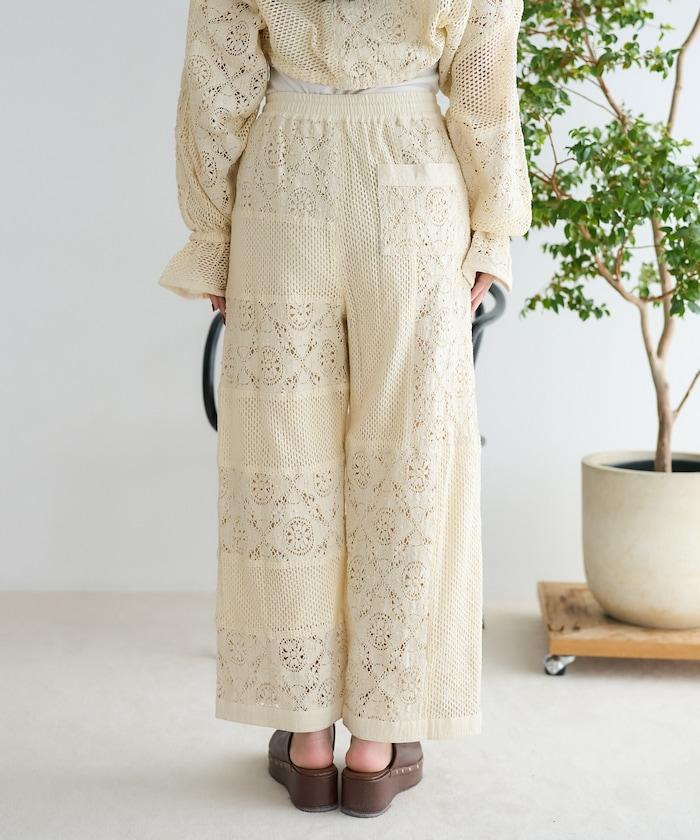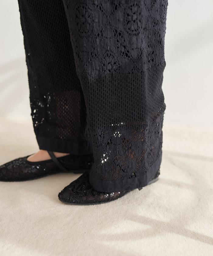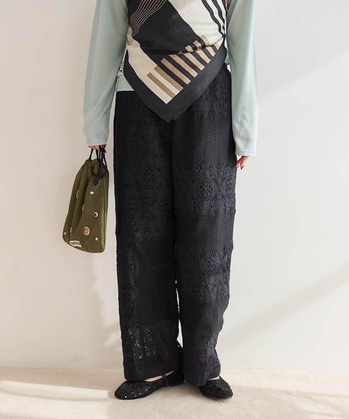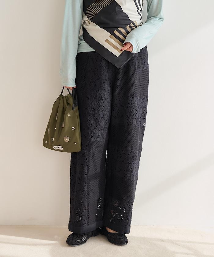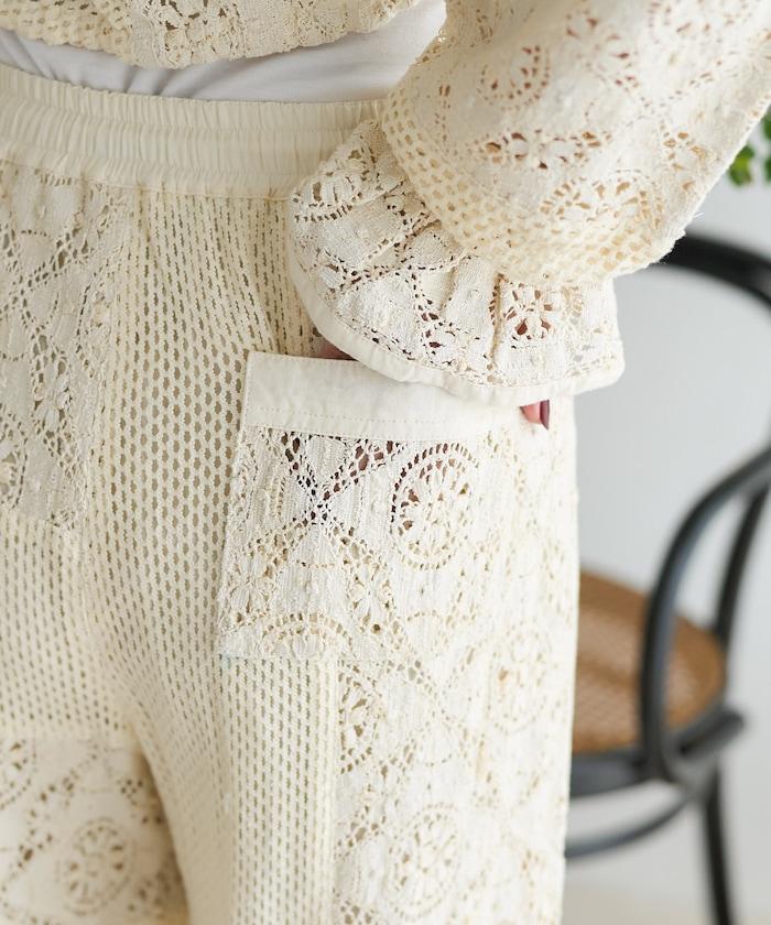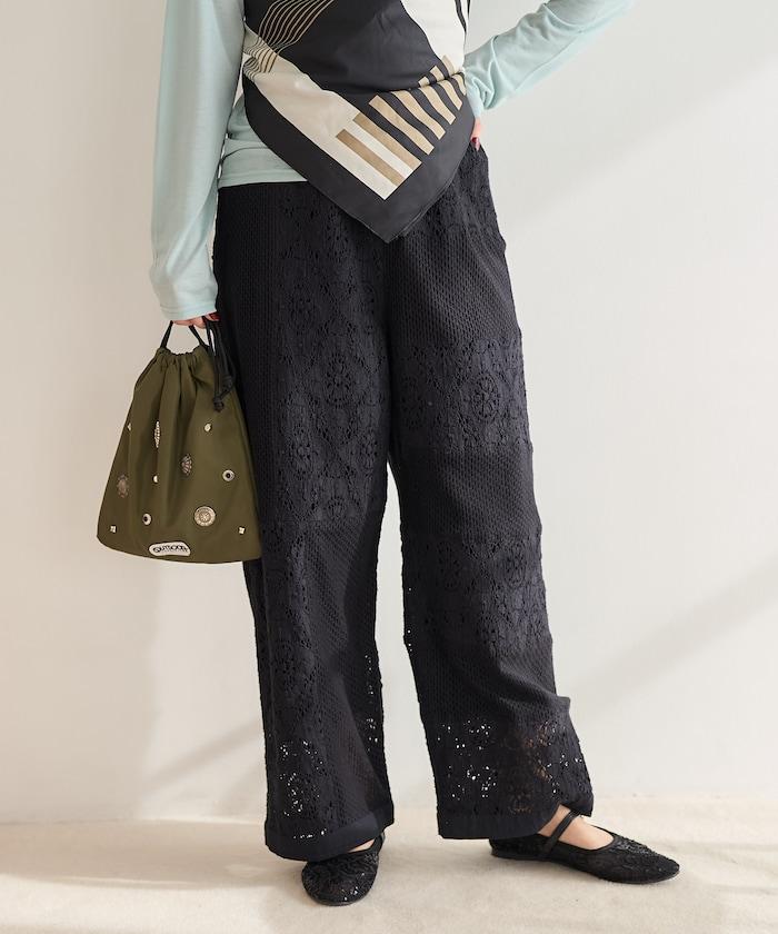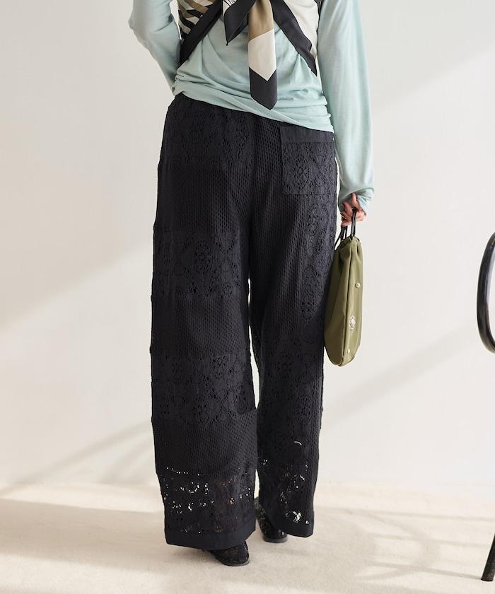 這款長褲採用多種蕾絲拼接工藝,具有類似翻拍的迷人外觀。