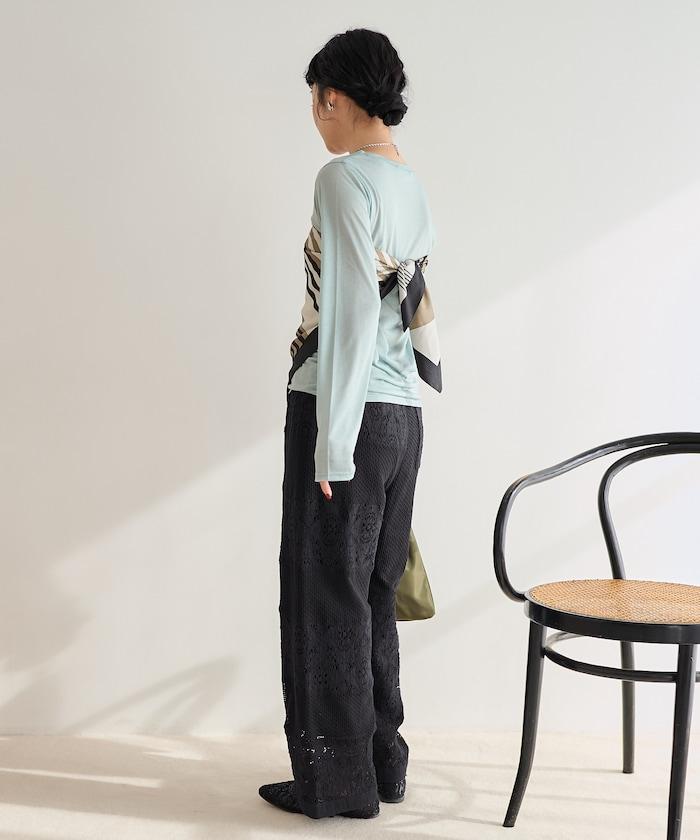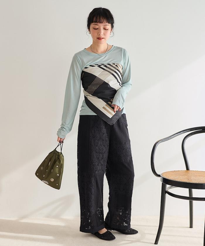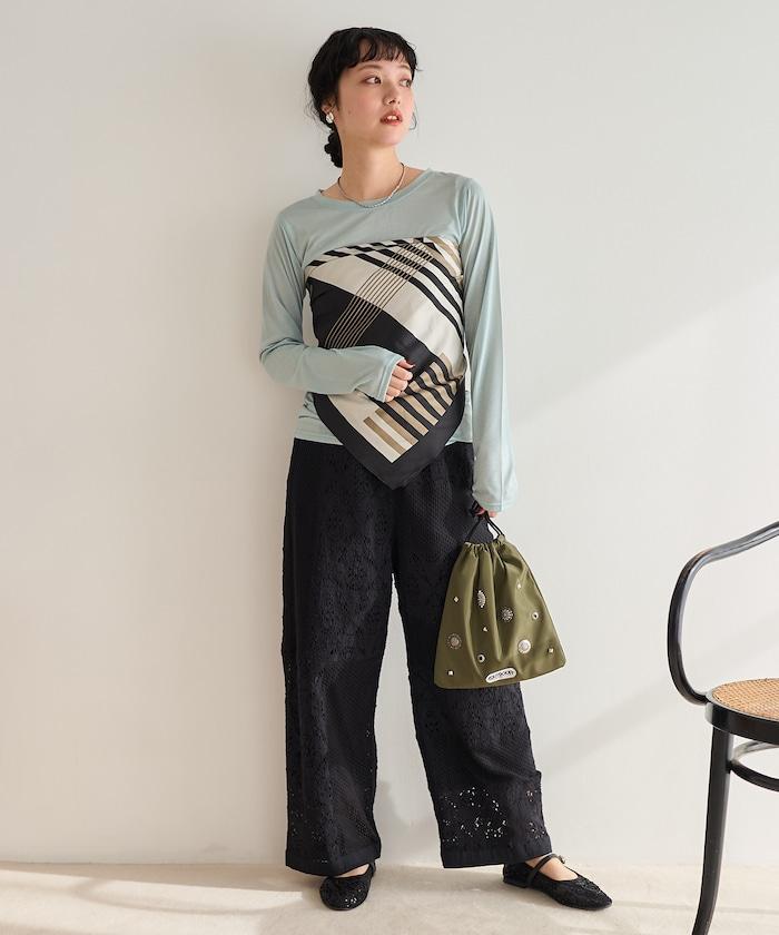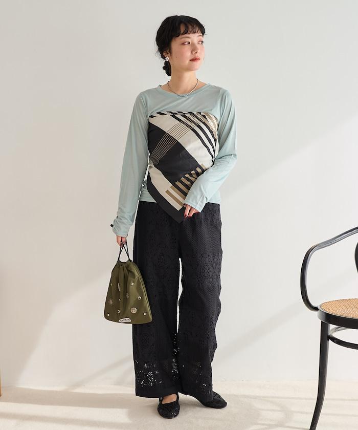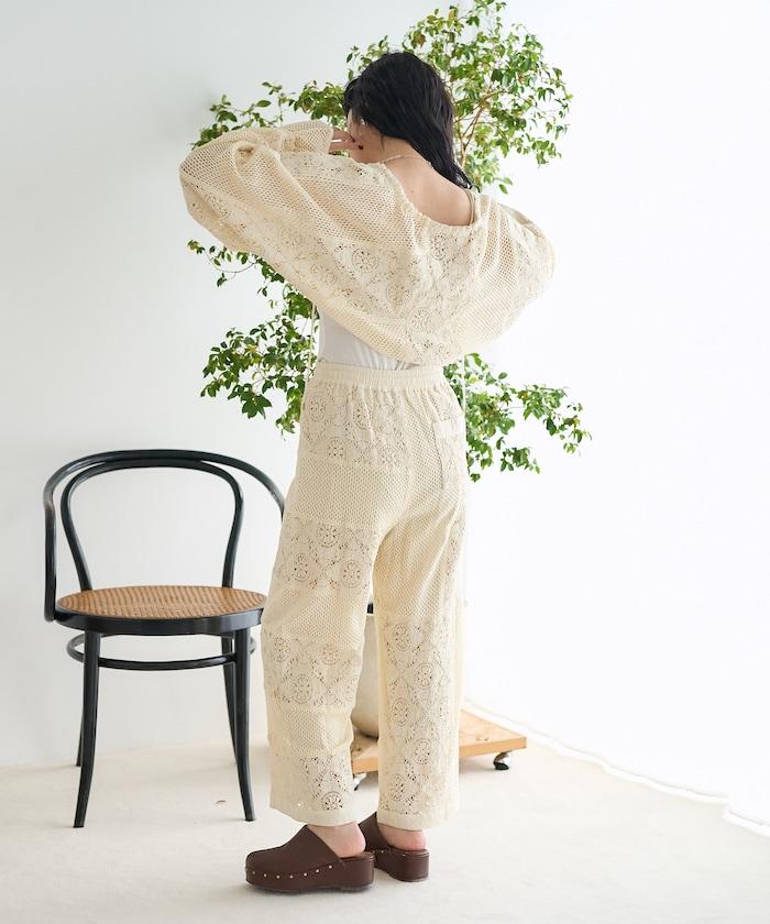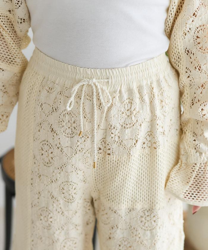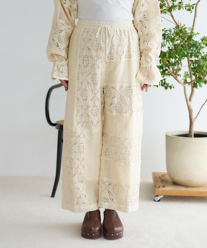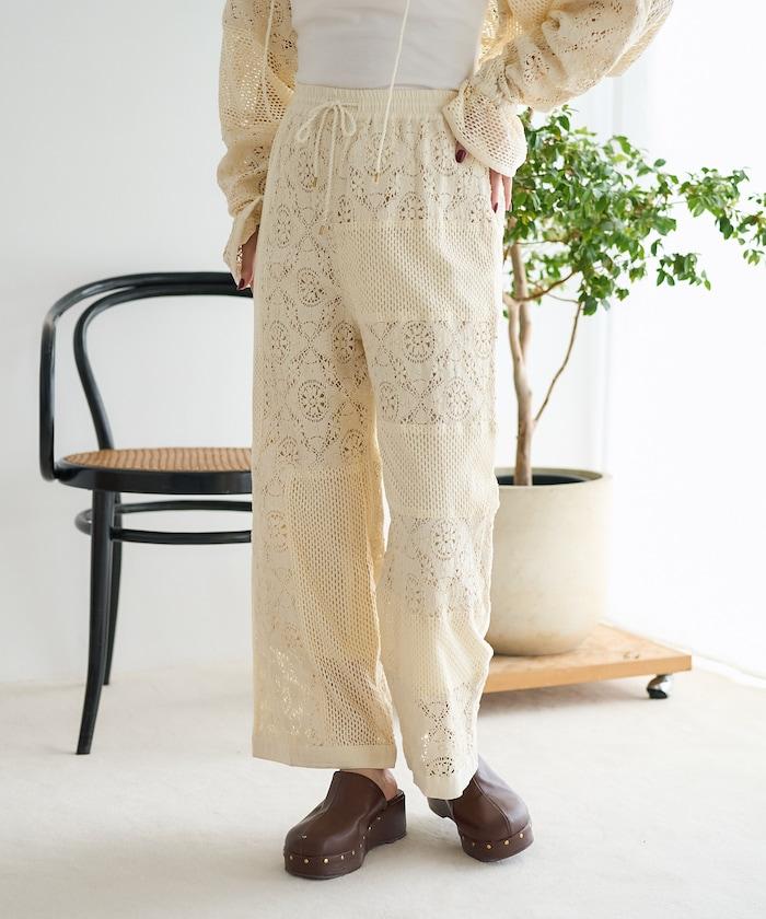 這款長褲採用多種蕾絲拼接工藝,具有類似翻拍的迷人外觀。