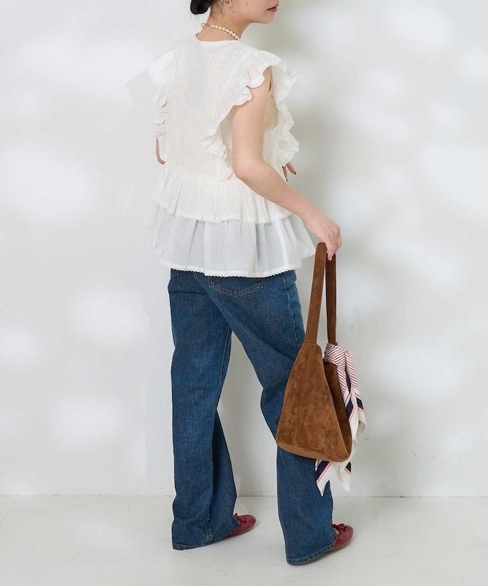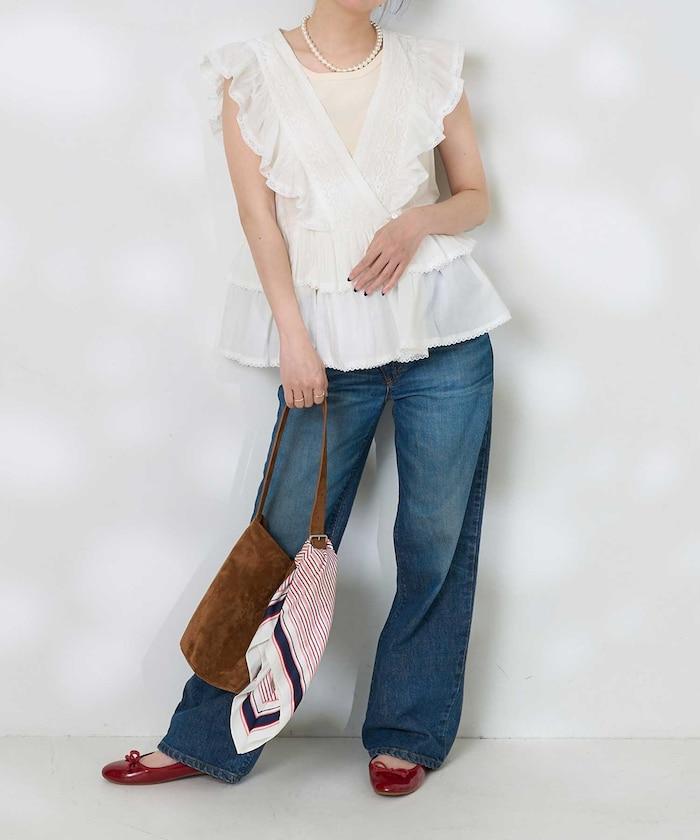 上衣與牛仔褲是絕配,建議搭配簡潔的長褲,讓上衣成為主角。