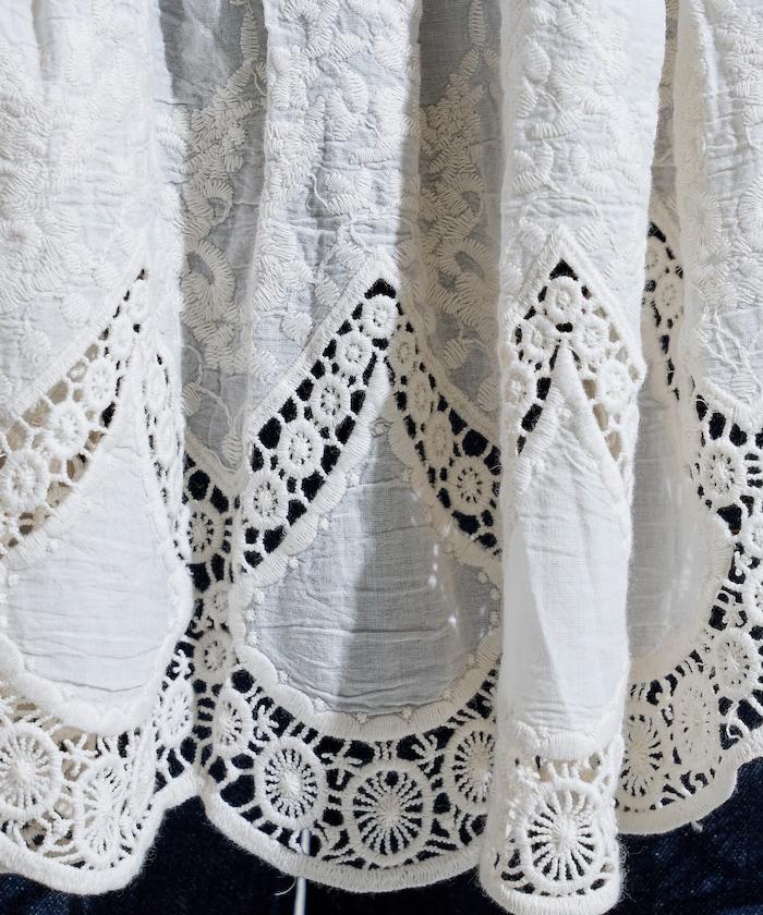 精緻的刺繡和蕾絲是這款只有印度才能製作的單品的重點。復古蕾絲般的質感非常迷人。