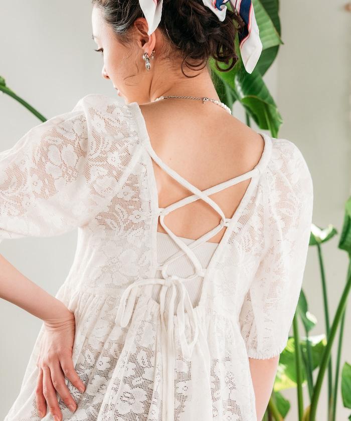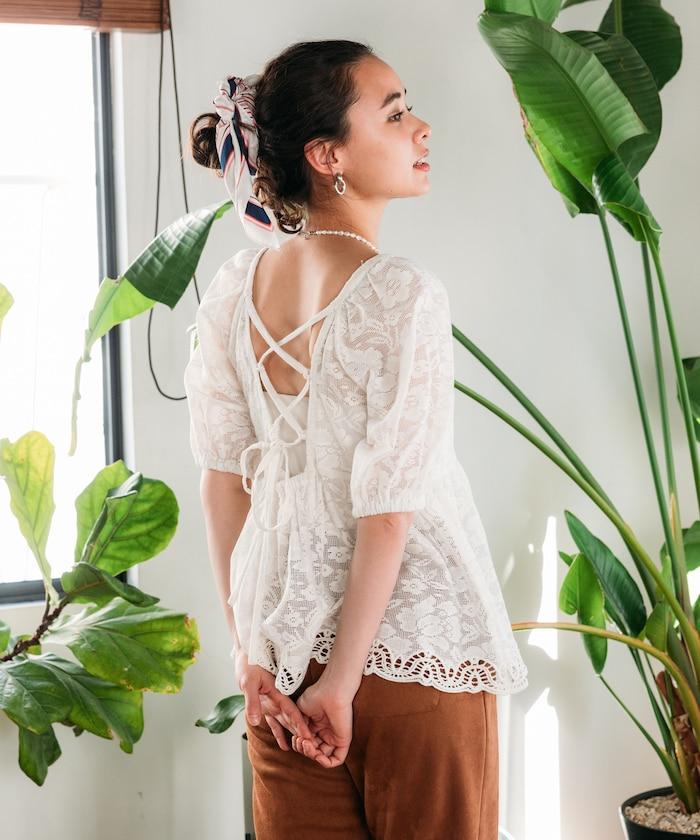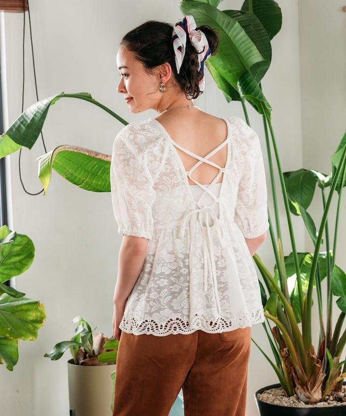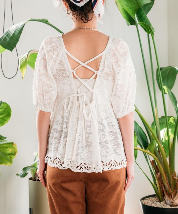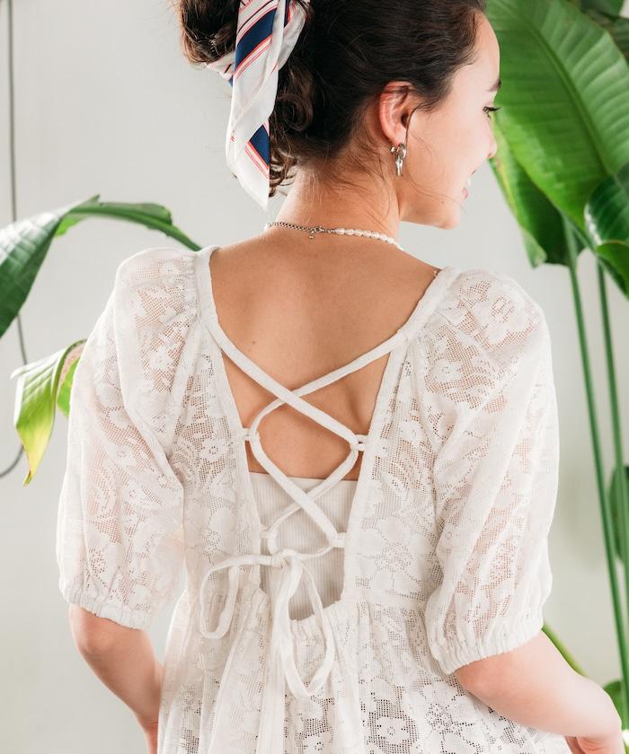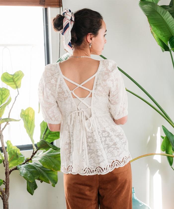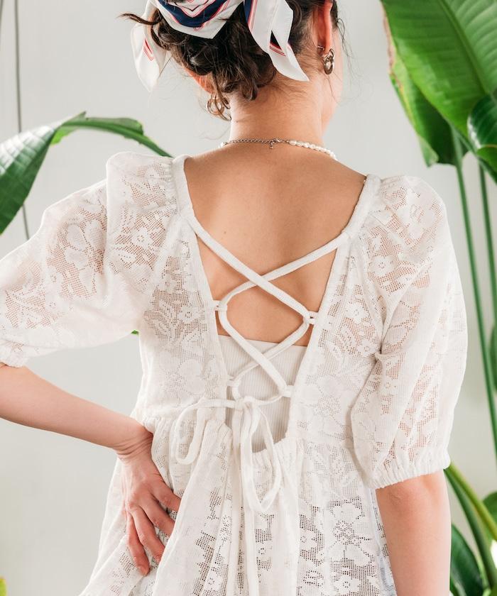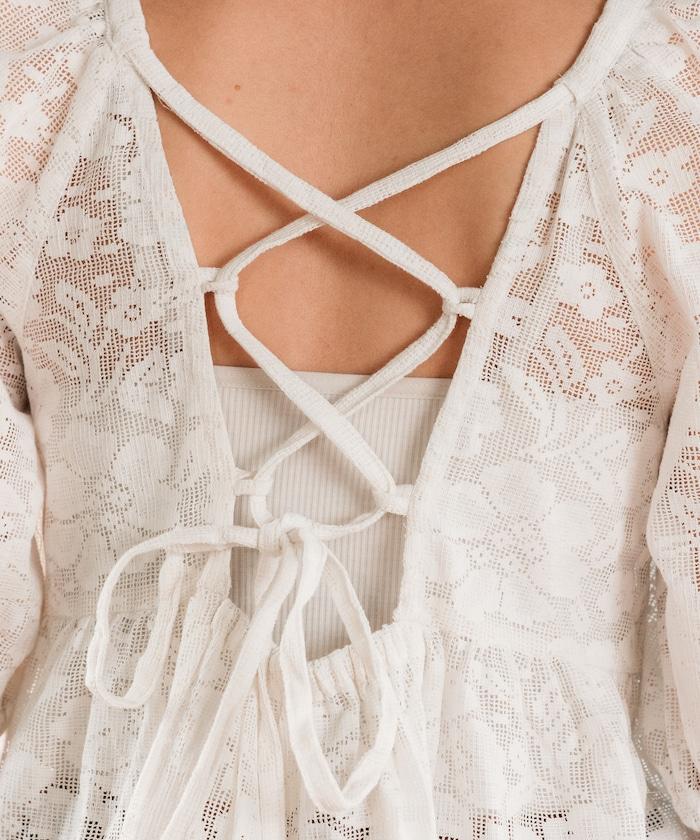 印度蕾絲開背泡泡袖上衣