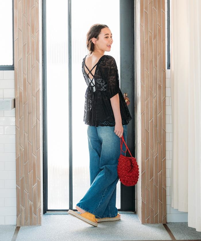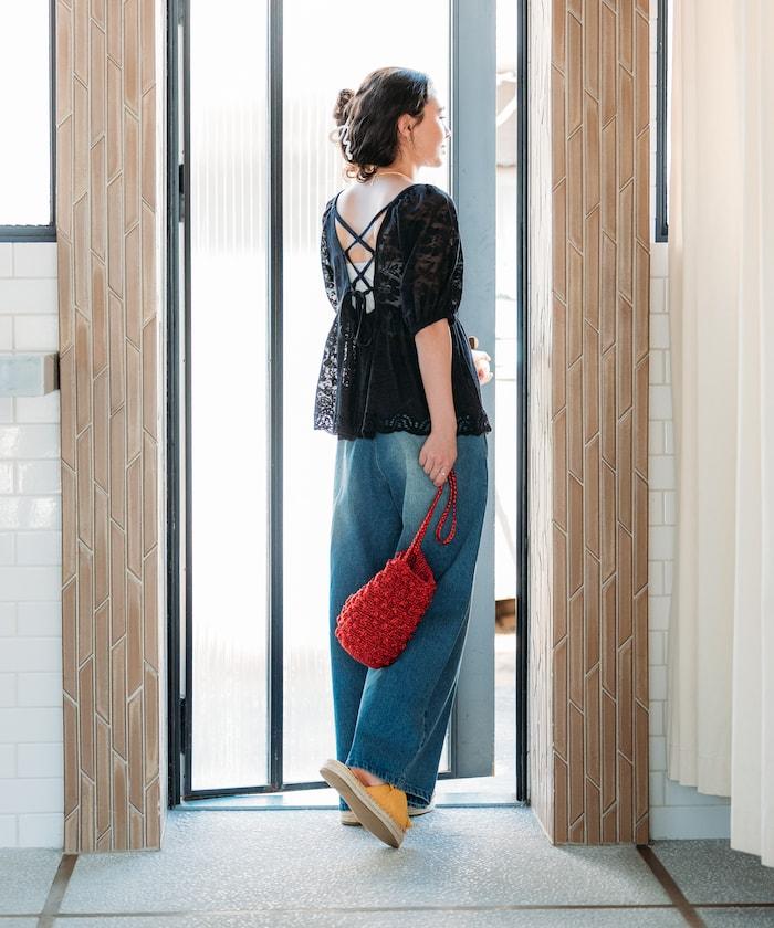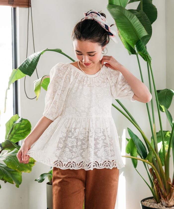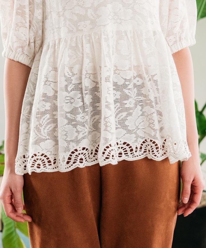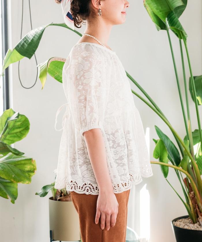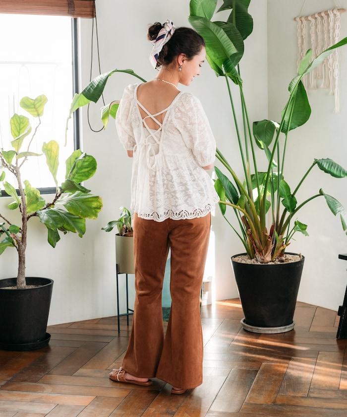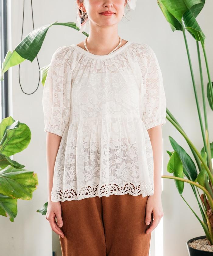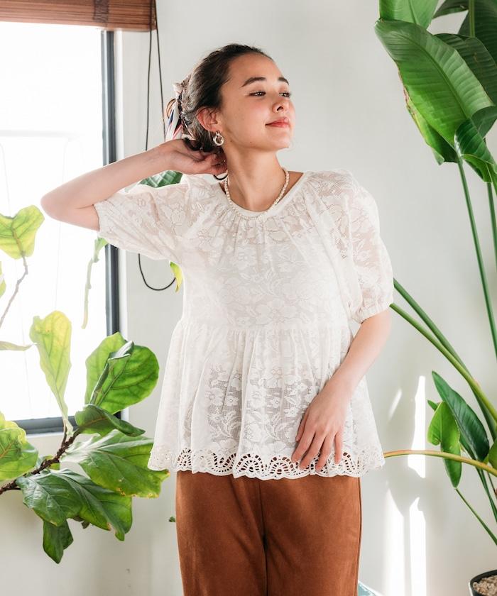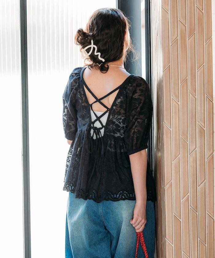印度蕾絲開背泡泡袖上衣