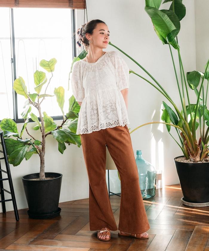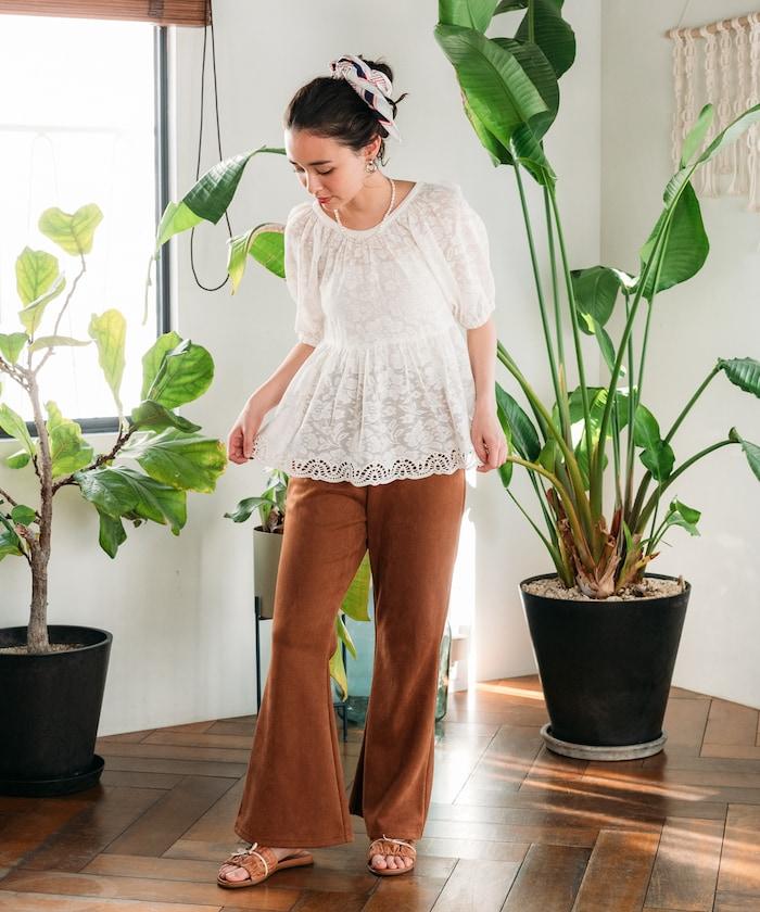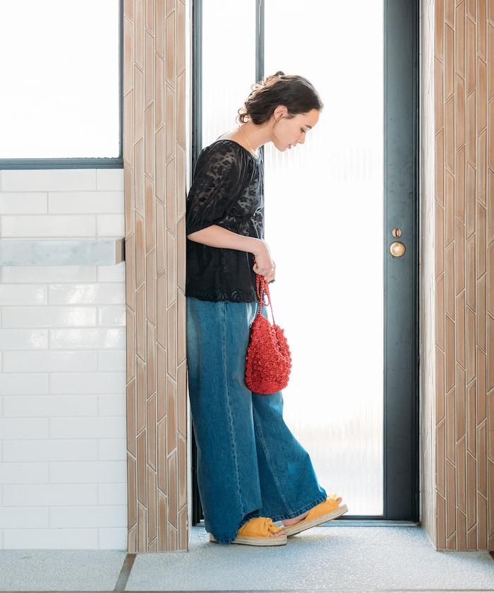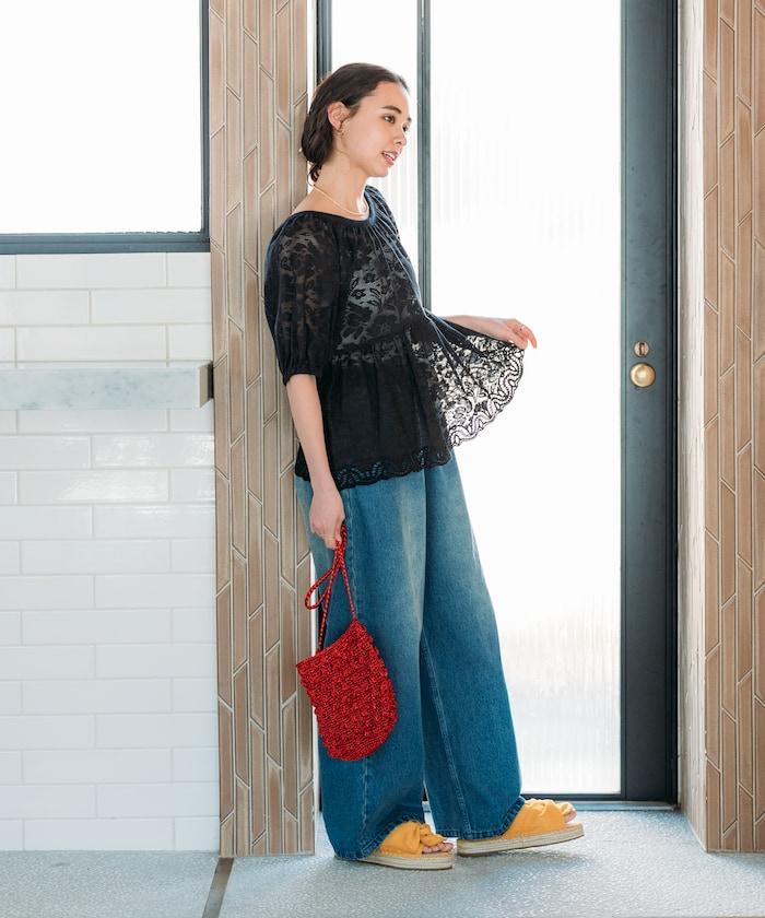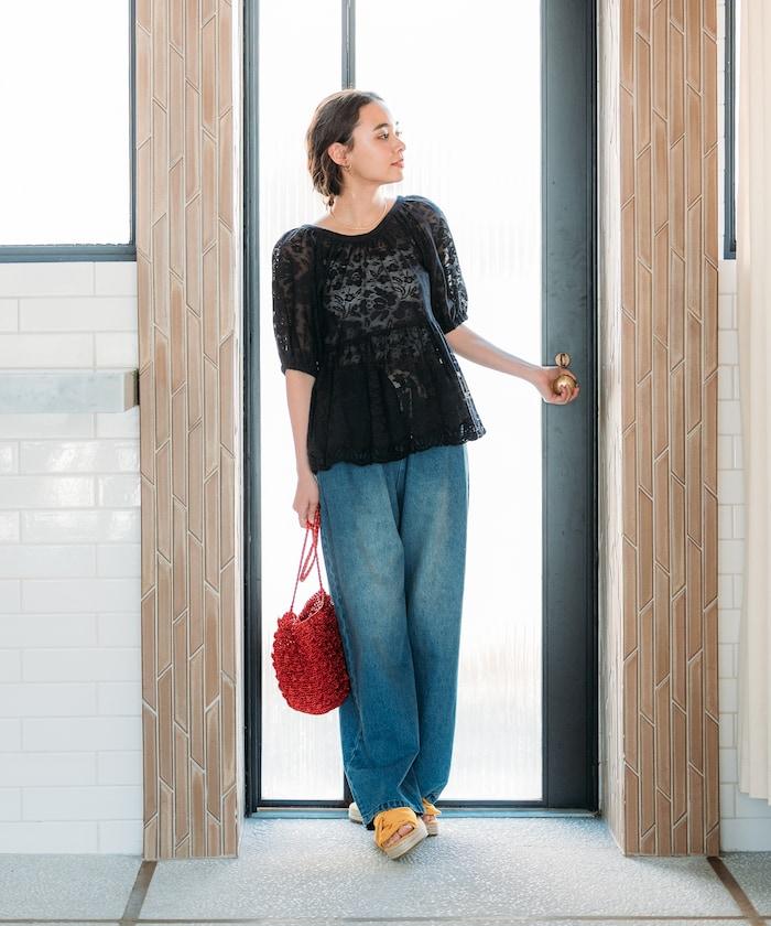 因為是甜美單品,建議搭配牛仔褲或類似男士的寬褲。