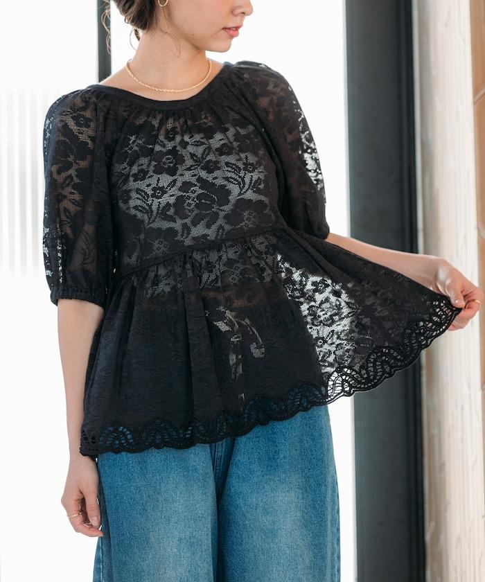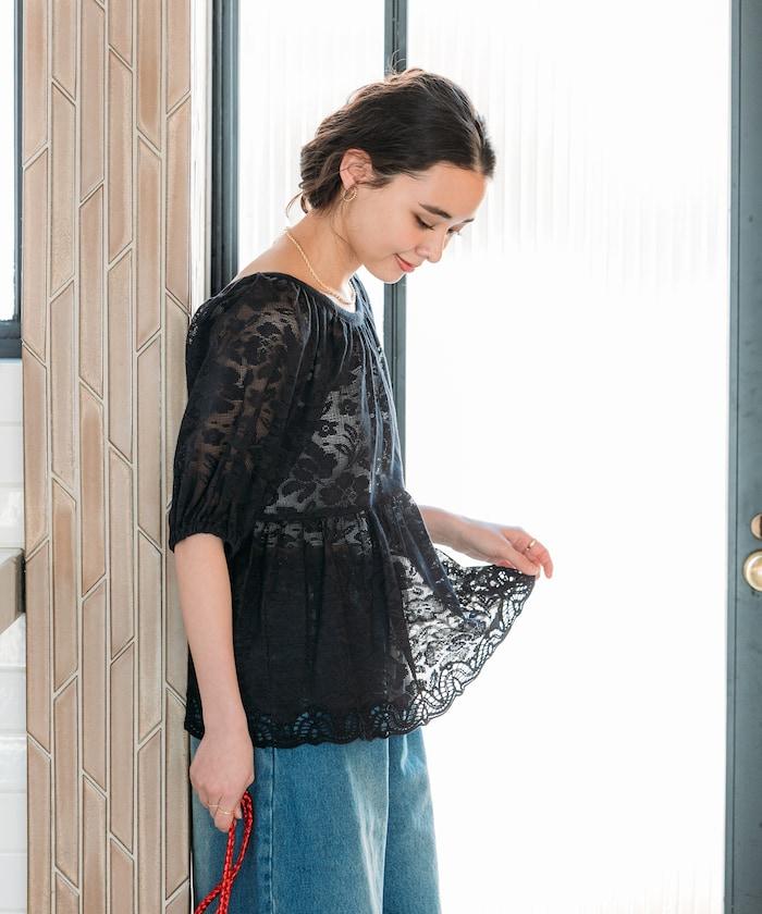 成熟通透的全長蕾絲上衣。