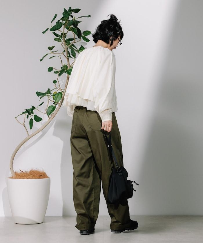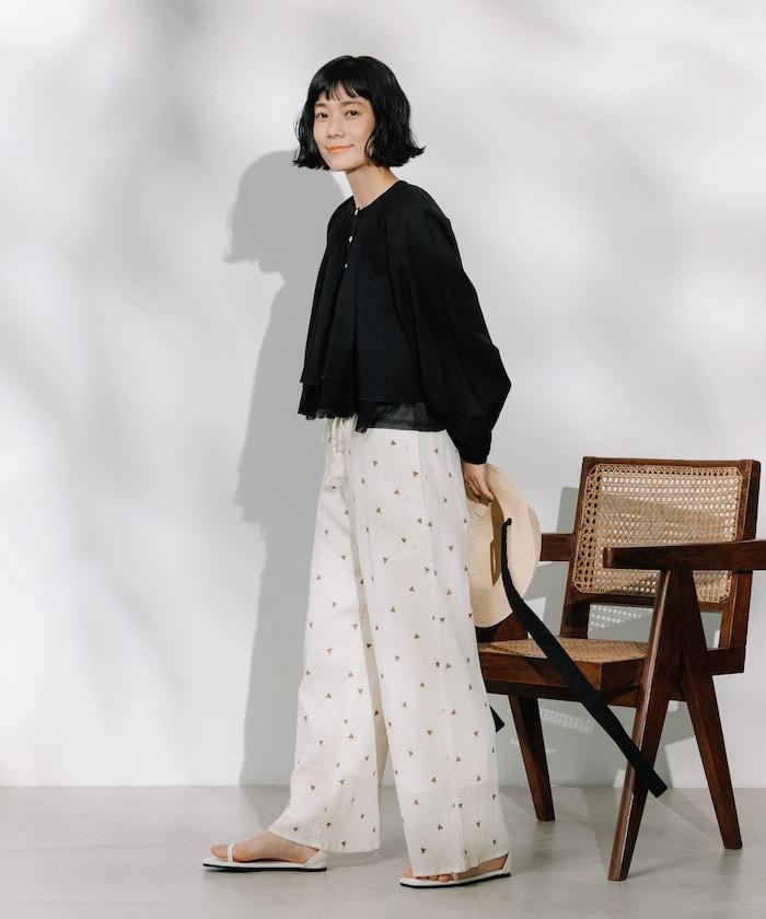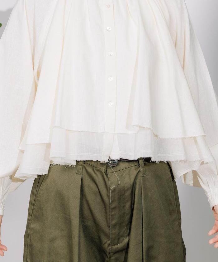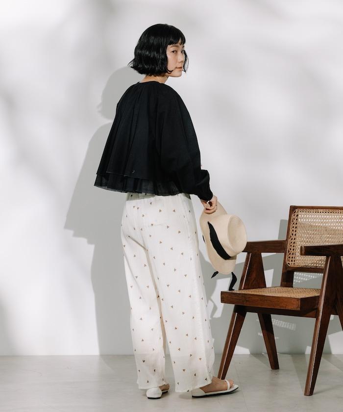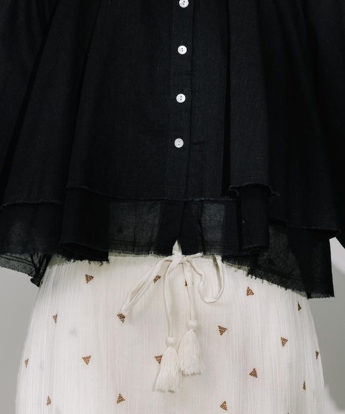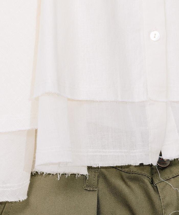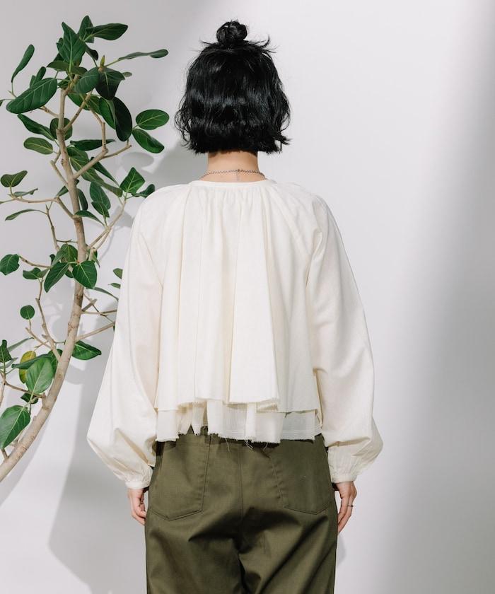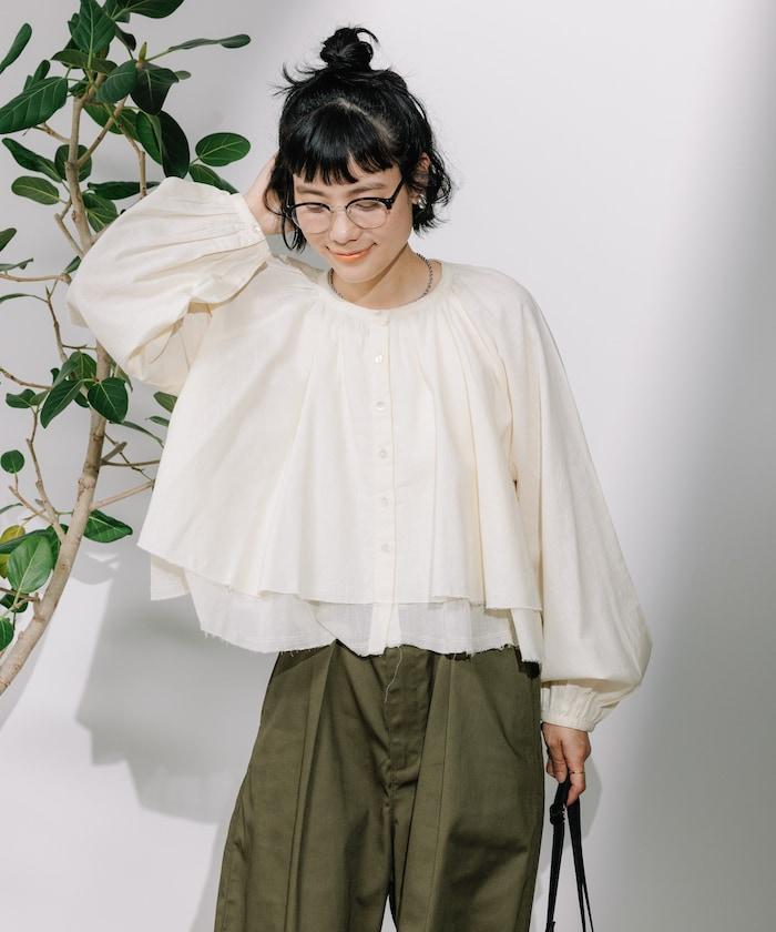 這款設計看上去就像是用具有古樸感的棉麻面料和具有薄紗感的棉質紗布層疊而成。