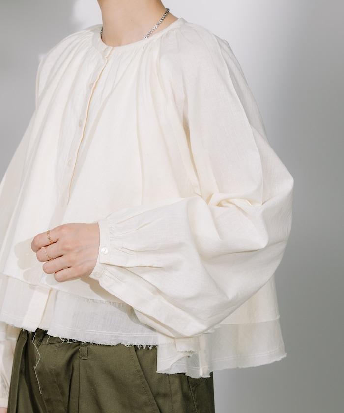 層疊式上衣,柔和圓潤的廓形營造出溫婉的氛圍。