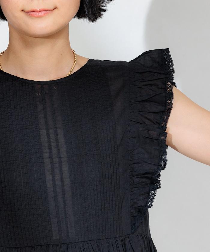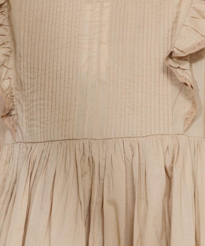 精緻的面料和蕾絲上飾有大量細密的褶襉,設計極具女性魅力。