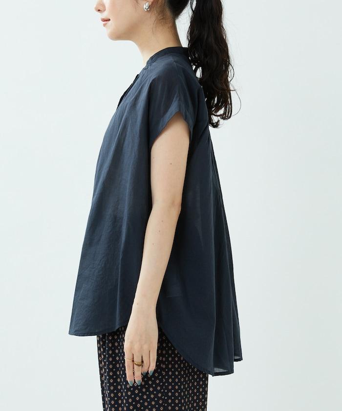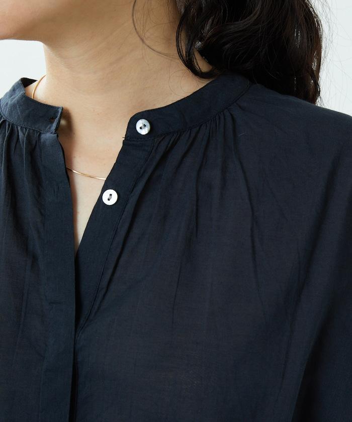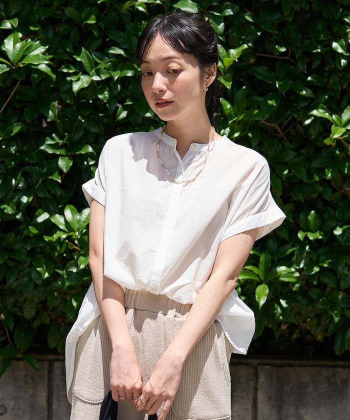 簡潔的無領法式袖襯衫,成熟而輕鬆。