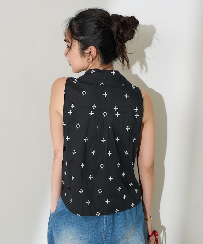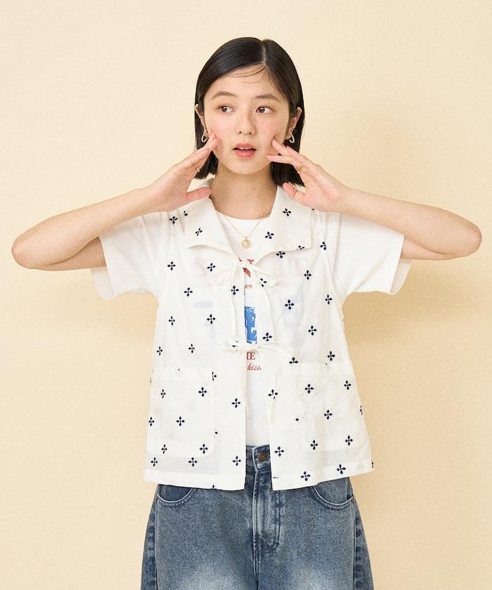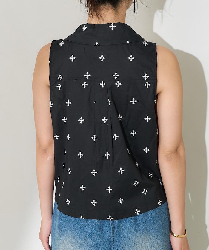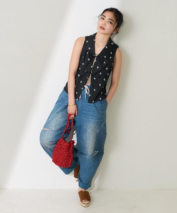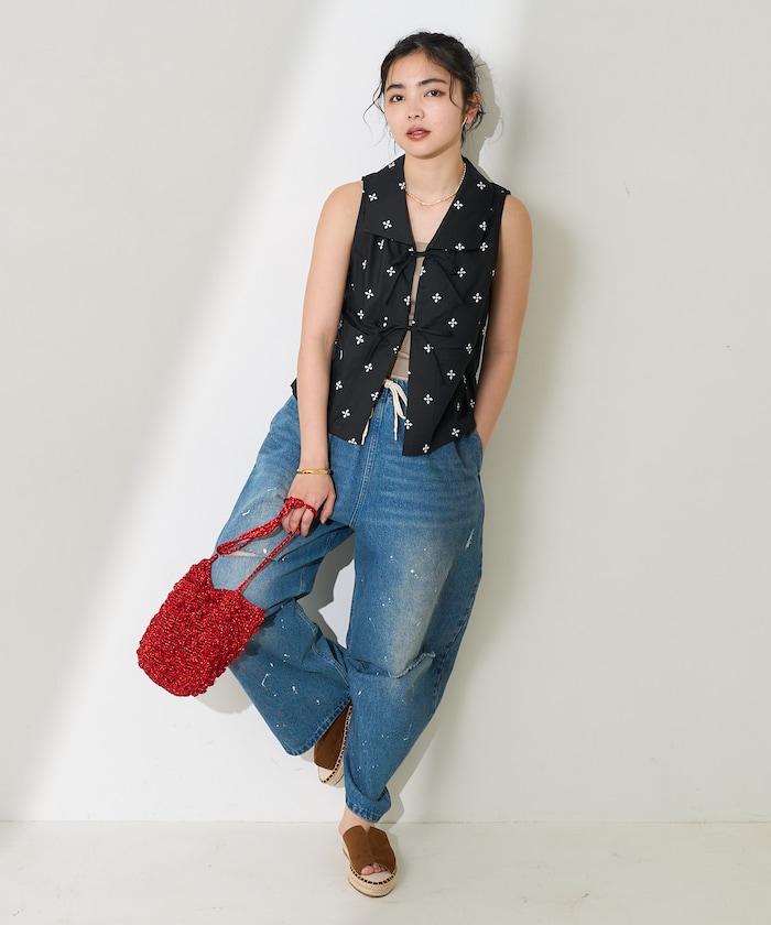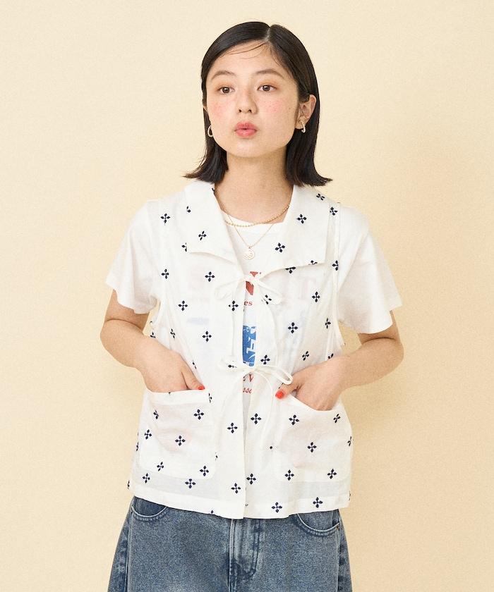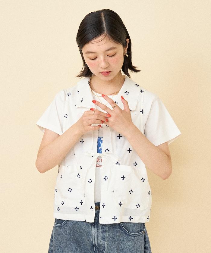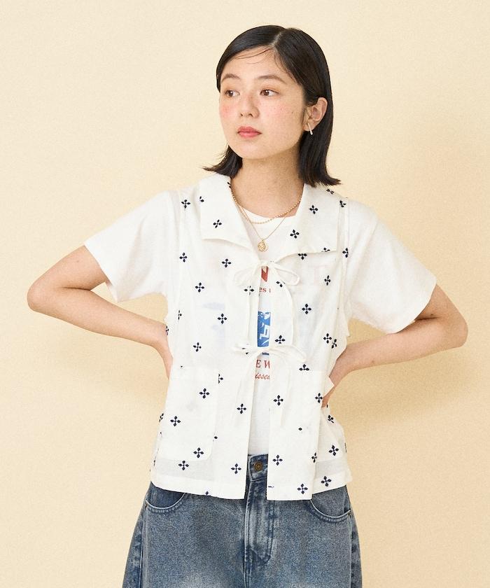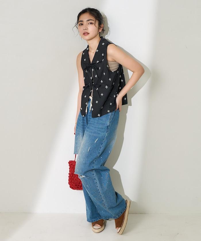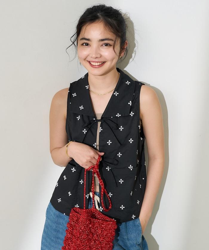 這款刺繡馬甲帶有大領和絲帶,可為多層次的款式增添花朵。