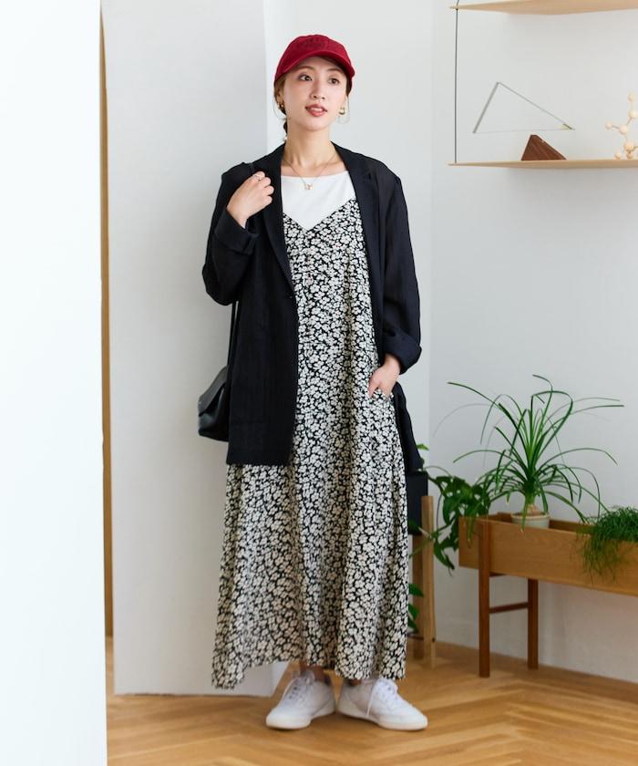 這款吊帶連衣裙的花朵圖案十分搶眼,適合疊穿在 T 恤或透視內搭上,打造粗獷的造型。