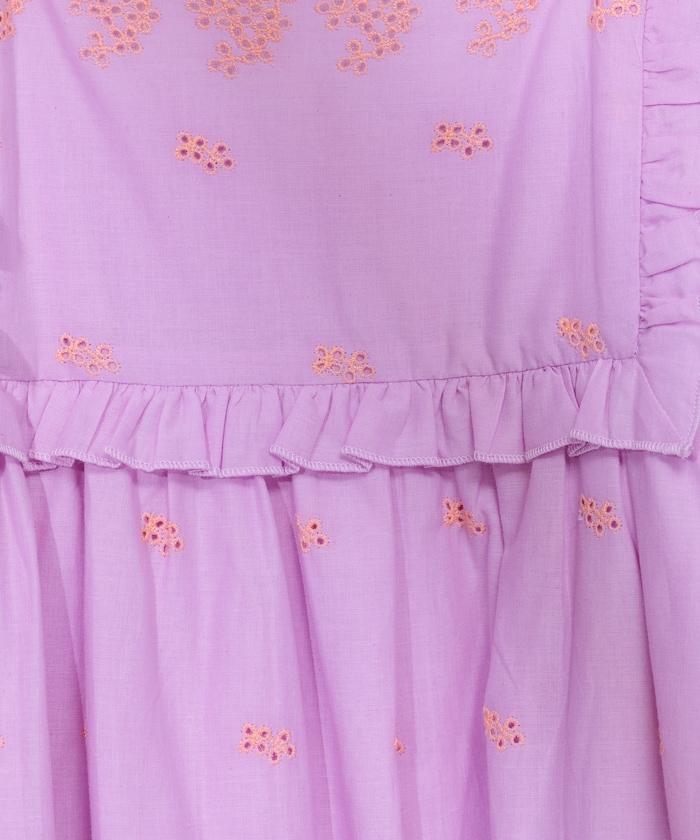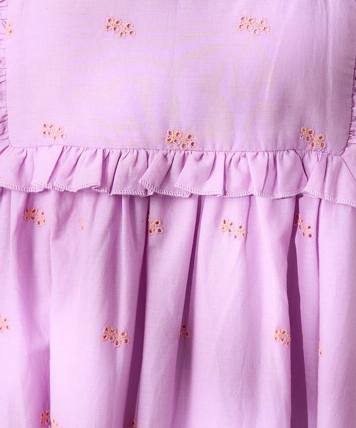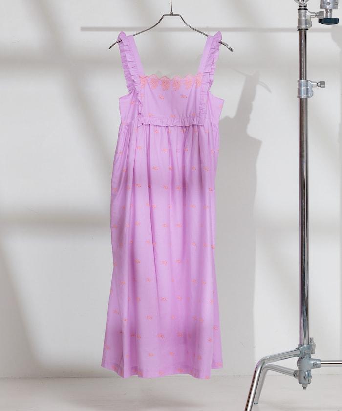 這款連衣裙採用 Shifuri 刺繡,女性化的設計十分搶眼。