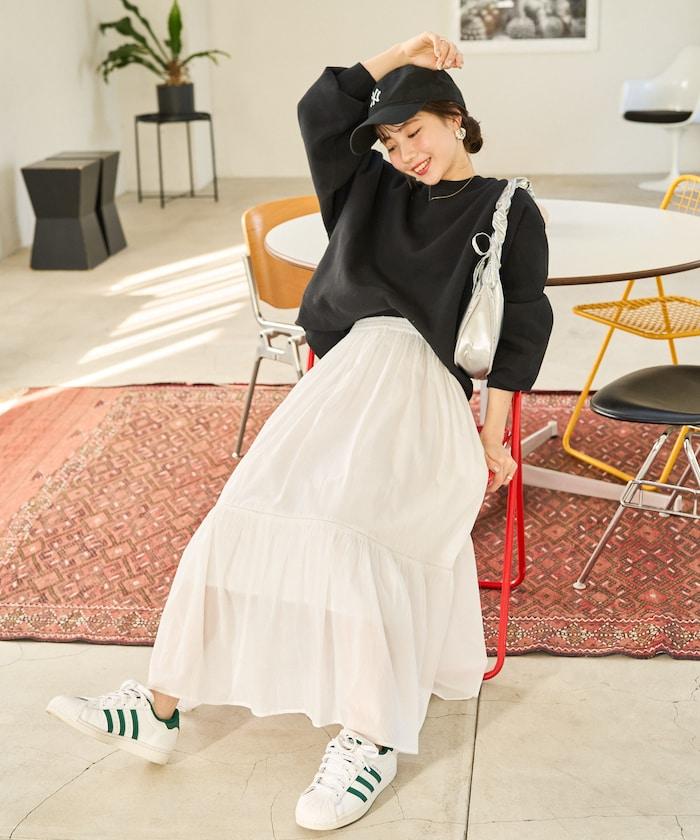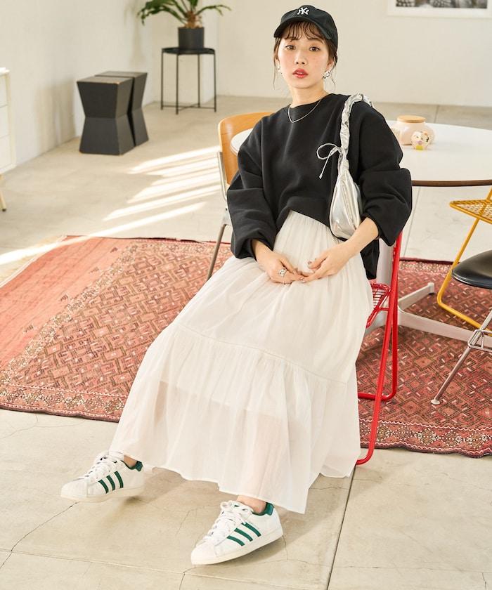 即使是成人休閒裝也能輕鬆嘗試的層疊裙。