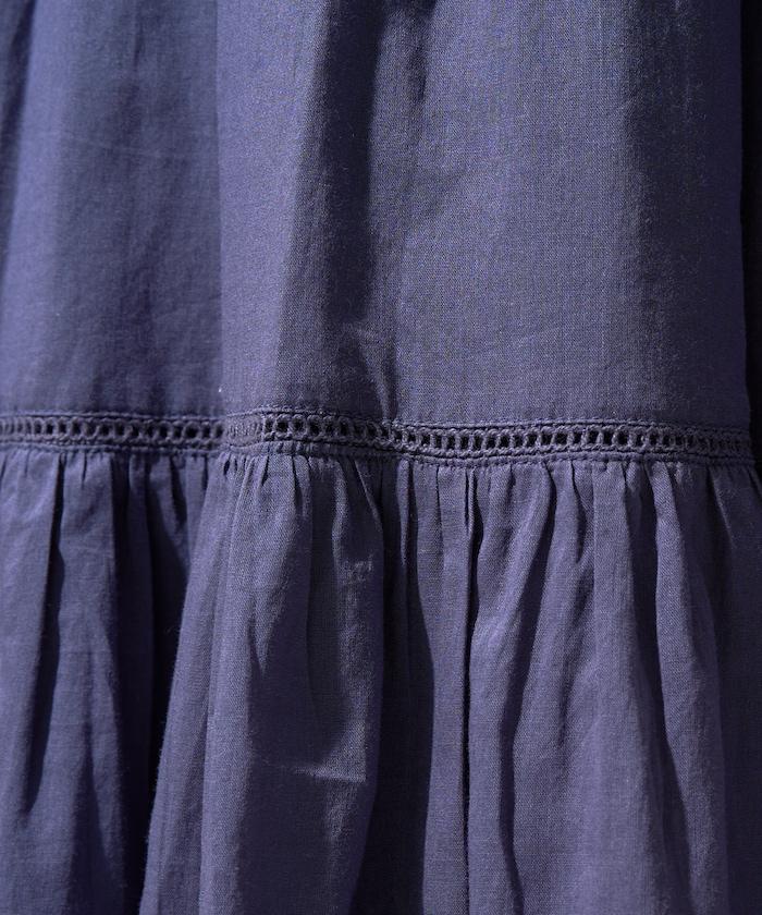 簡潔的喇叭廓形是裙身的基礎,裙身以階梯花邊過渡。