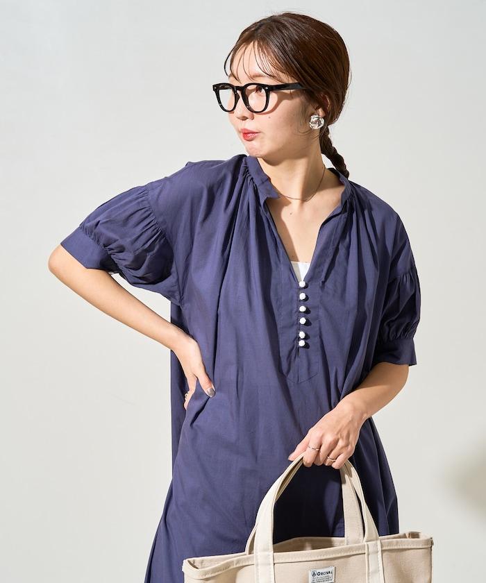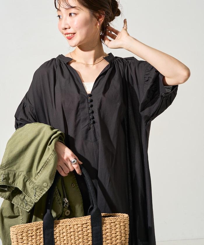 1302248900131: 薄紗前襟紐扣聚攏上衣