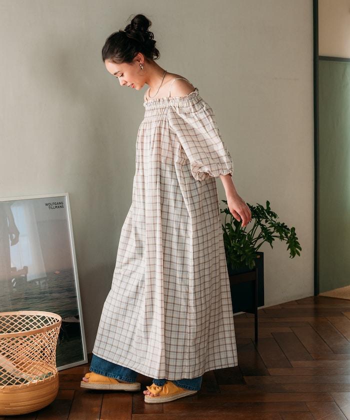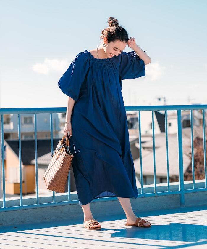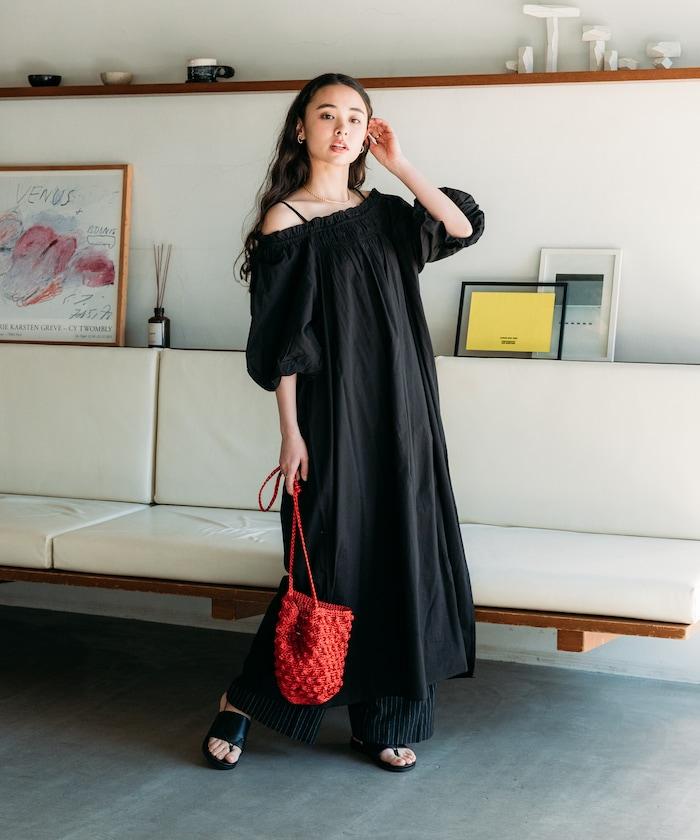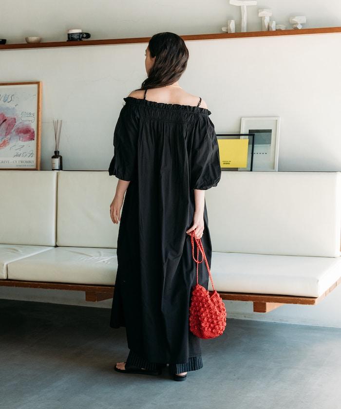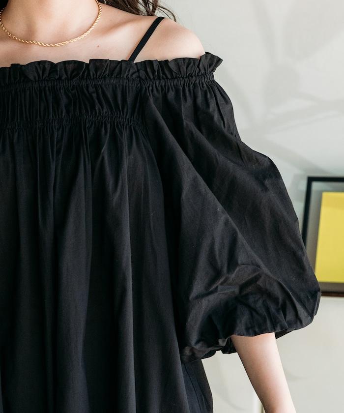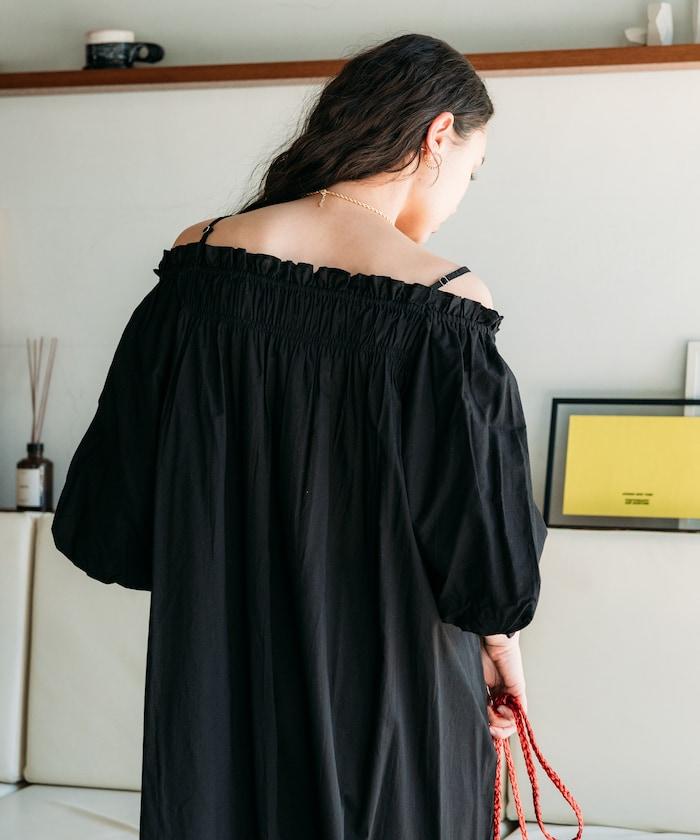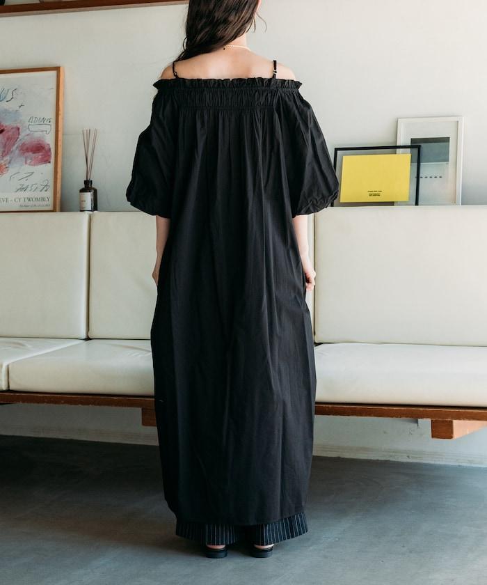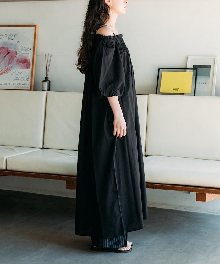 印度 5分袖2WAY露肩連衣裙/露肩
