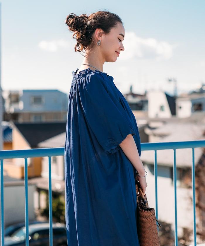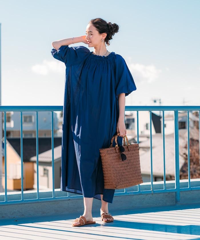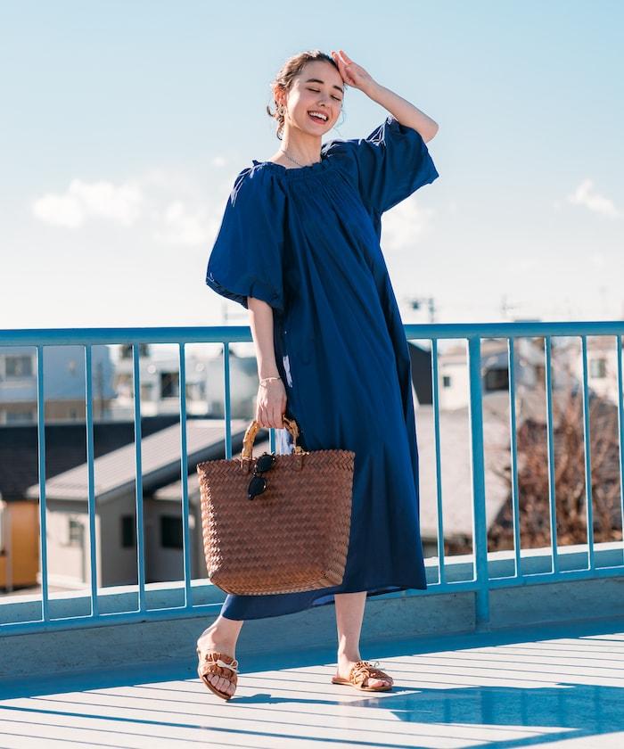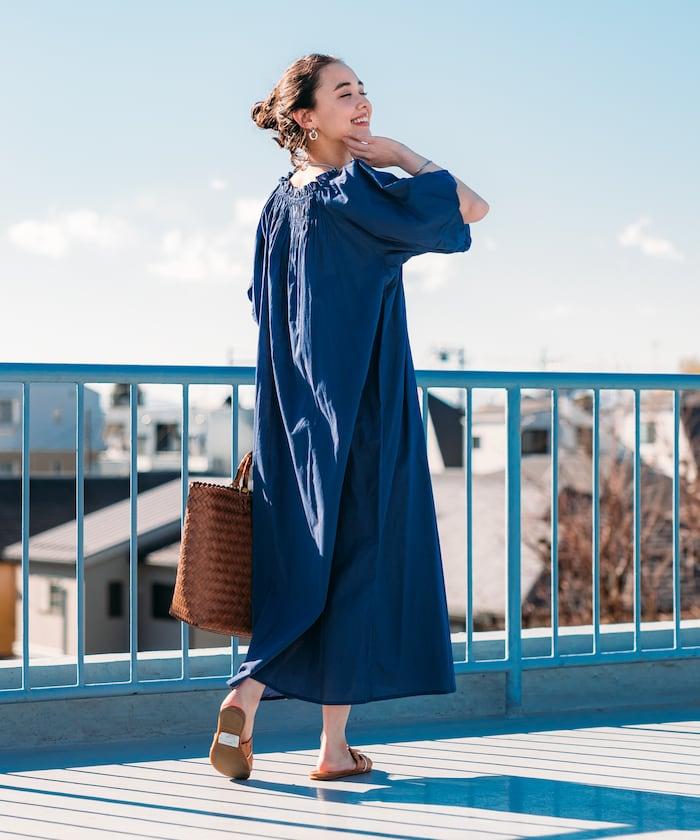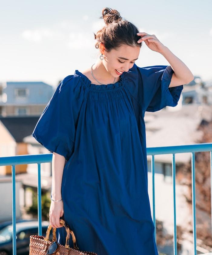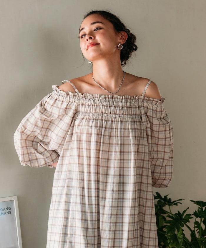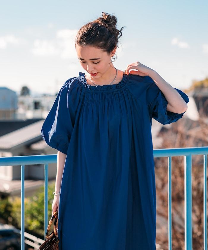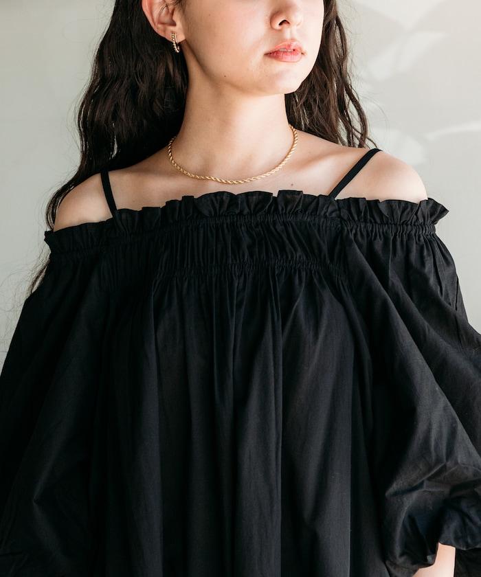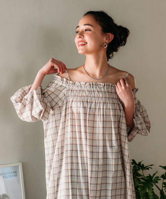 印度 5分袖2WAY露肩連衣裙/露肩