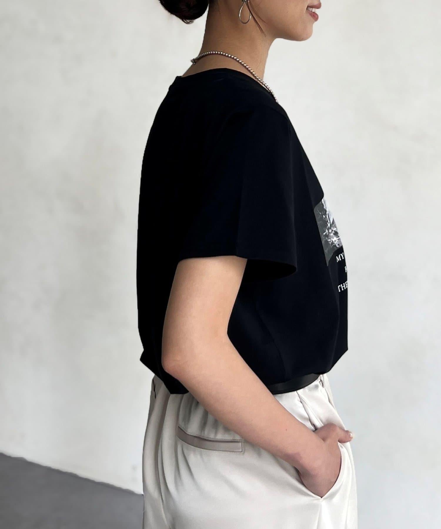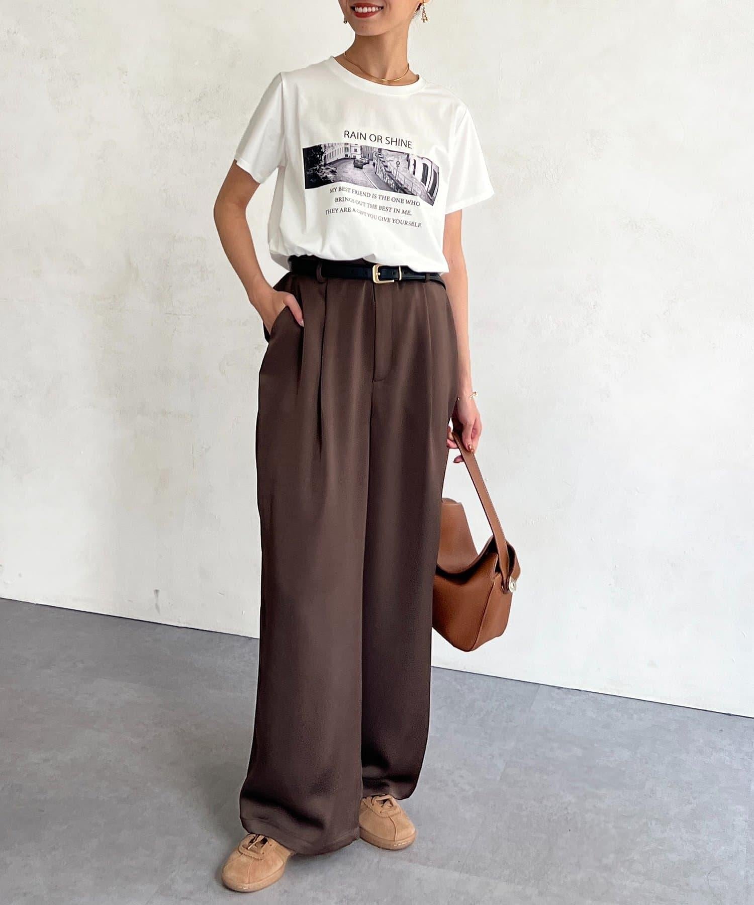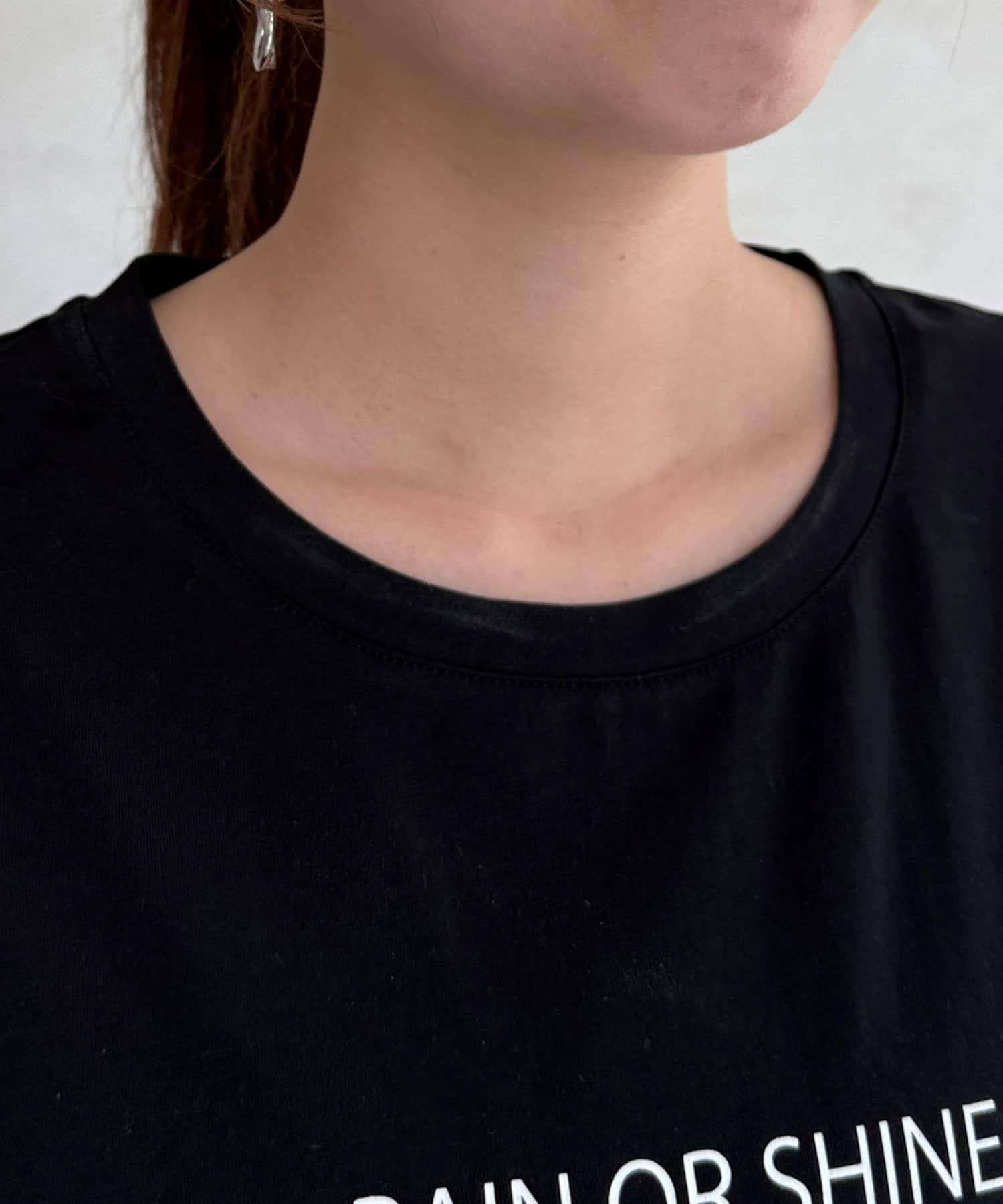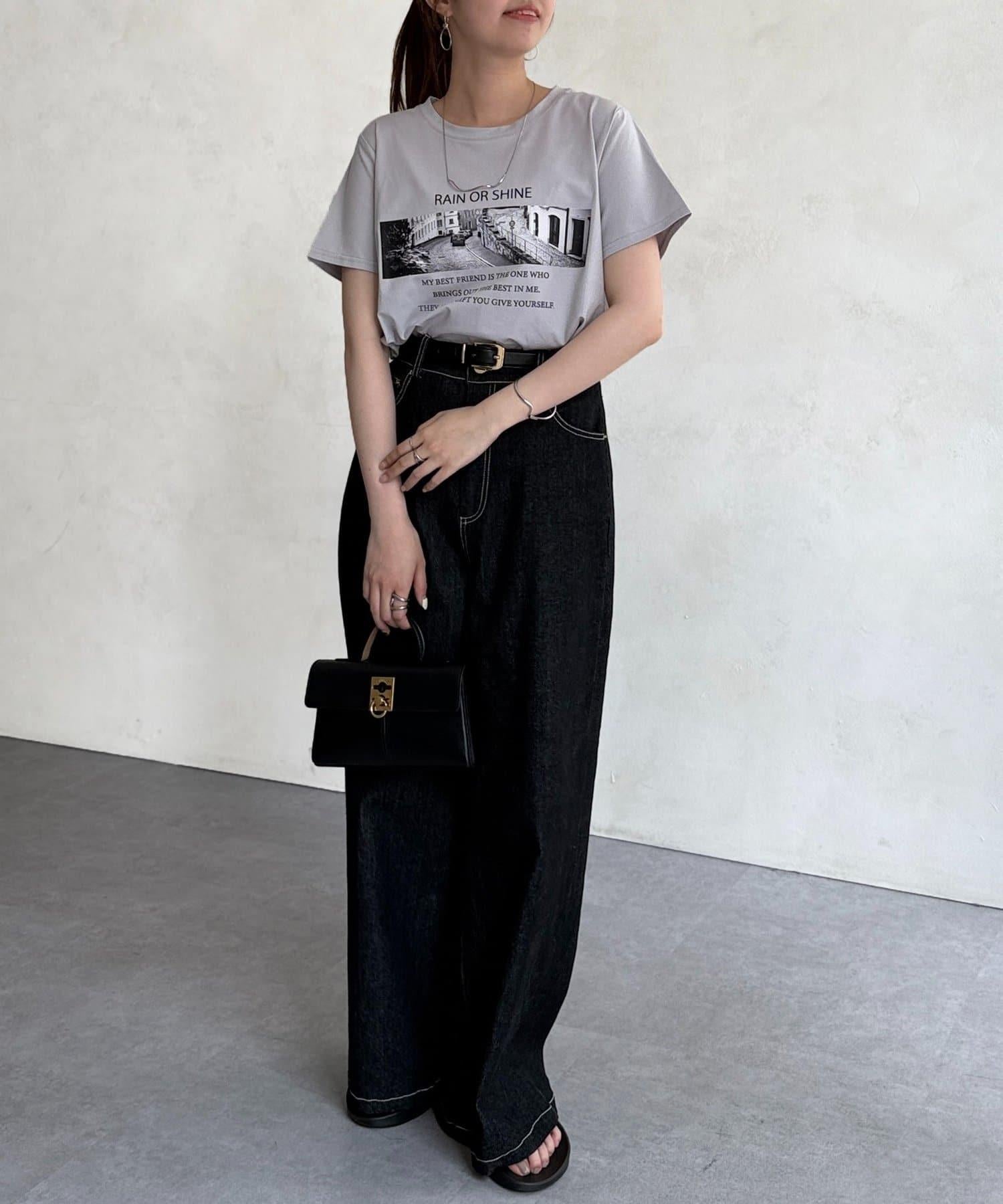 這款 T 恤尺寸略小,既可搭配長褲,也可搭配短裙。