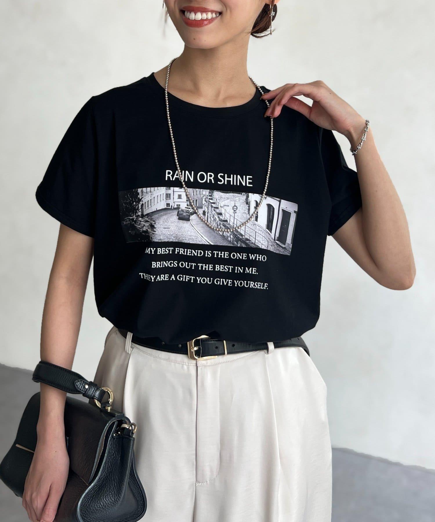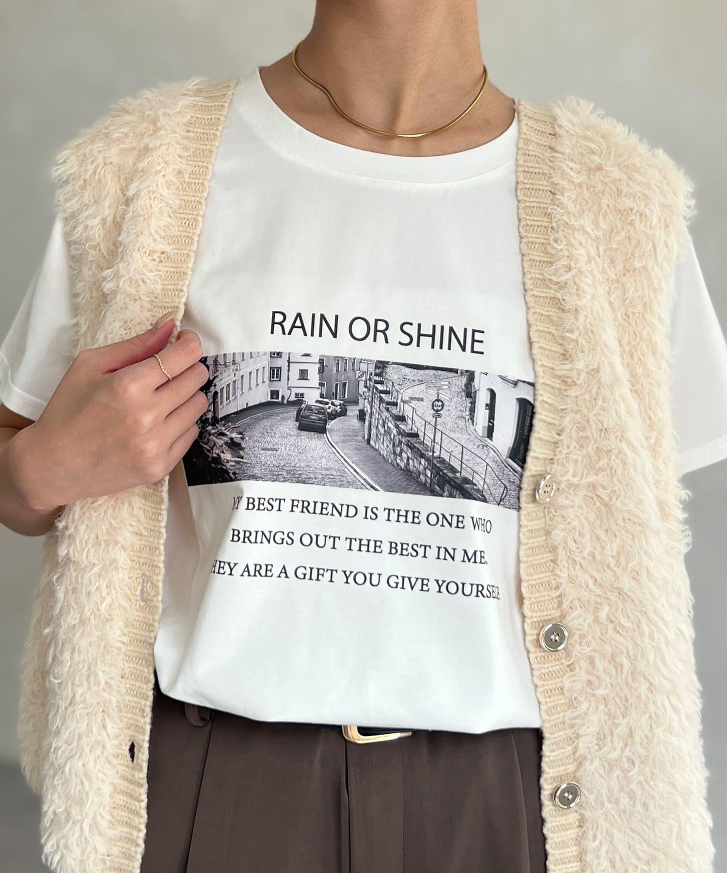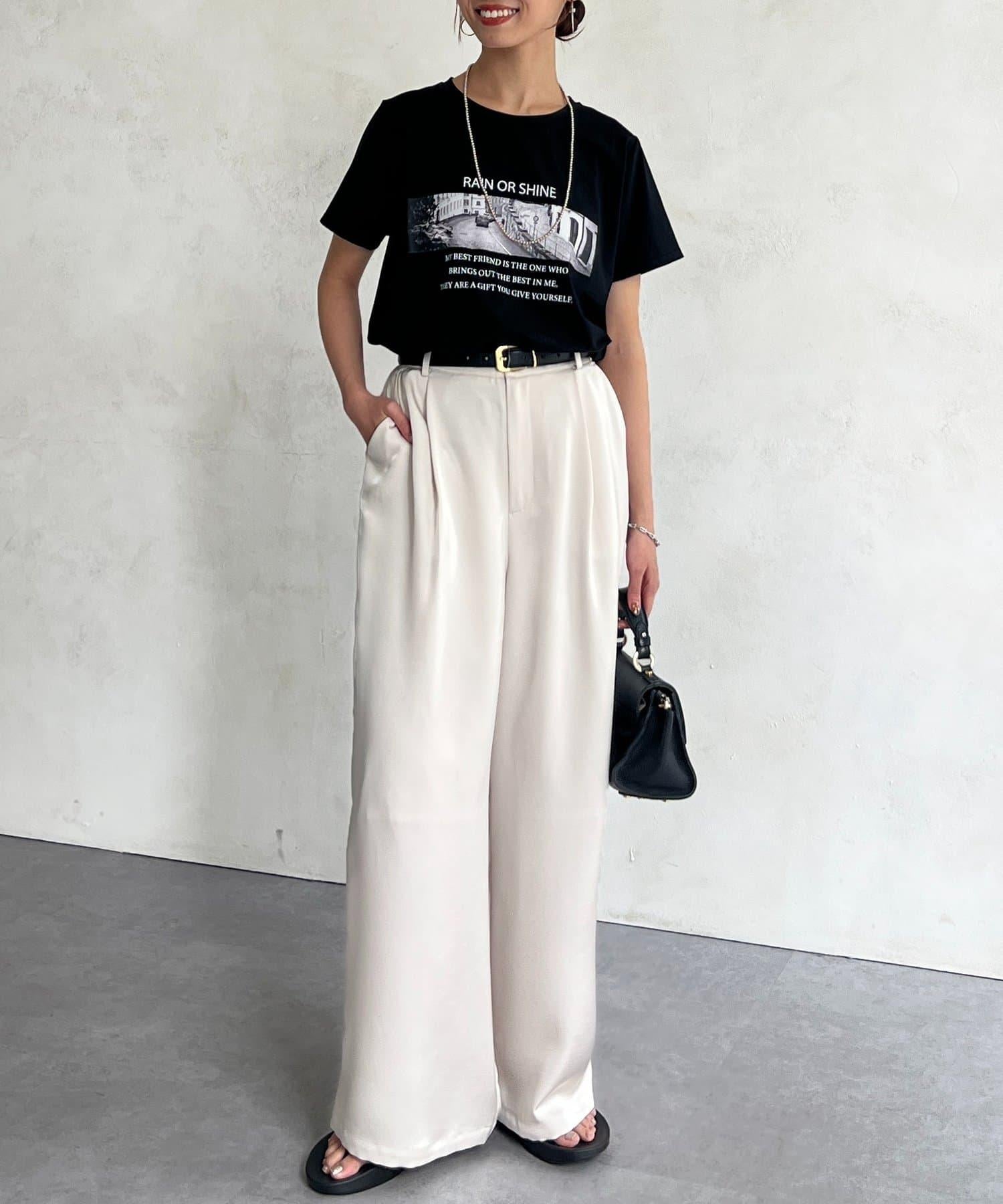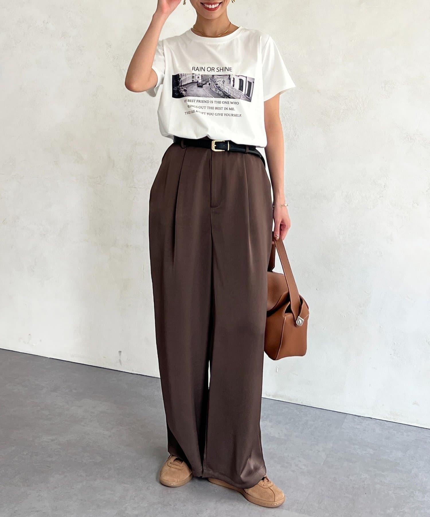 這款 T 恤尺寸略小,既可搭配長褲,也可搭配短裙。