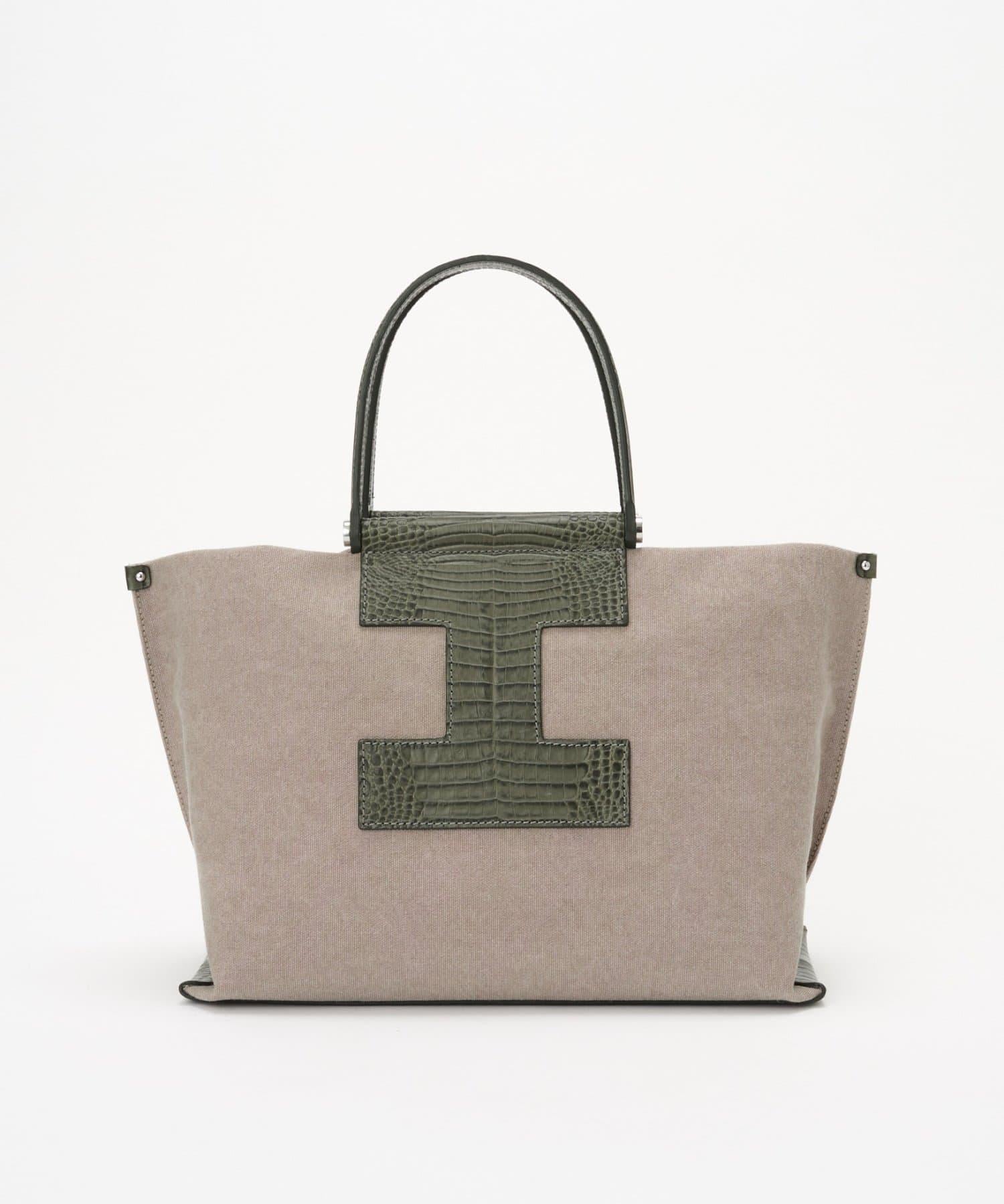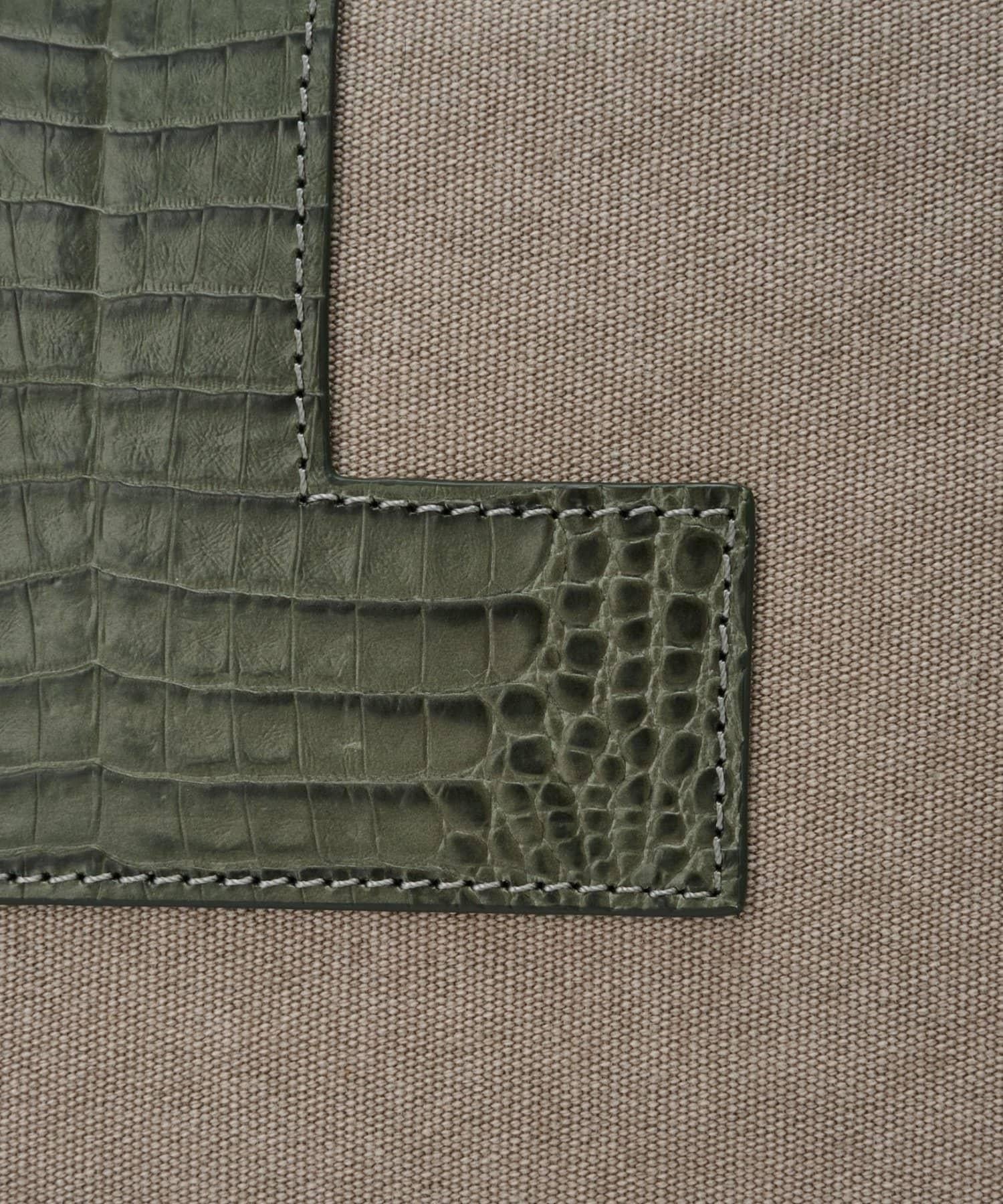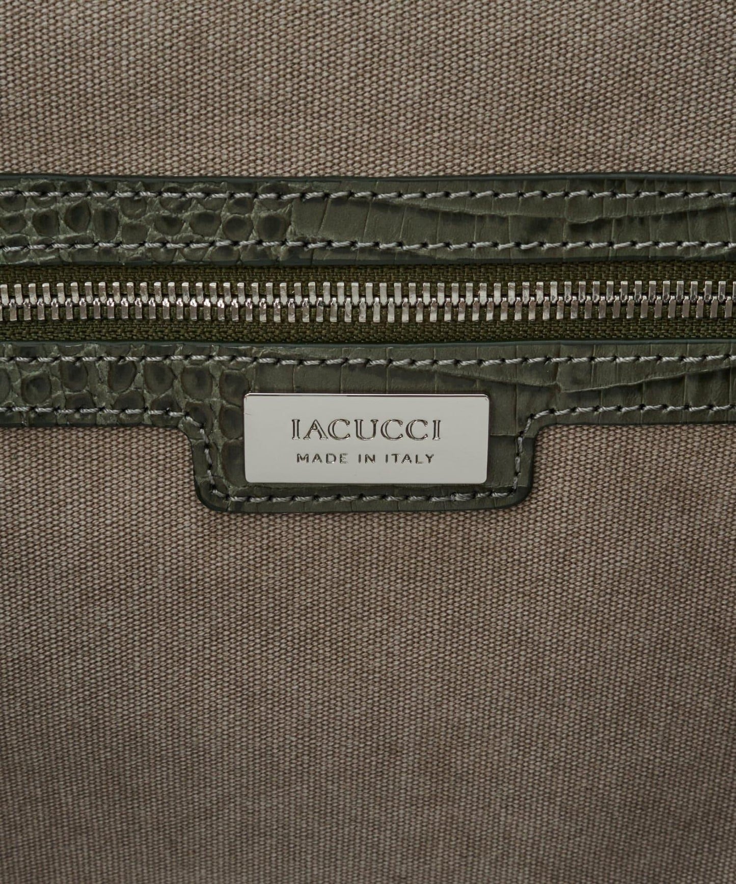 這款奢華的帆布手提包將粗糙的帆布面料與鱷魚皮風格的模壓材料相結合,呈現出奢華的成人風格。Iacucci 的精湛工藝在這款產品中熠熠生輝,它由意大利優質皮革製成,經過模壓、印花,再經過一層凹凸處理,質感接近真皮。