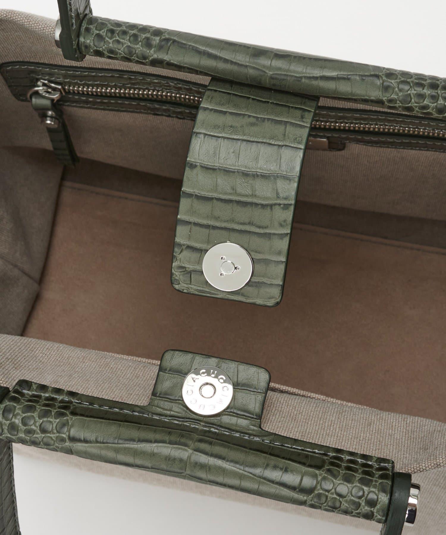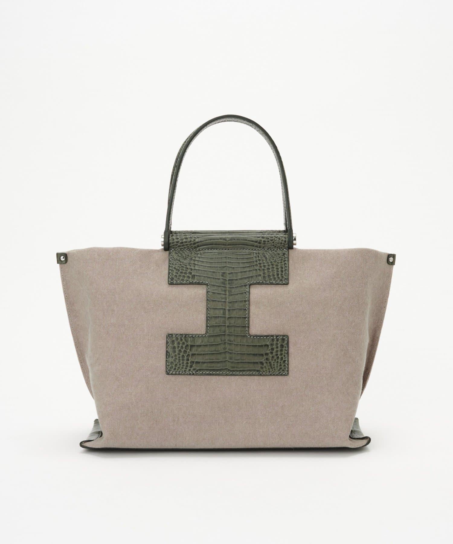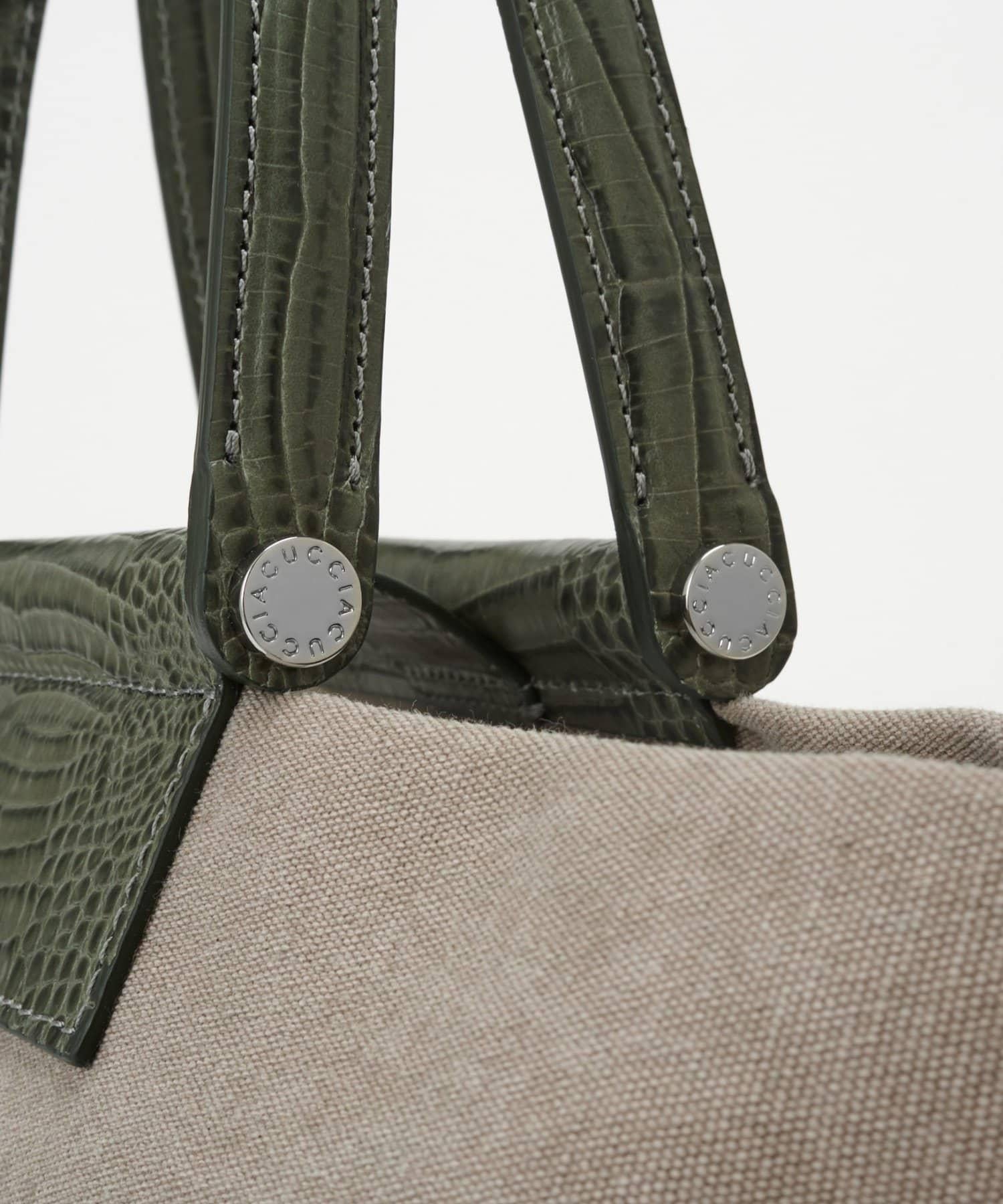 這款奢華的帆布手提包將粗糙的帆布面料與鱷魚皮風格的模壓材料相結合,呈現出奢華的成人風格。Iacucci 的精湛工藝在這款產品中熠熠生輝,它由意大利優質皮革製成,經過模壓、印花,再經過一層凹凸處理,質感接近真皮。