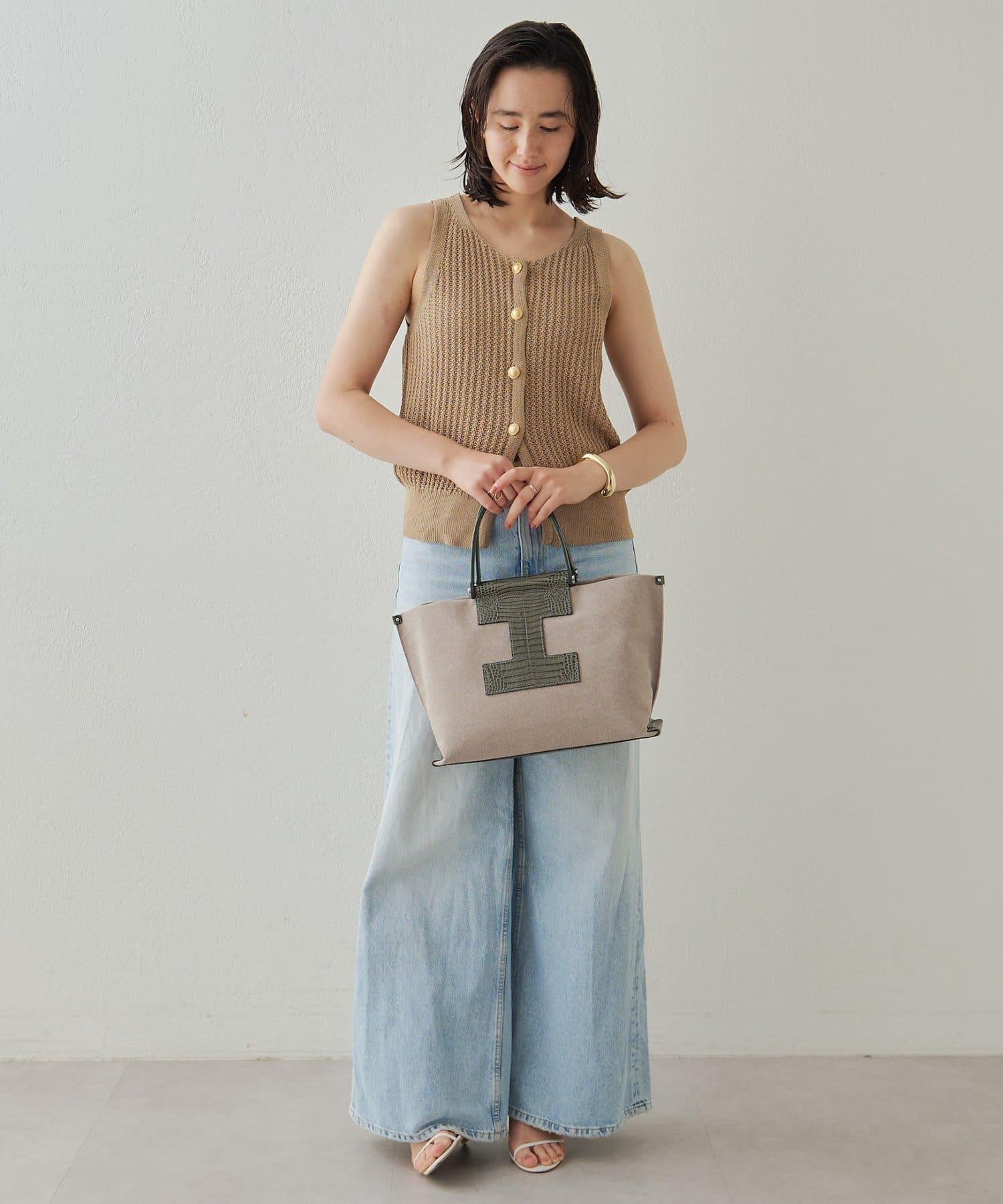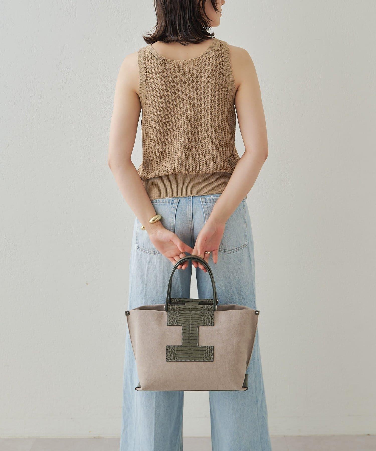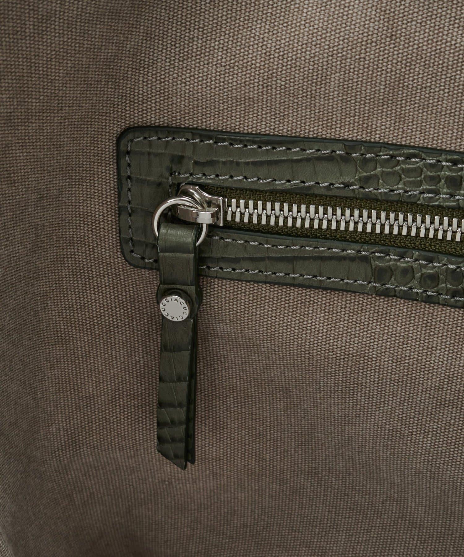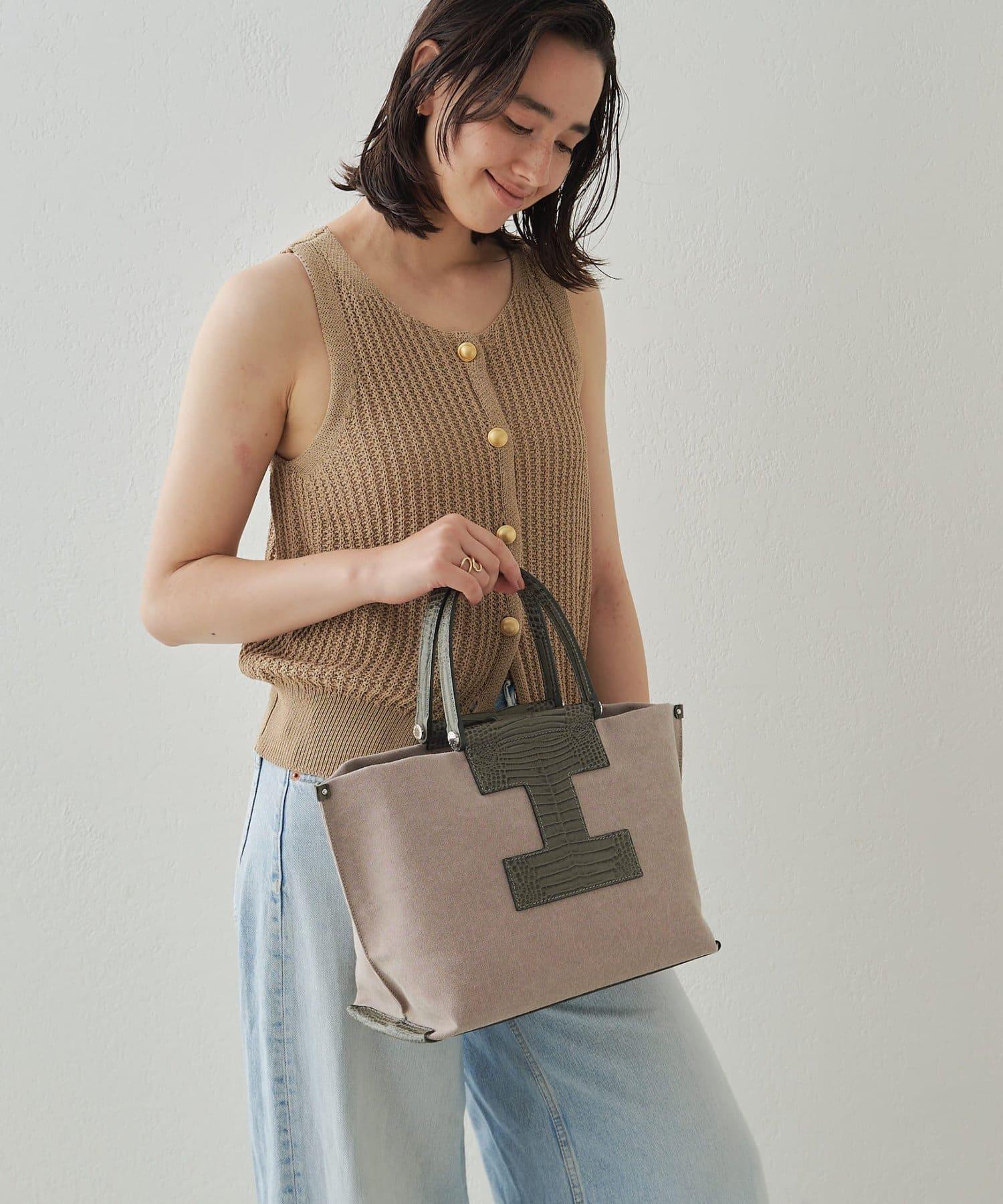 帆布面料選用深色調,與時尚的墨綠色皮革相得益彰。中號尺寸👍可容納 A4 紙張,適合日常外出和工作等多種用途。
