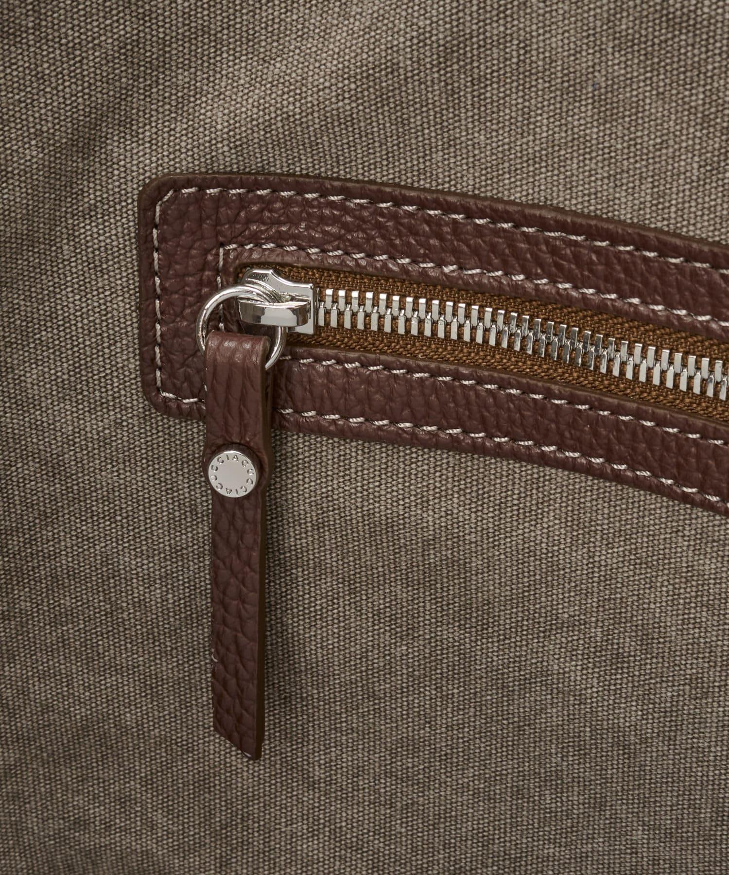 受到秋冬系列主題的啟發,我們選擇了深棕色。這種顏色既適合美觀的風格,也適合成人休閒風格。深色調的帆布面料與皮革的顏色相搭配,使帆布包給人一種輕鬆的感覺。