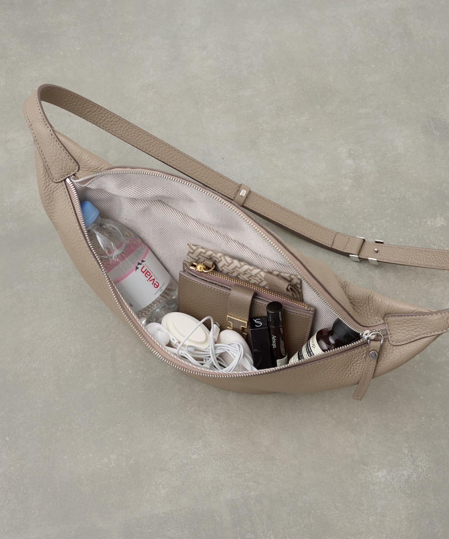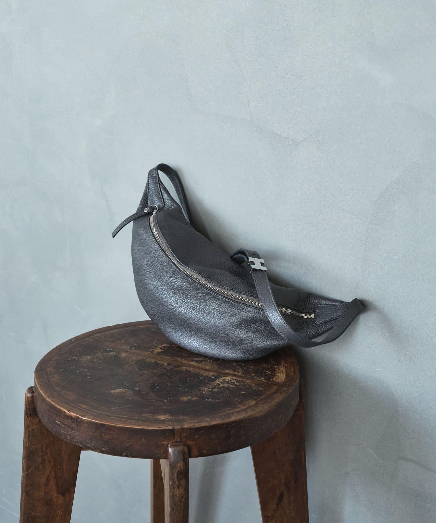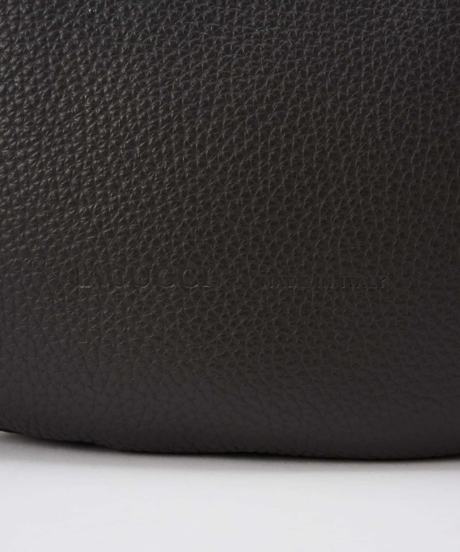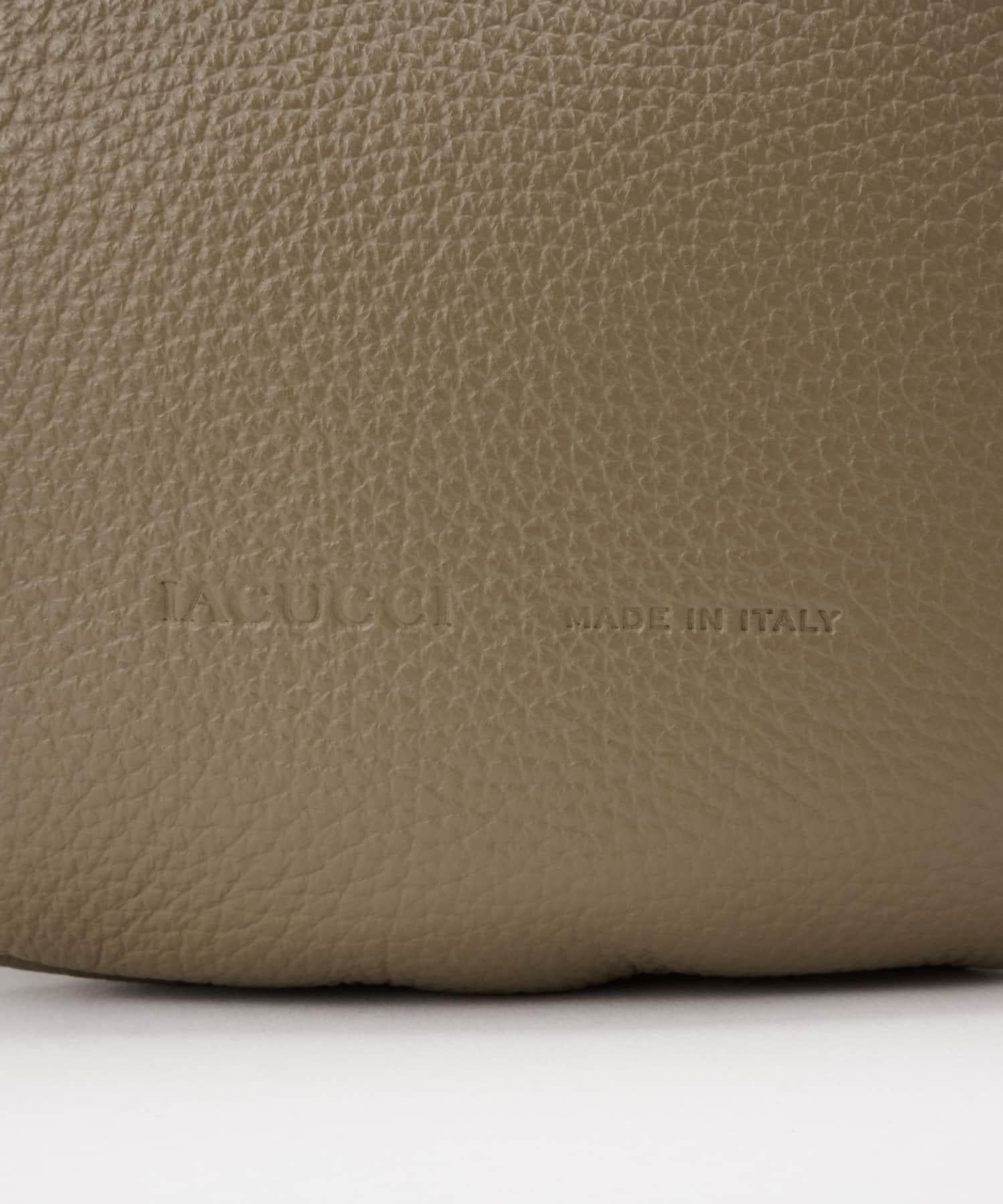 身體與肩部的連接處沒有使用金屬,創造出一種優雅的設計,給人一種成熟的感覺。考慮到身體的貼合度,儘量減少金屬的使用,打造出👍的 Iacucci 產品。包身採用粒麵皮飾面,手感柔軟舒適,給人以適度整潔的印象,給人以休閒的印象。