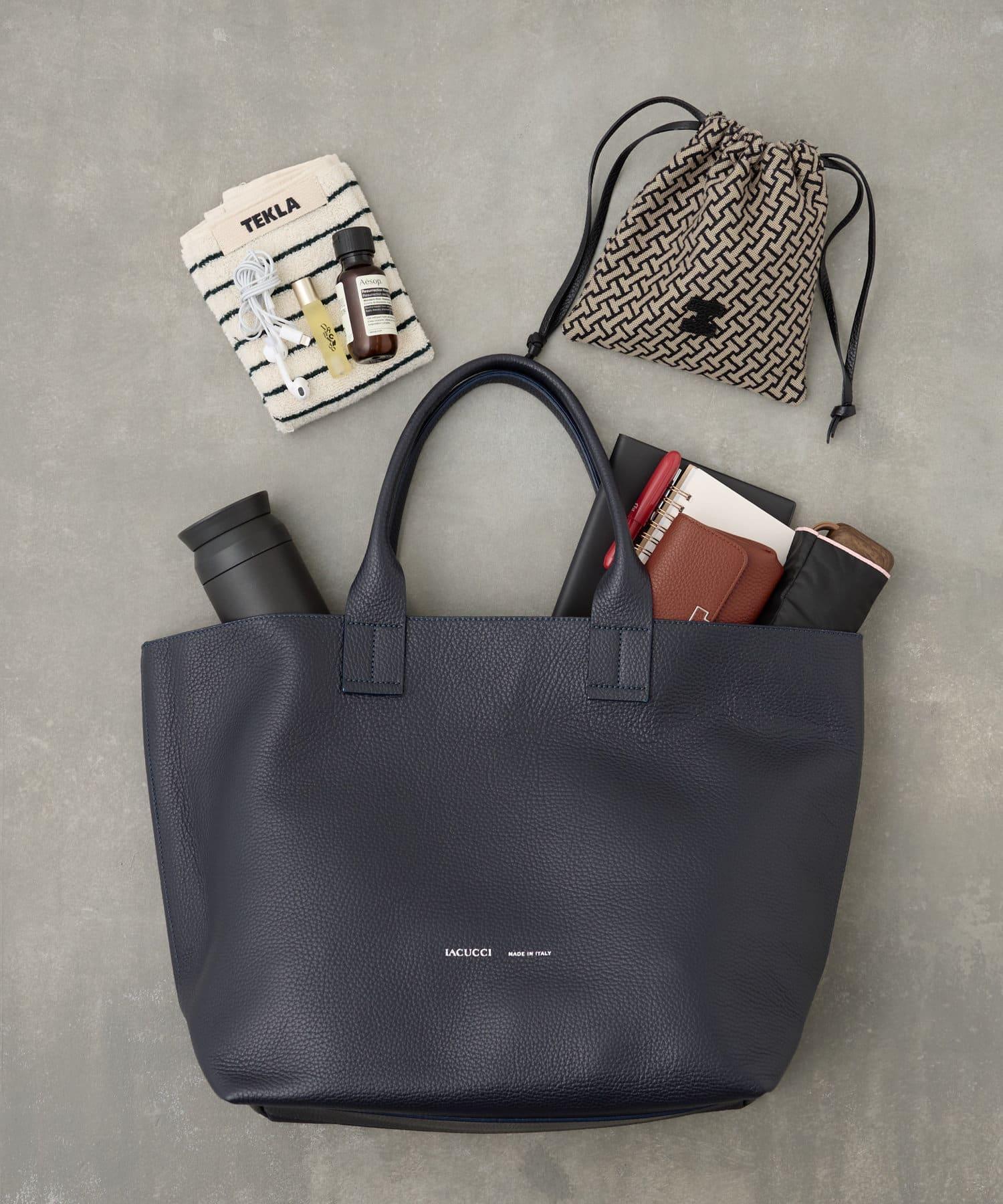 總監建議將其寬鬆地搭配少量行李,這樣柔軟的皮革質感就會更加突出。當然,它也可以原封不動地穿在身上,或者通過尺寸調節按扣,將兩側向下摺疊,改變形態。大號 L 碼可以放一個 A4 大小的包。它不僅可用於日常使用,還可用於工作、旅行和作為母親的包包!