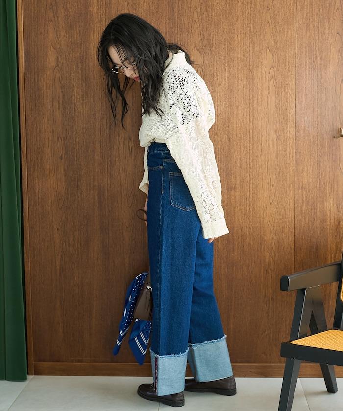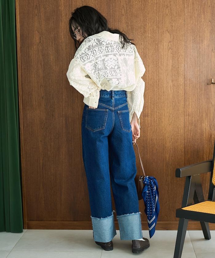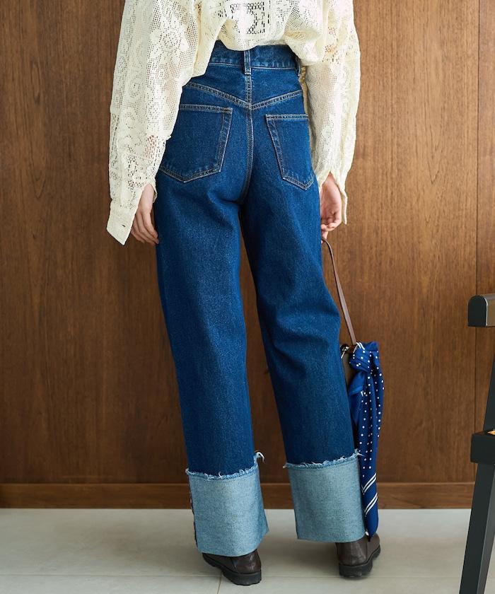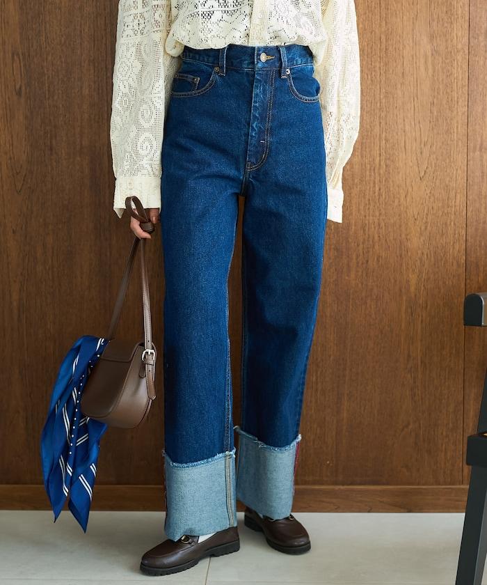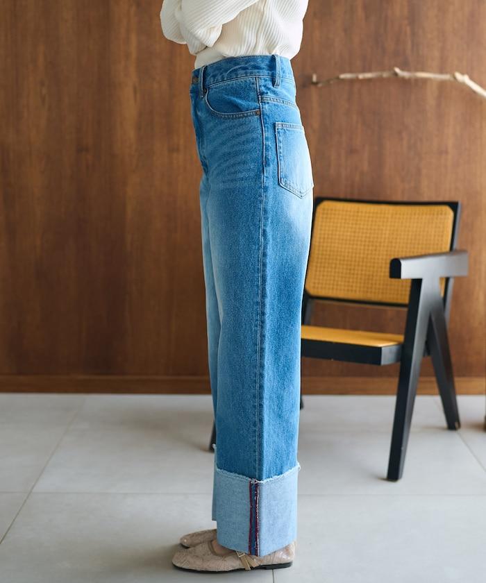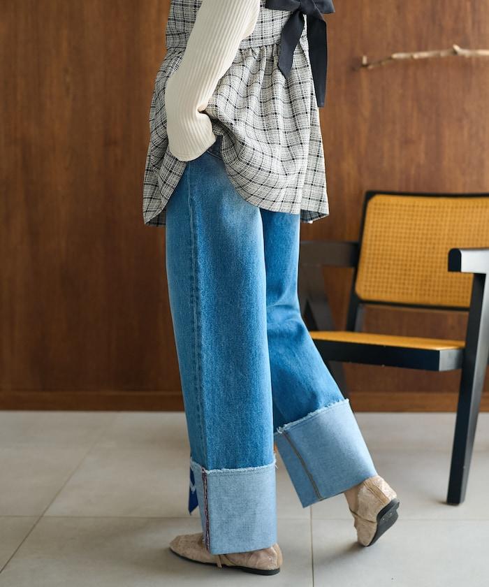 寬幅卷邊牛仔褲,打造休閒時尚造型