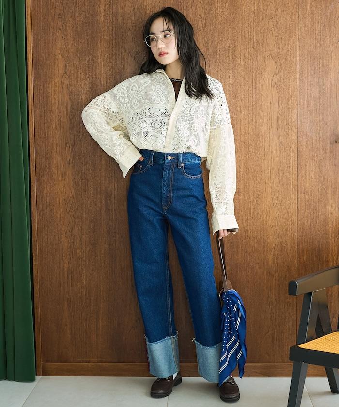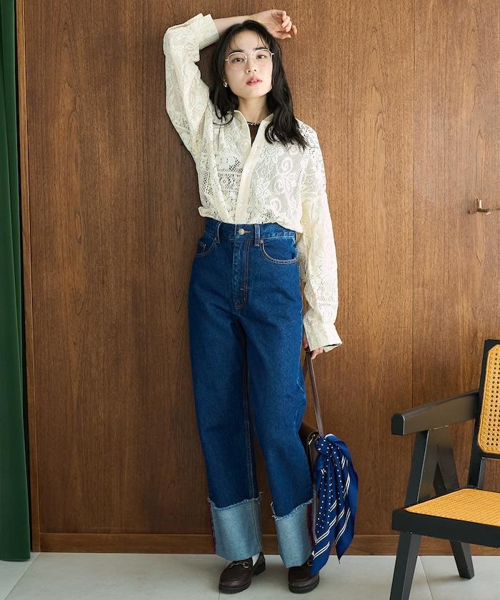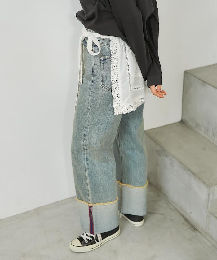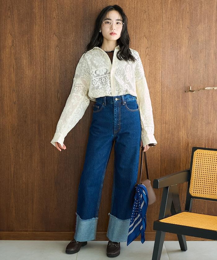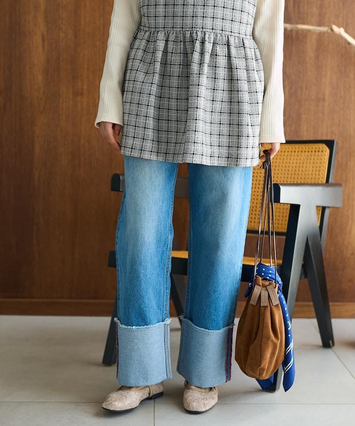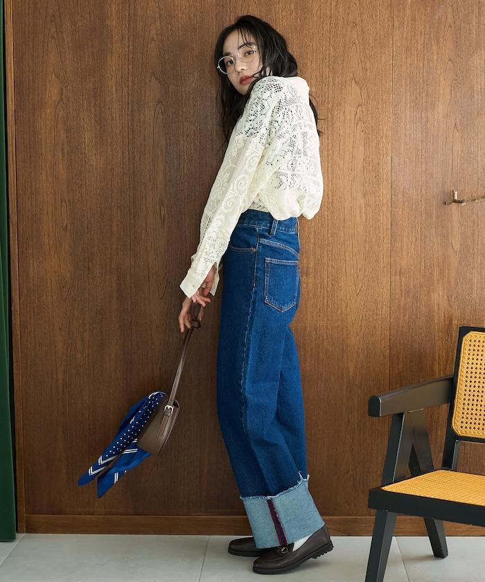 寬幅卷邊牛仔褲,打造休閒時尚造型