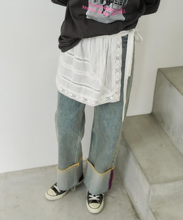 褲身前端的紅色刺繡讓人聯想到鑲邊,捲起時成為一個亮點。