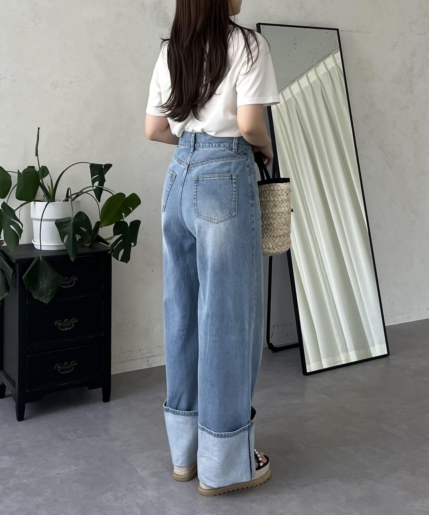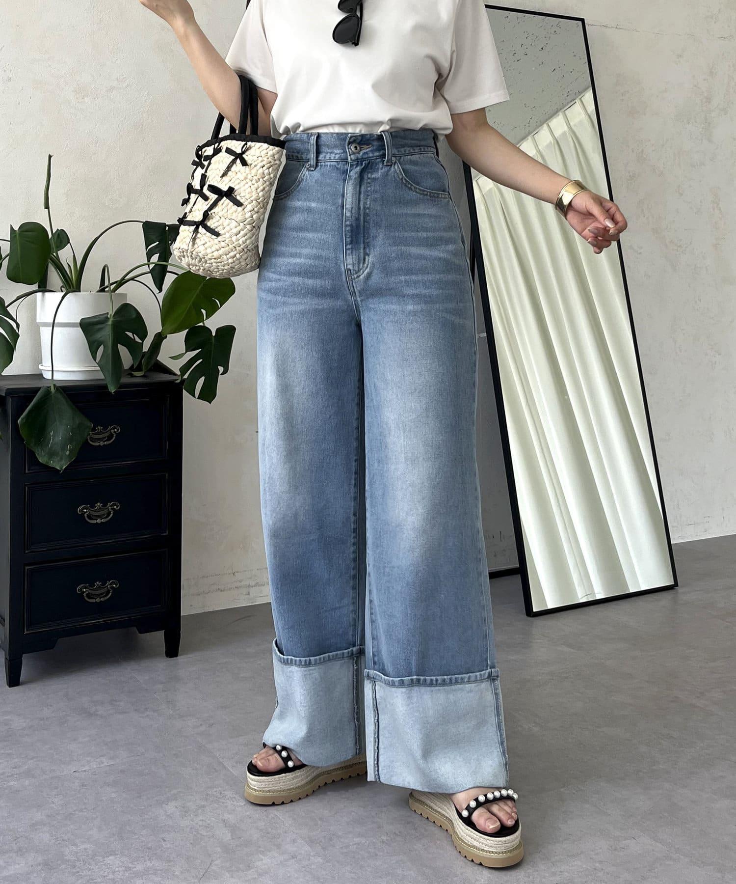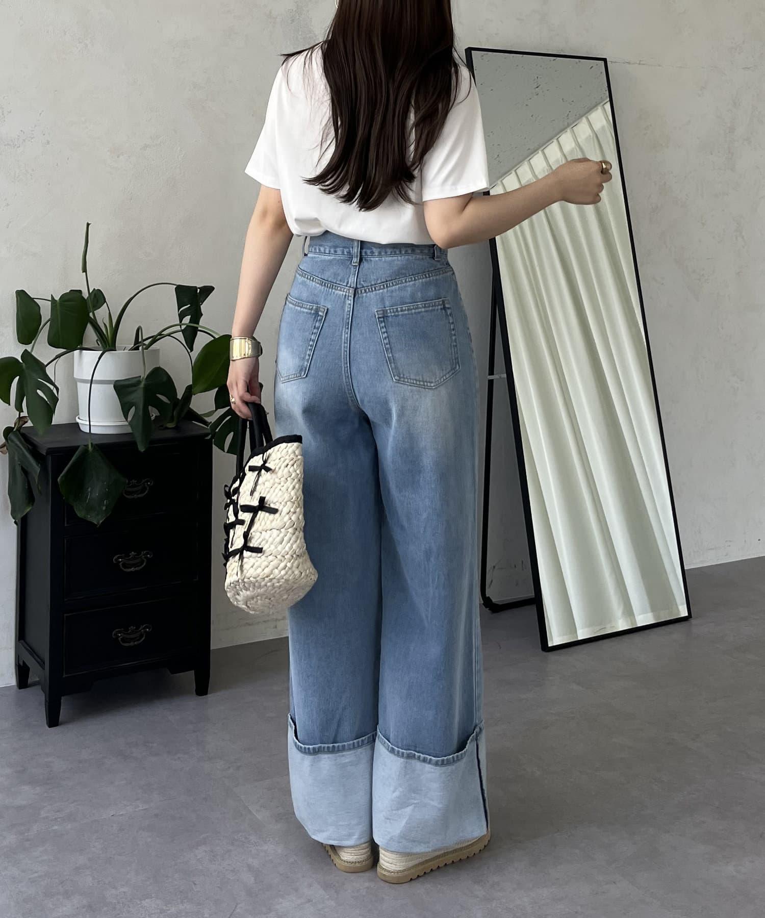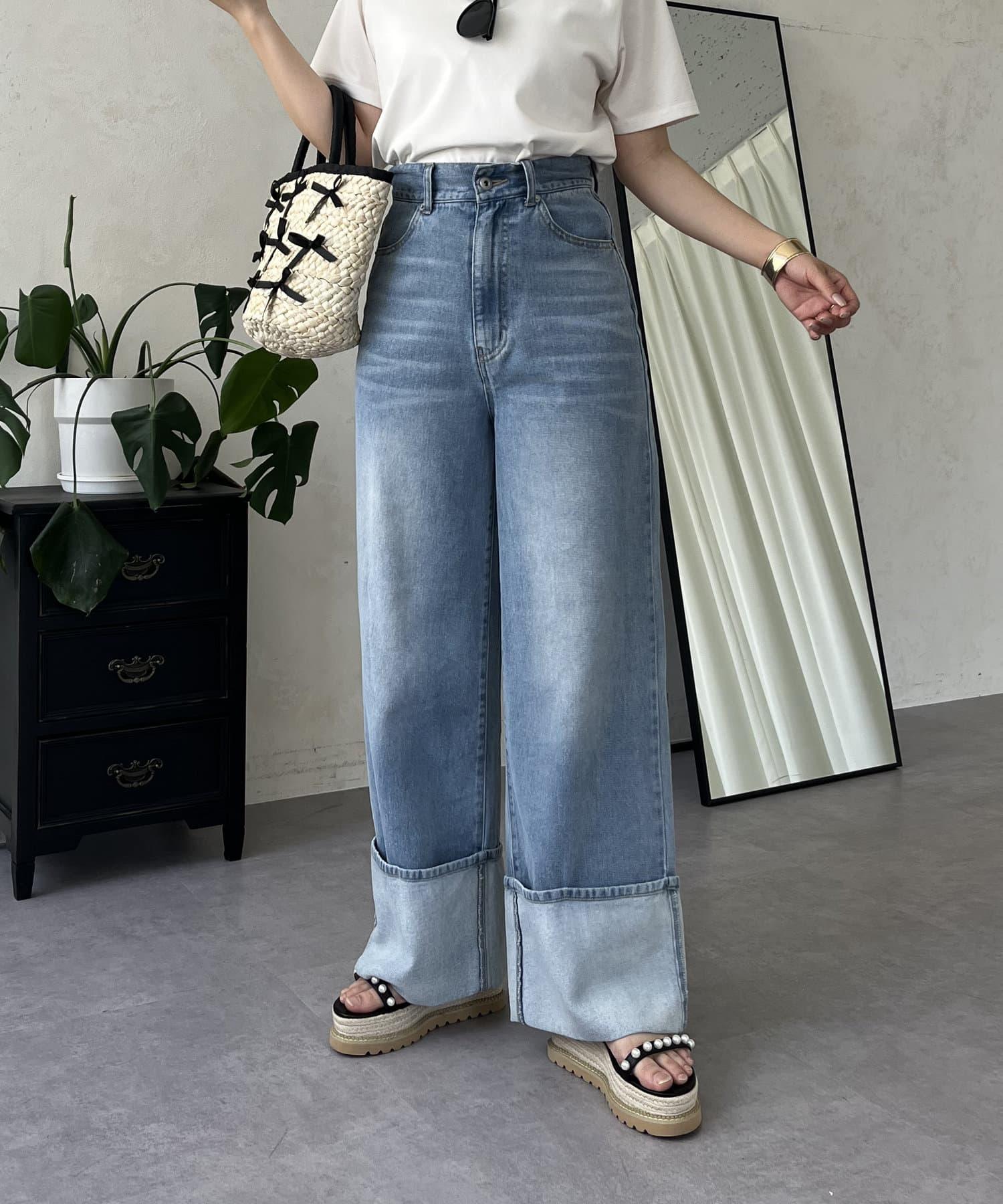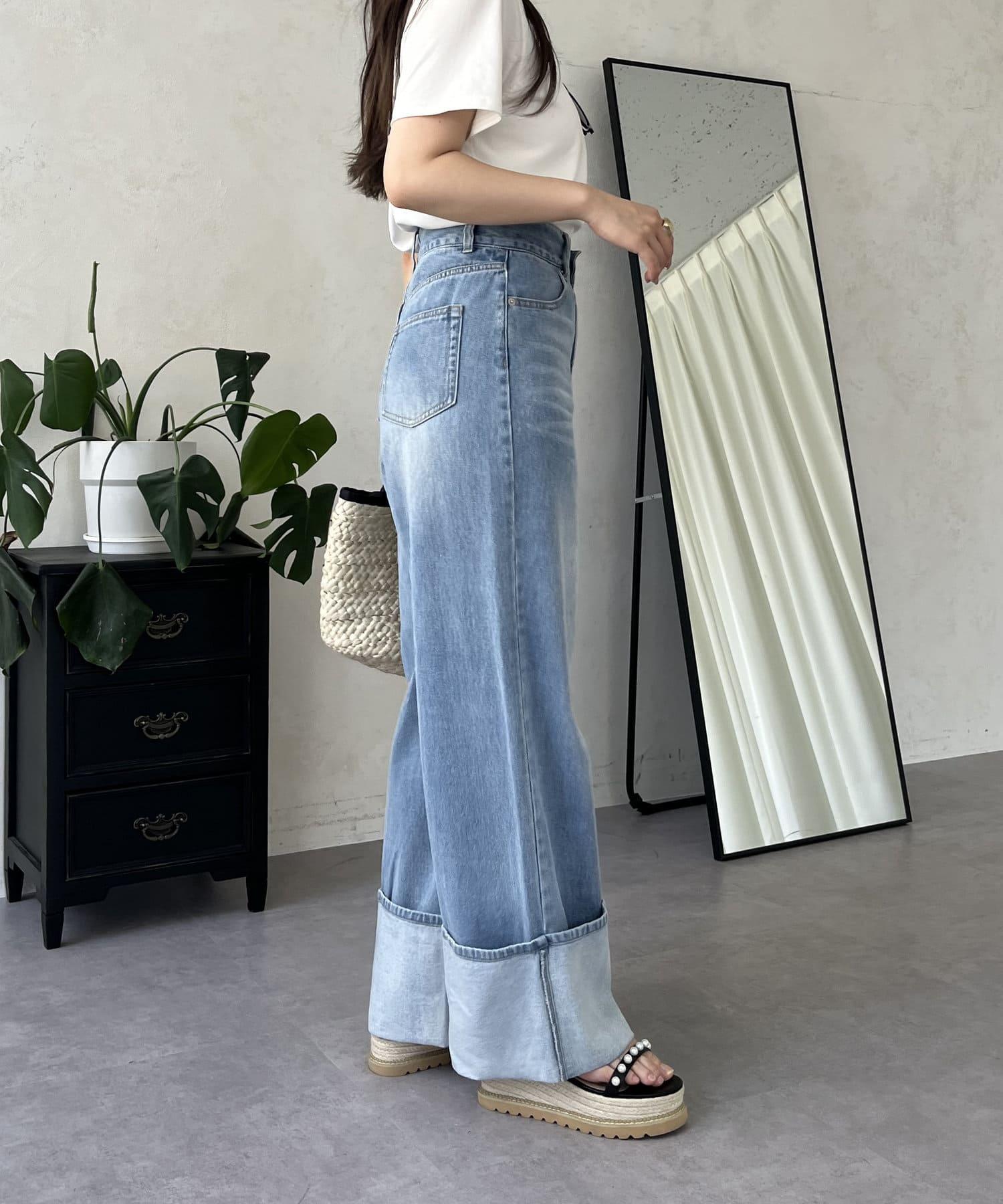 牛仔褲/寬鬆/捲起/成人休閒裝