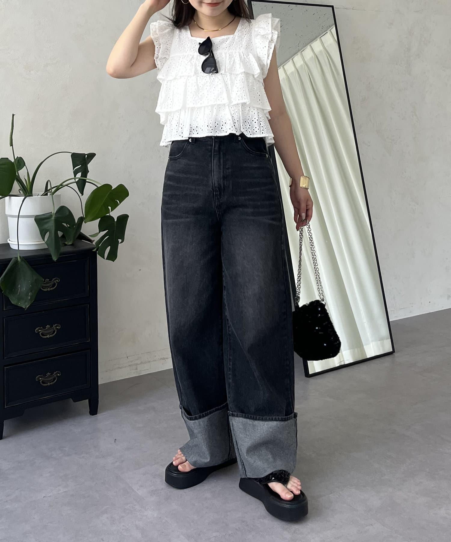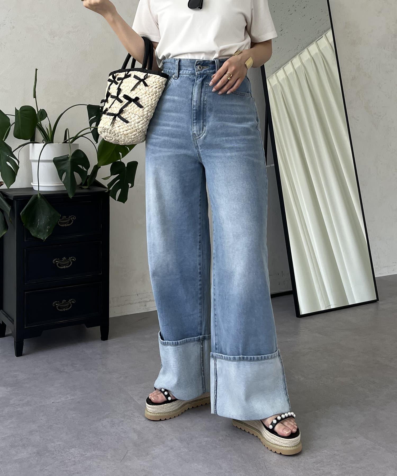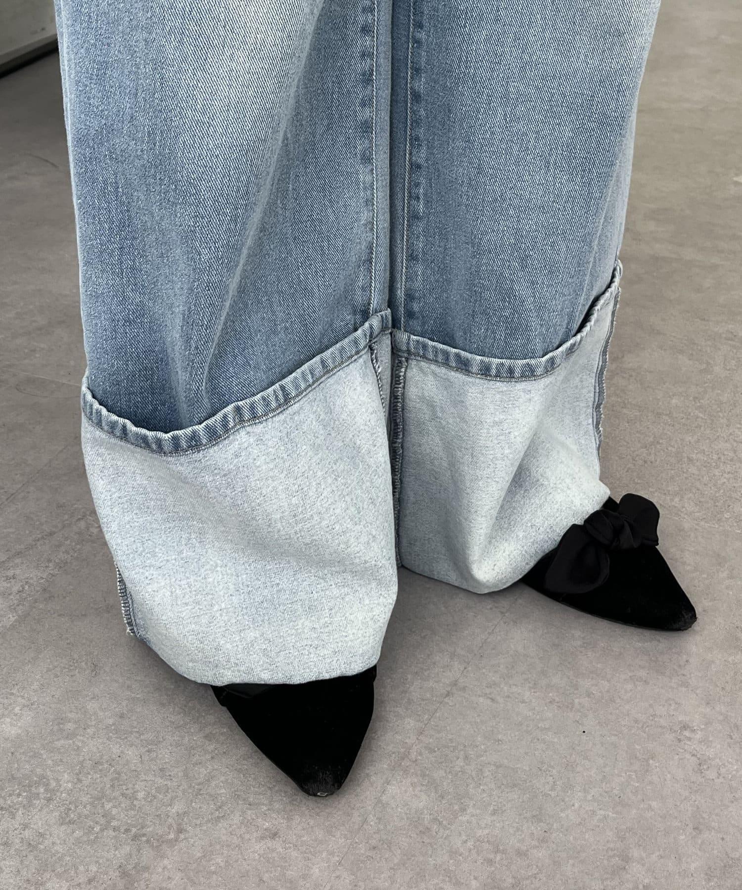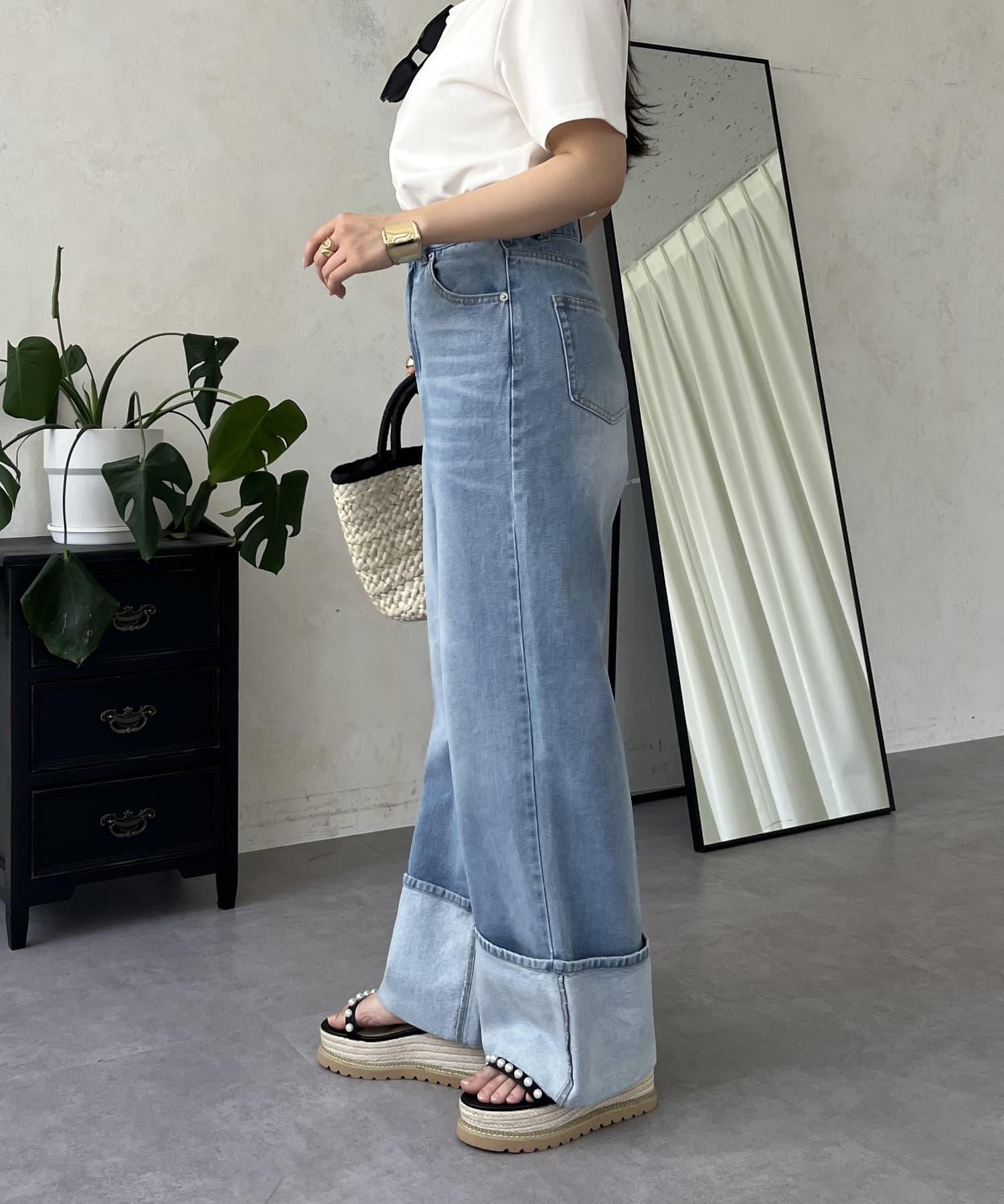 牛仔褲/寬鬆/捲起/成人休閒裝