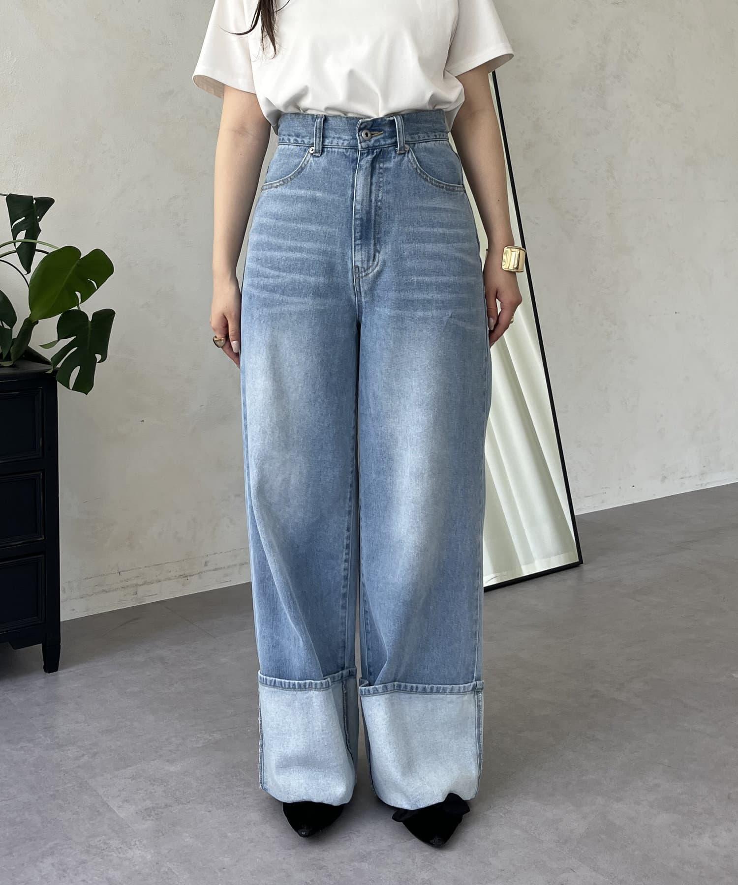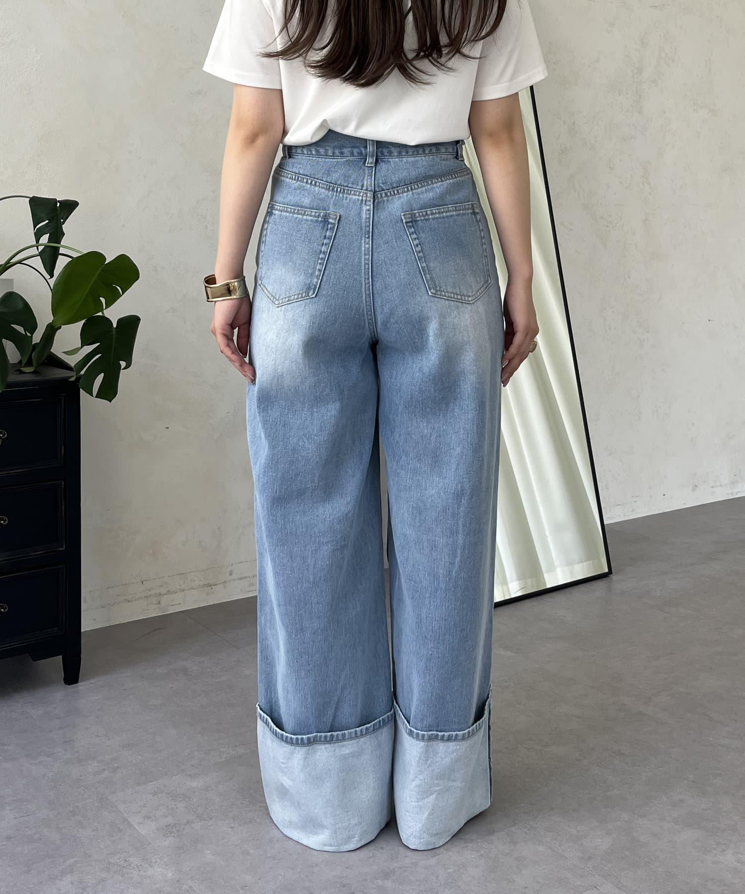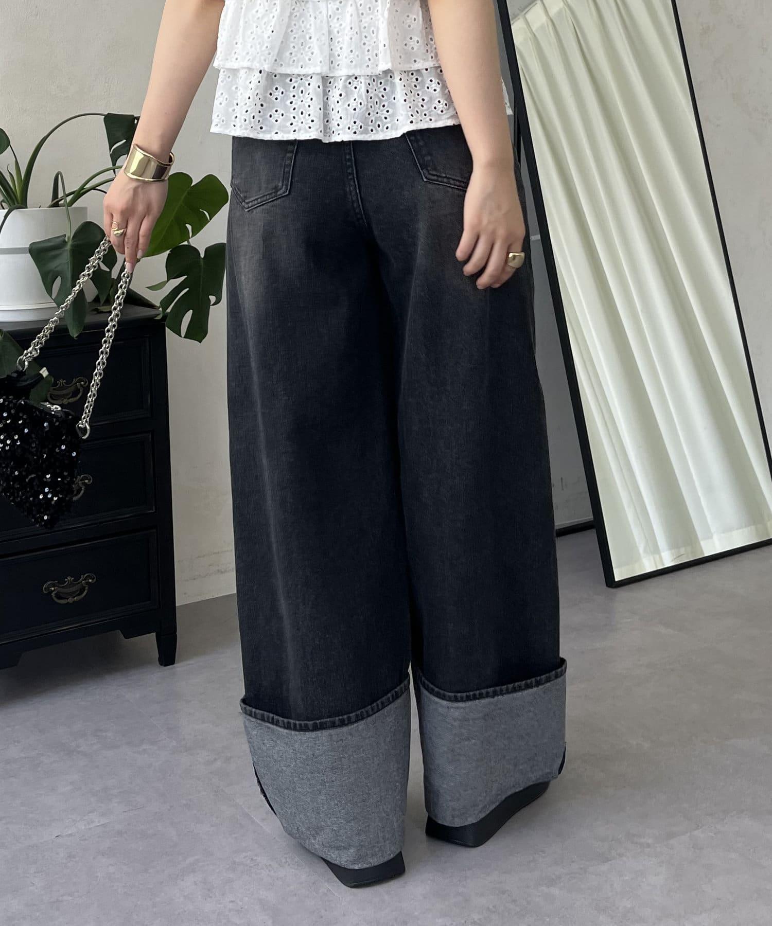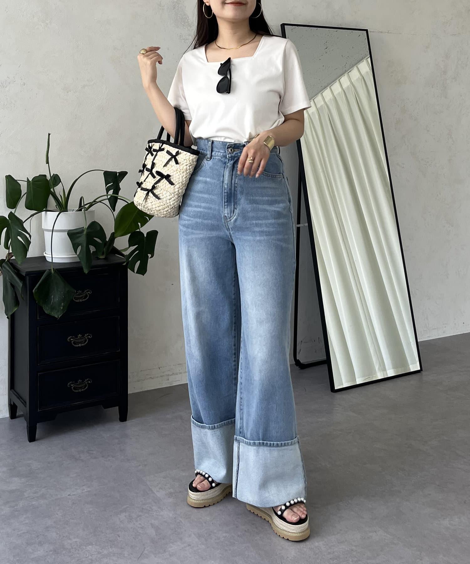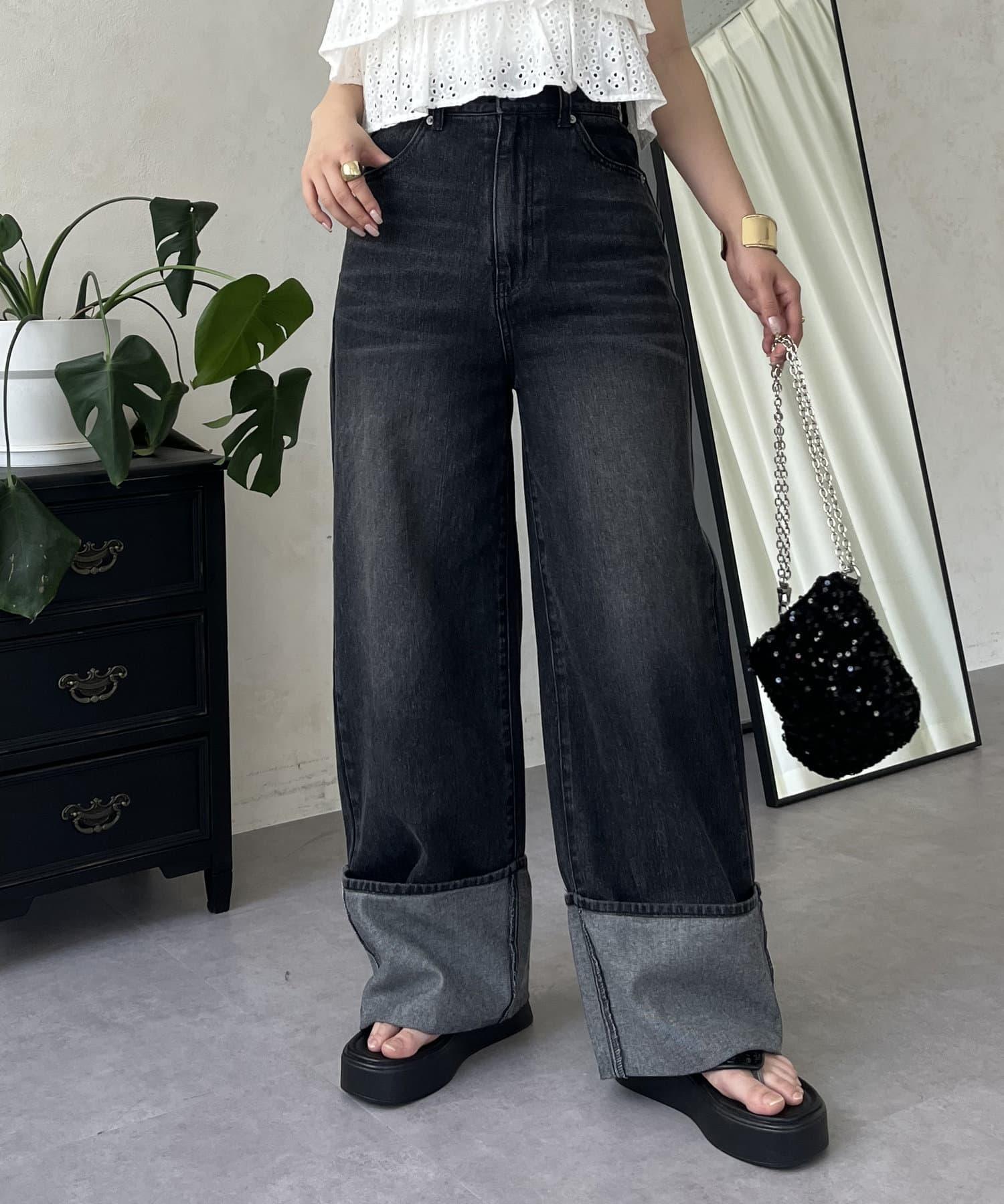牛仔褲/寬鬆/捲起/成人休閒裝