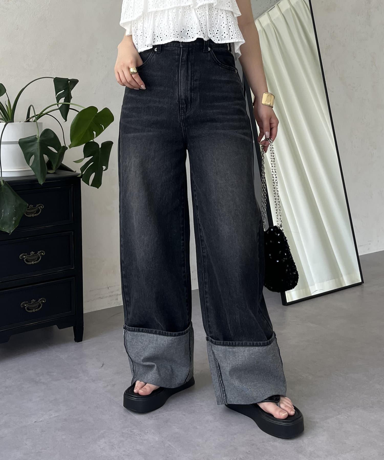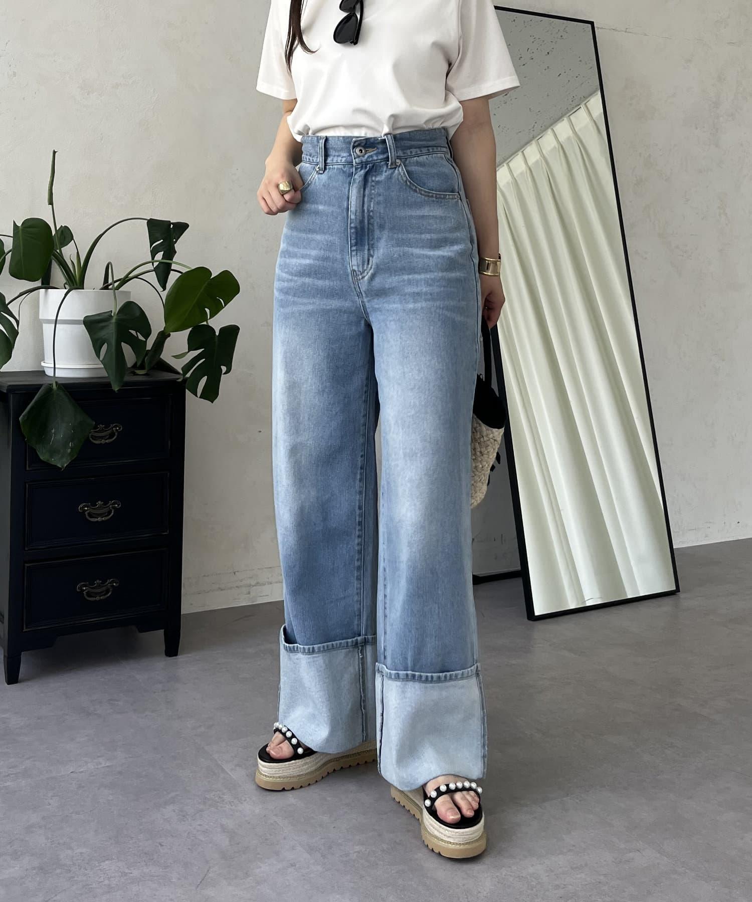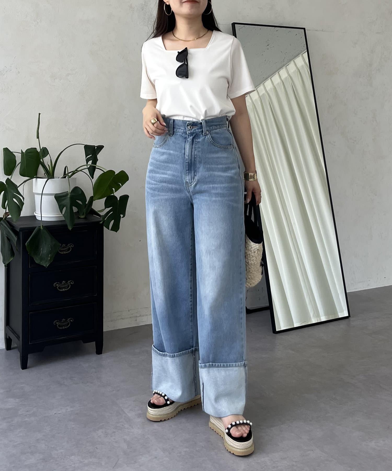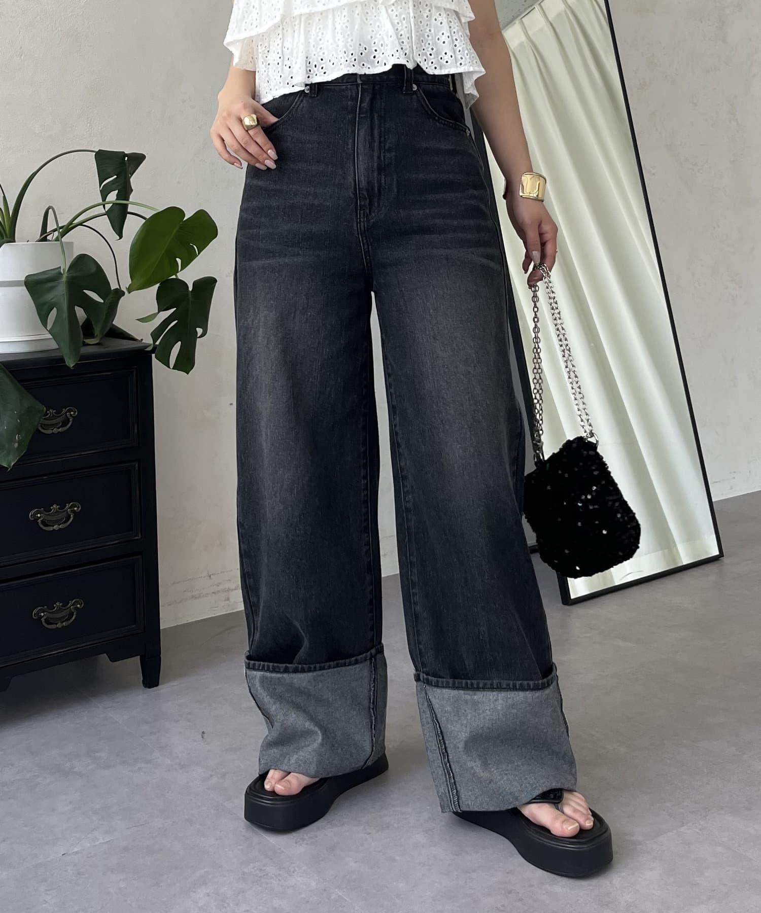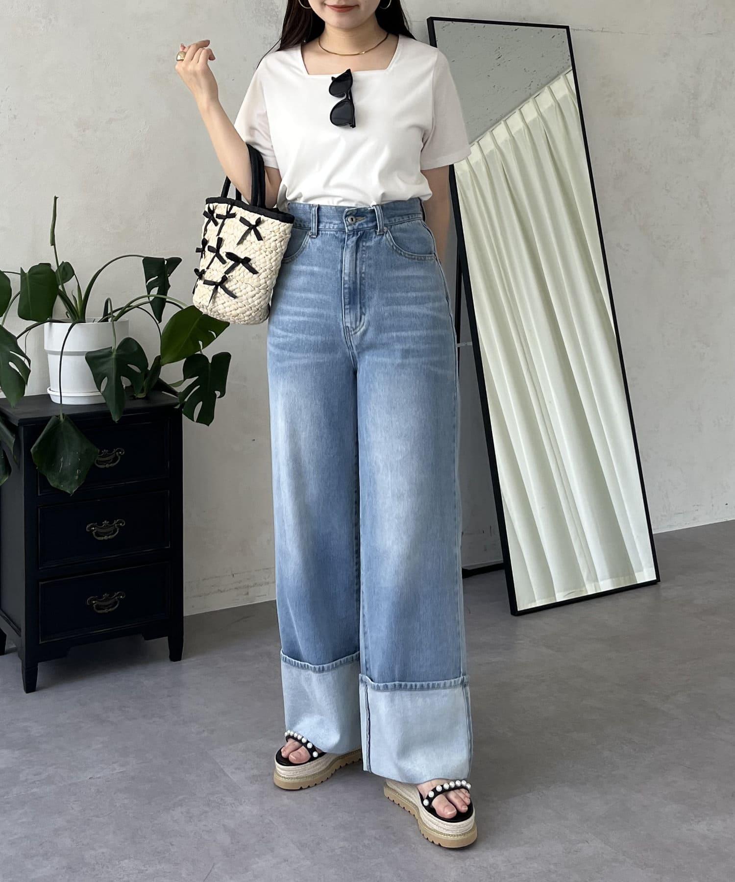 牛仔褲/寬鬆/捲起/成人休閒裝