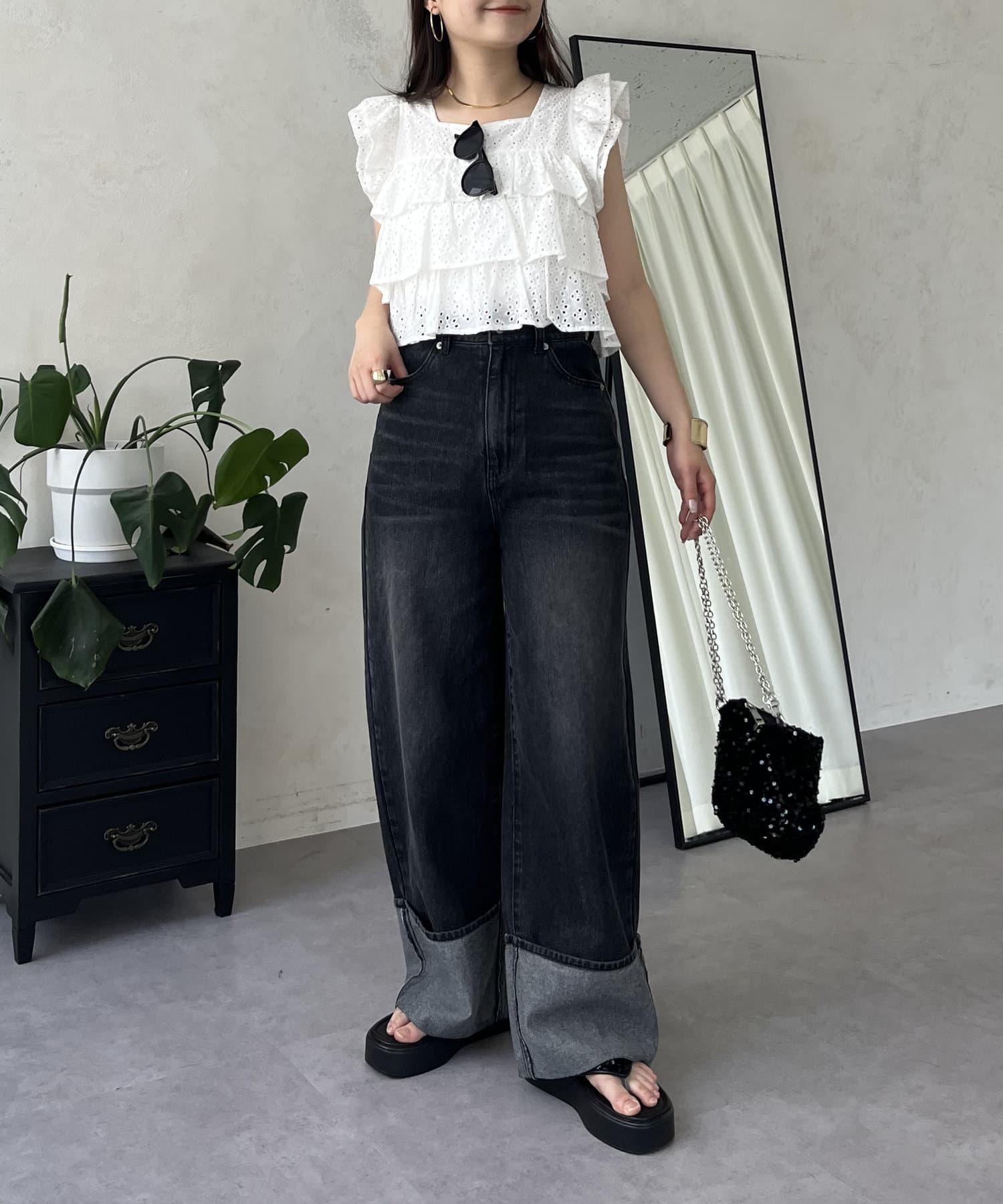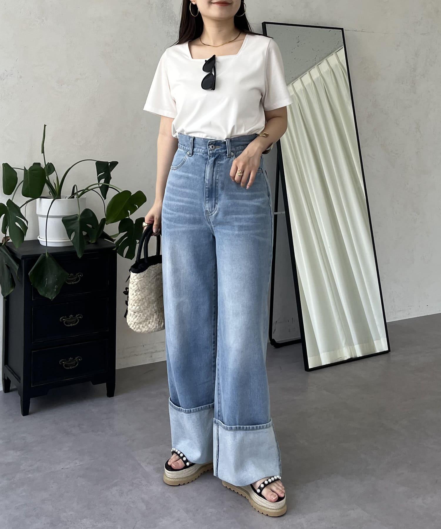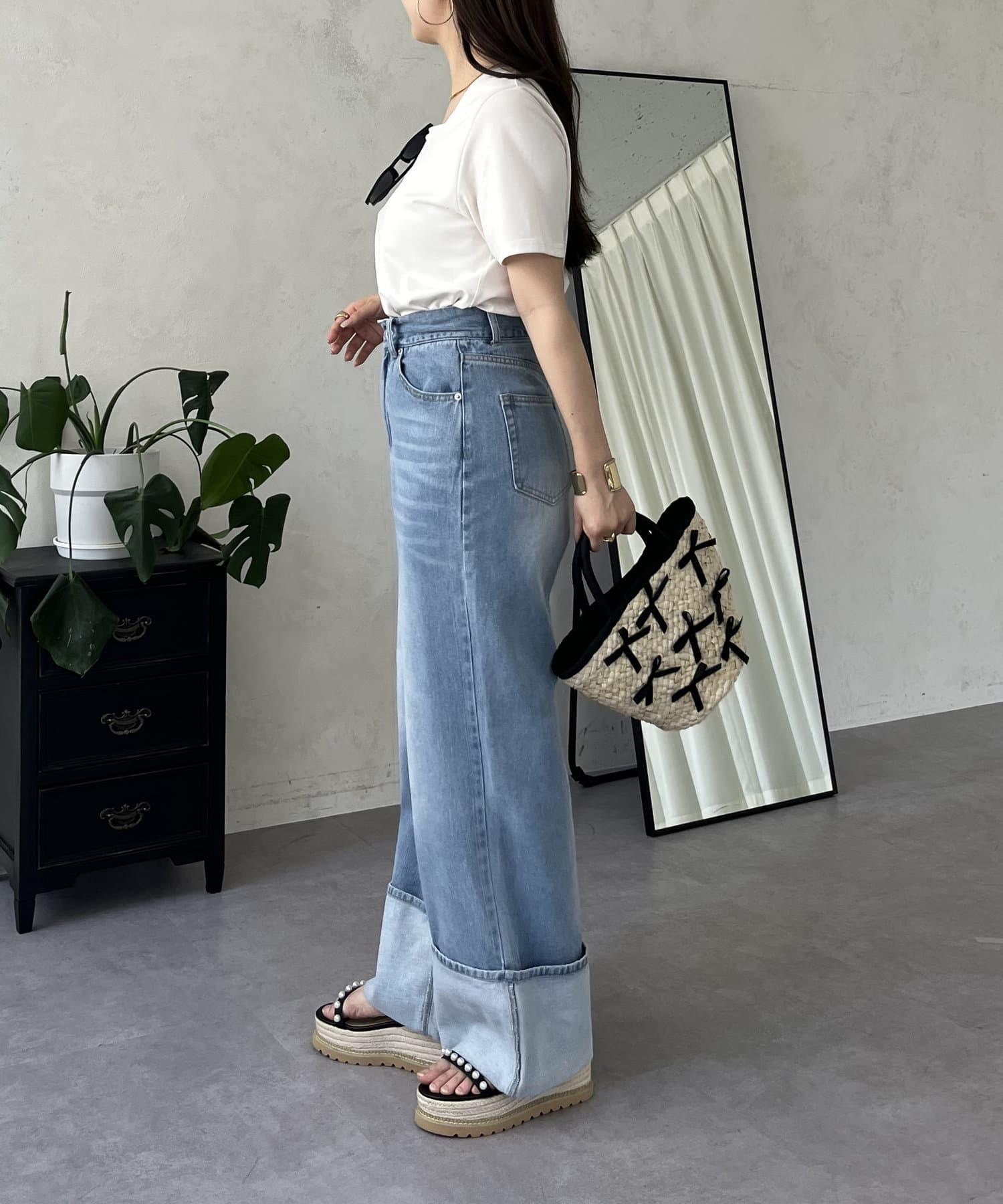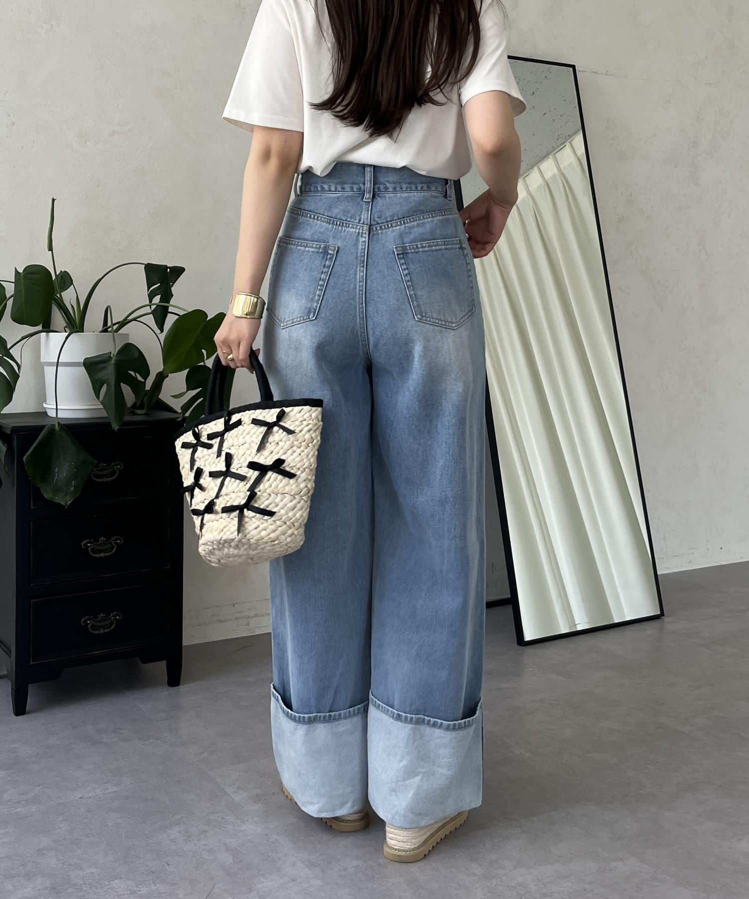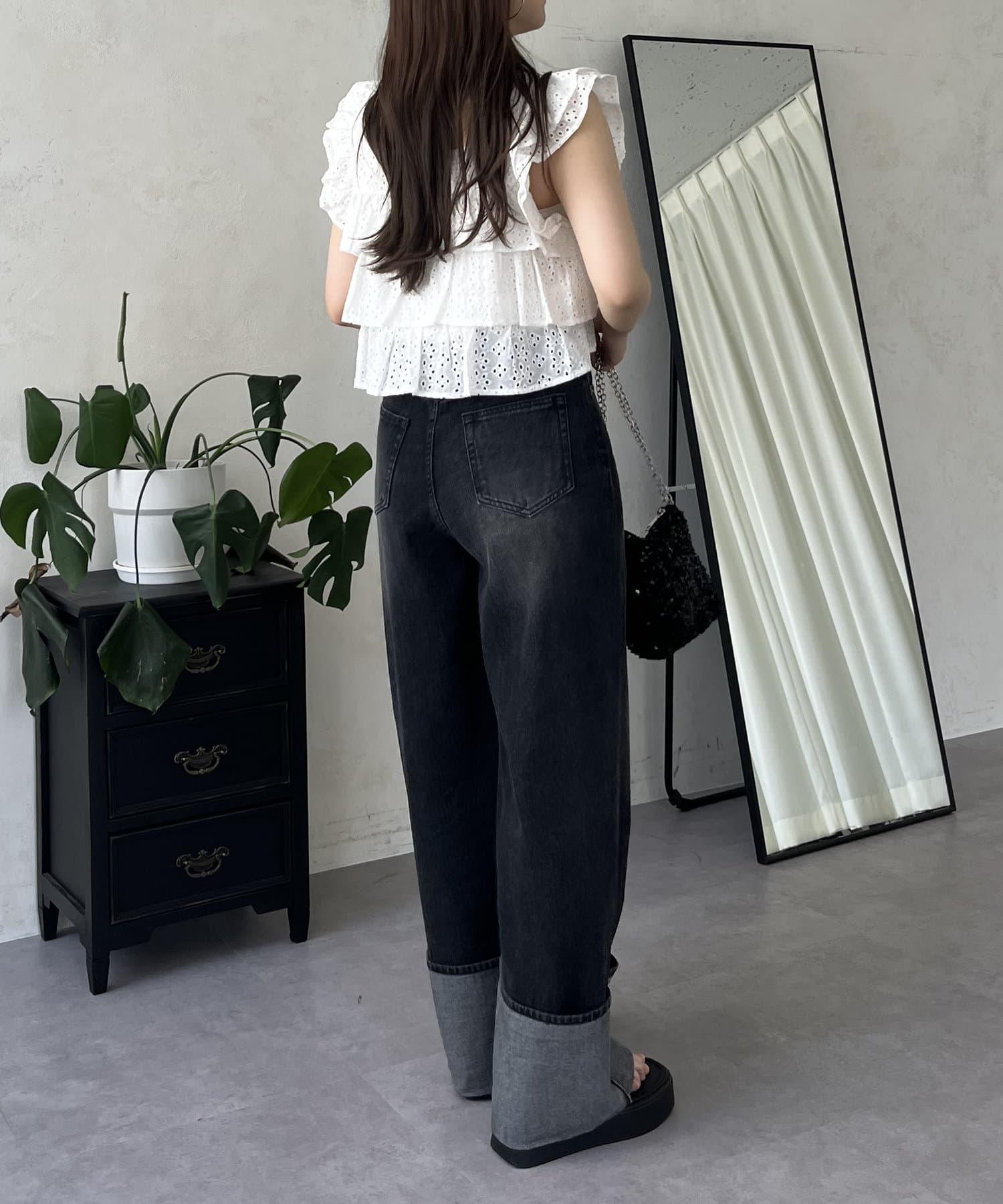 牛仔褲/寬鬆/捲起/成人休閒裝
