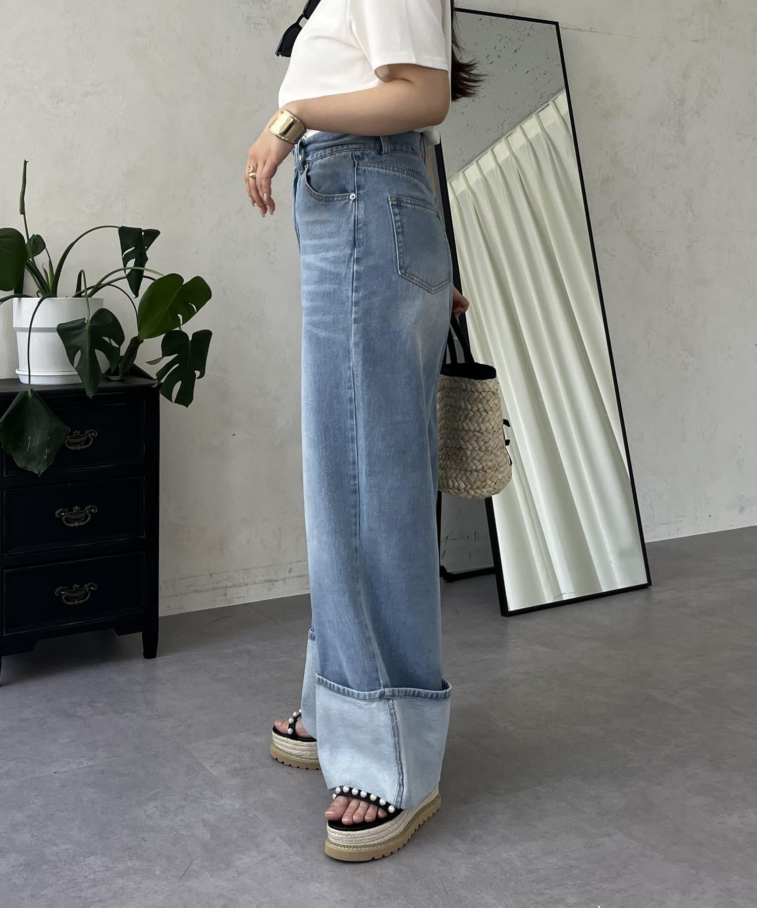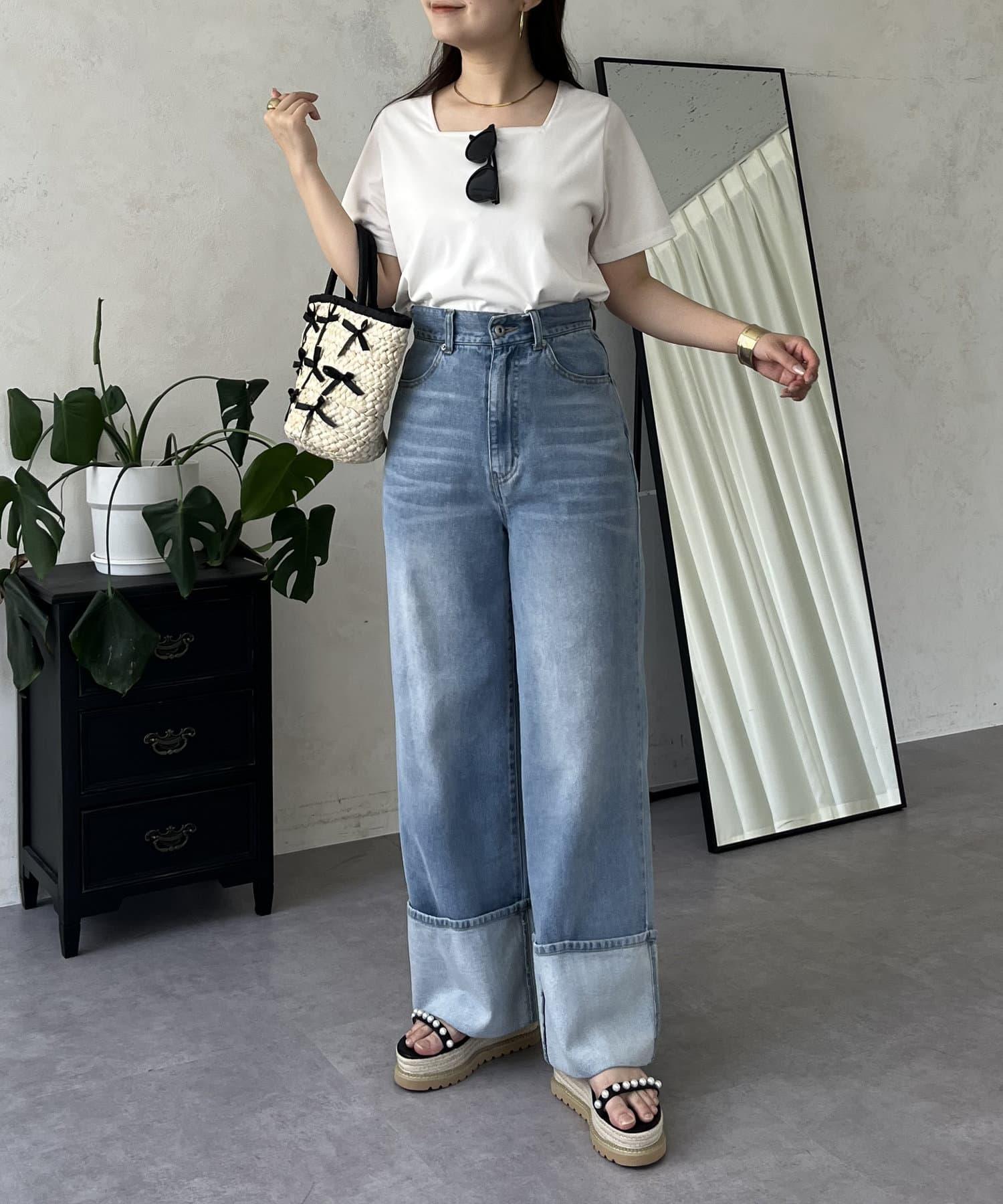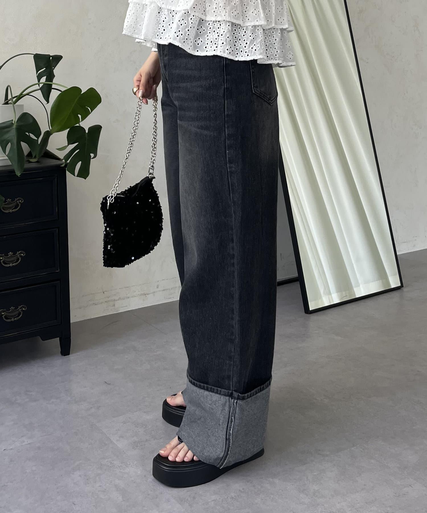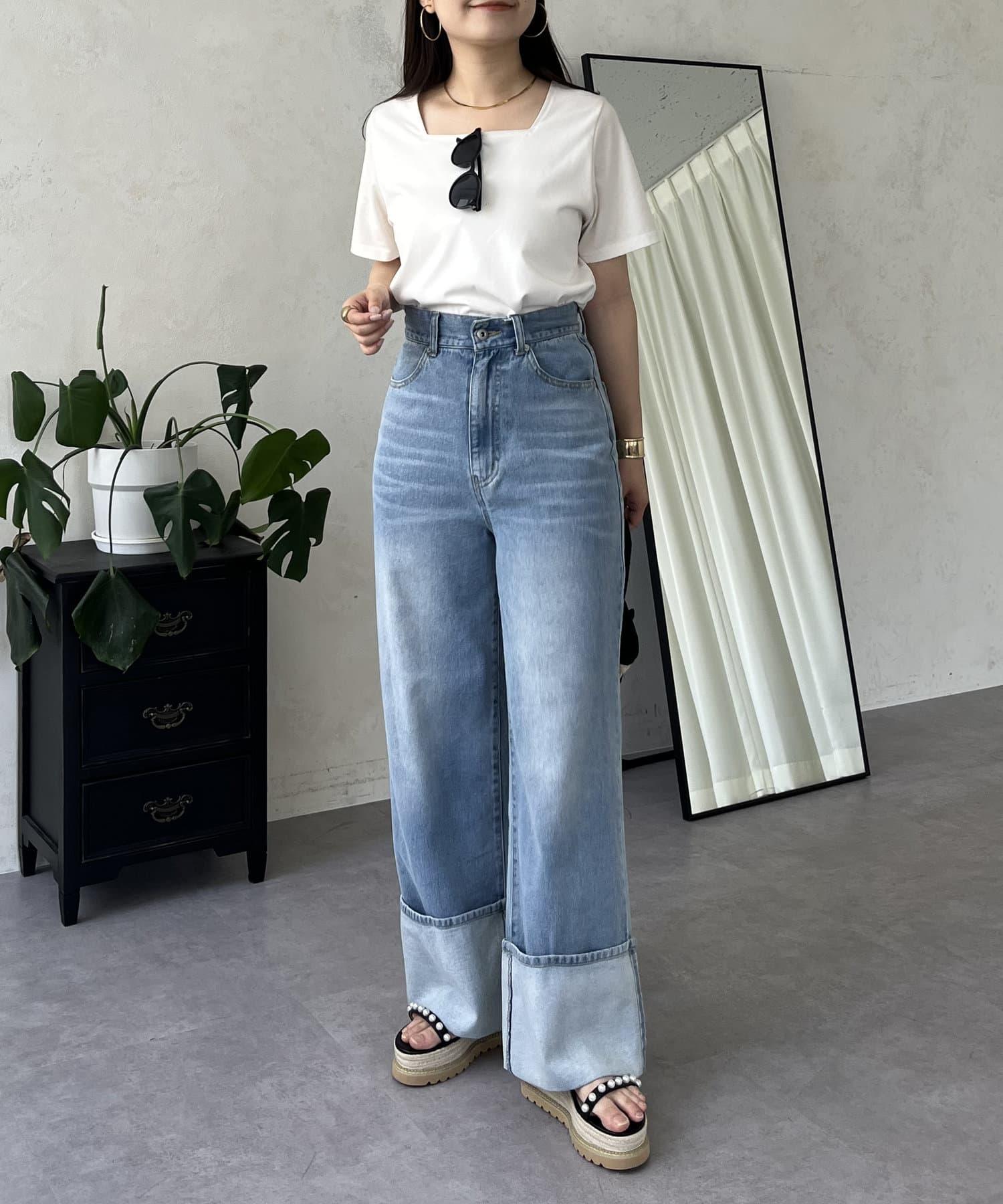 牛仔褲/寬鬆/捲起/成人休閒裝