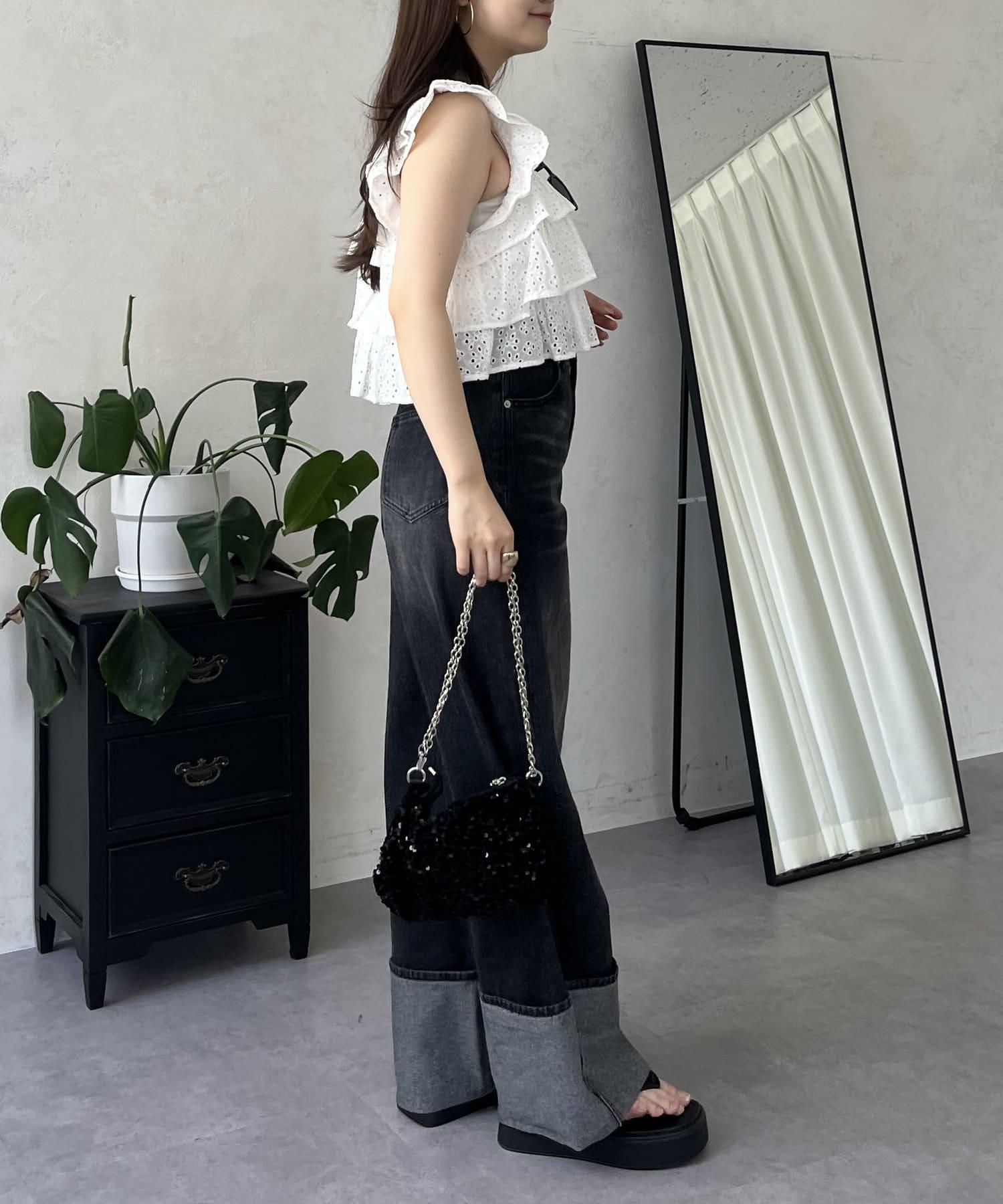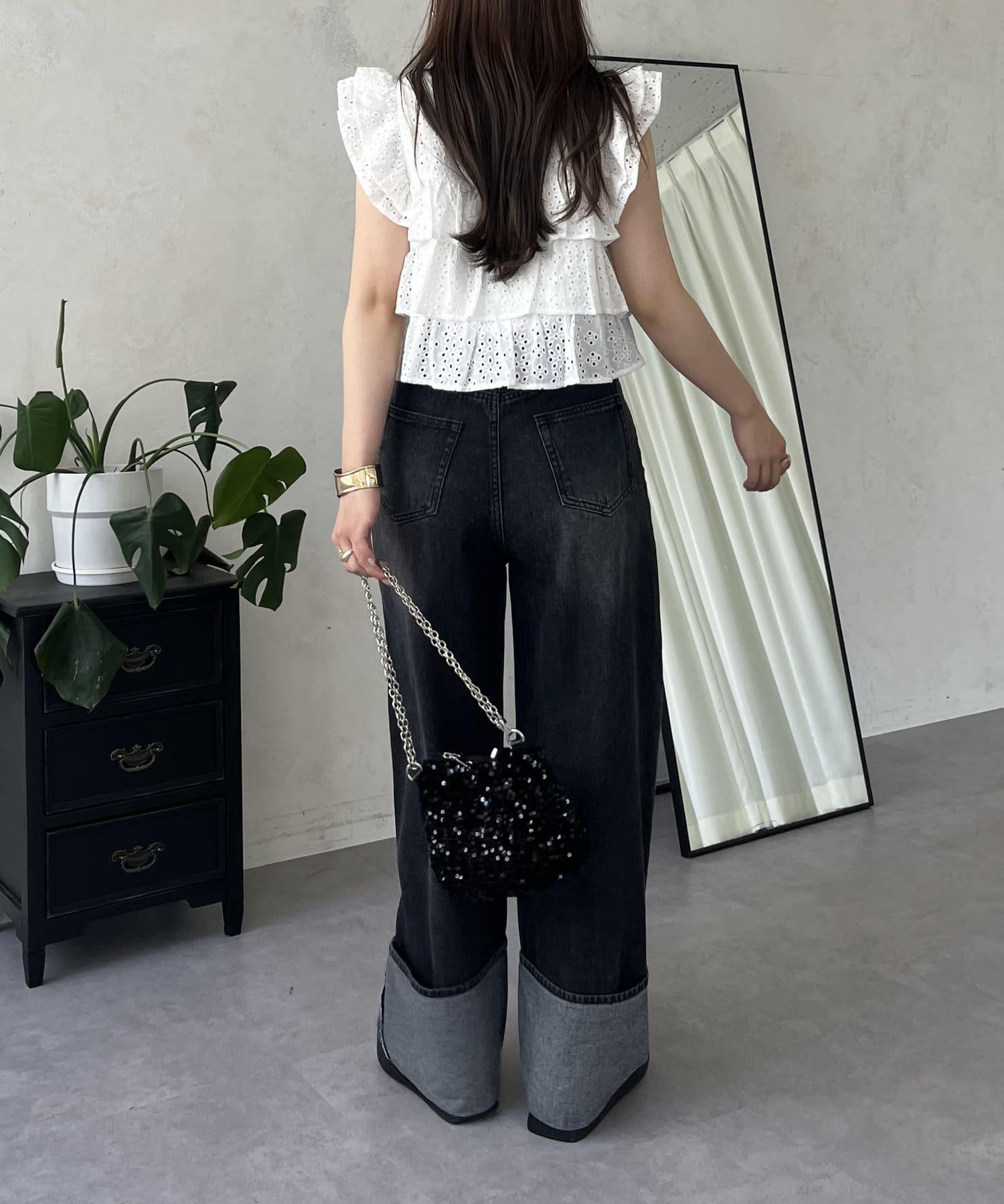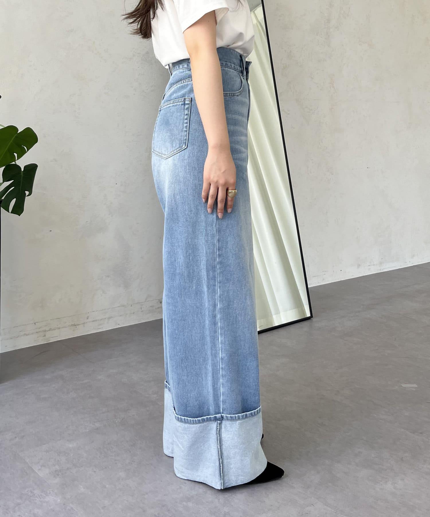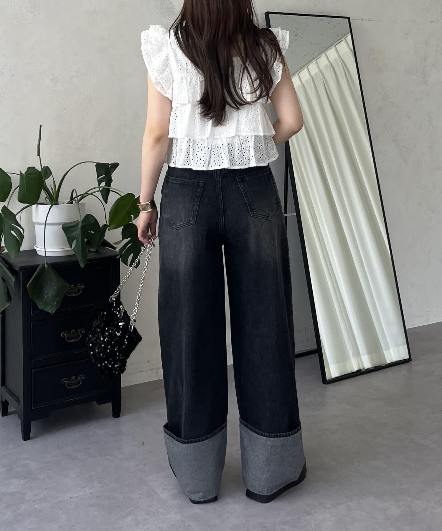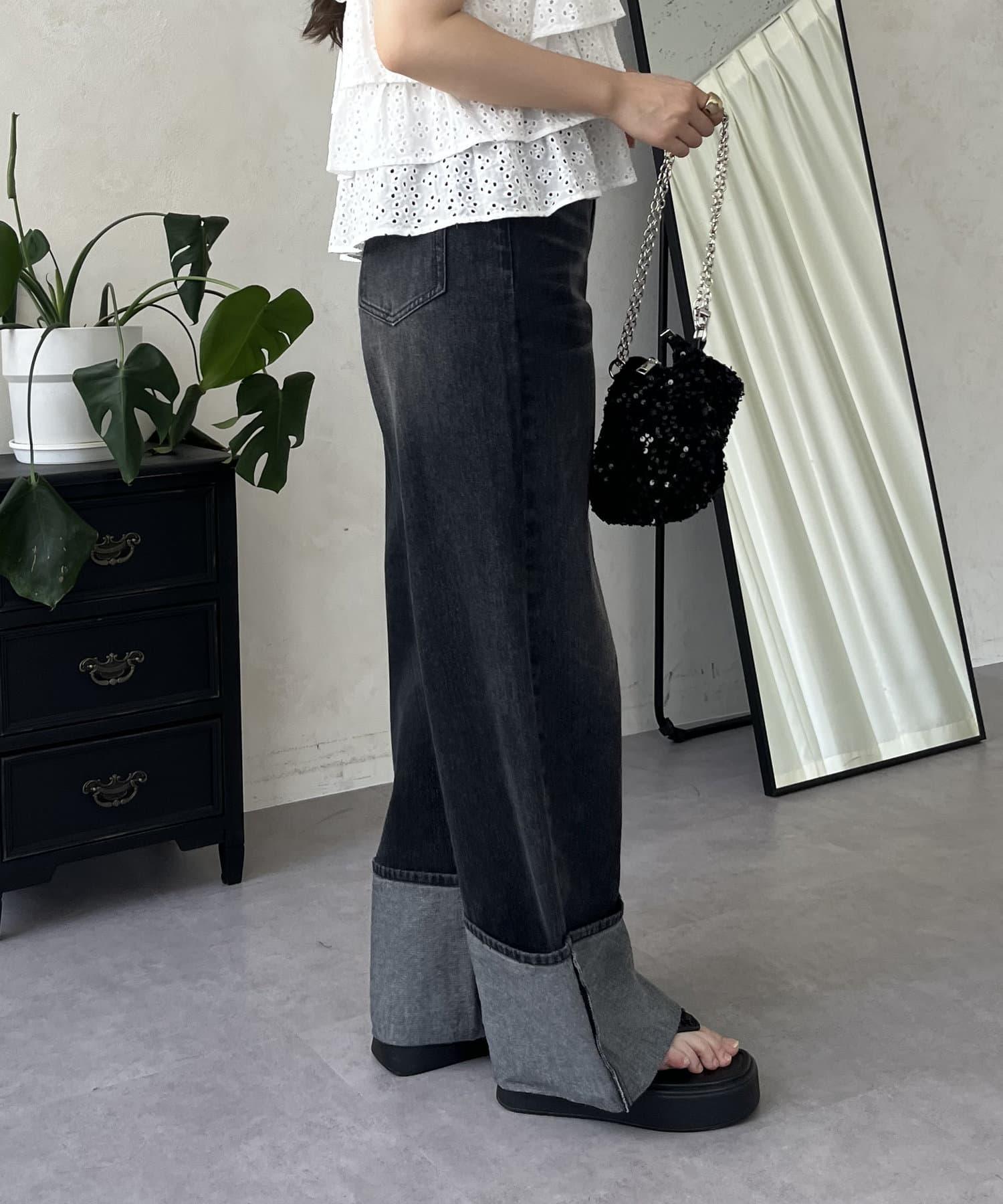牛仔褲/寬鬆/捲起/成人休閒裝