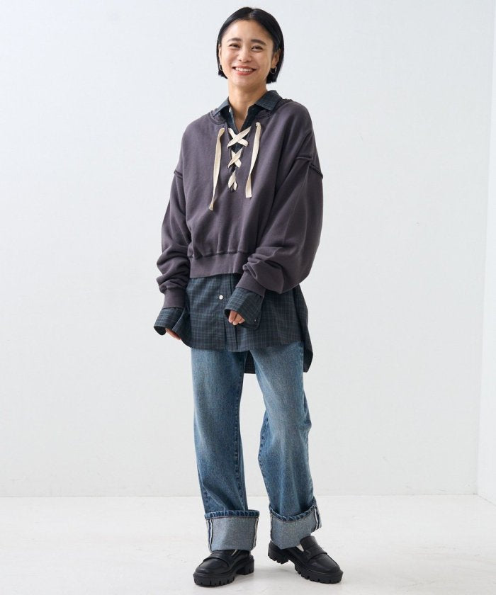 廓形具有復古牛仔褲的褪色效果,褲腿輪廓美觀大方。