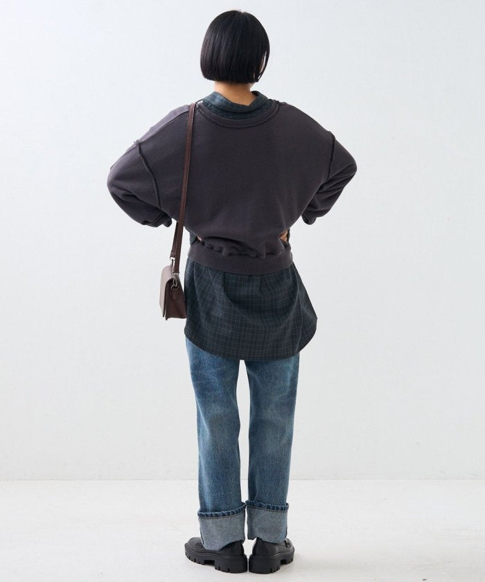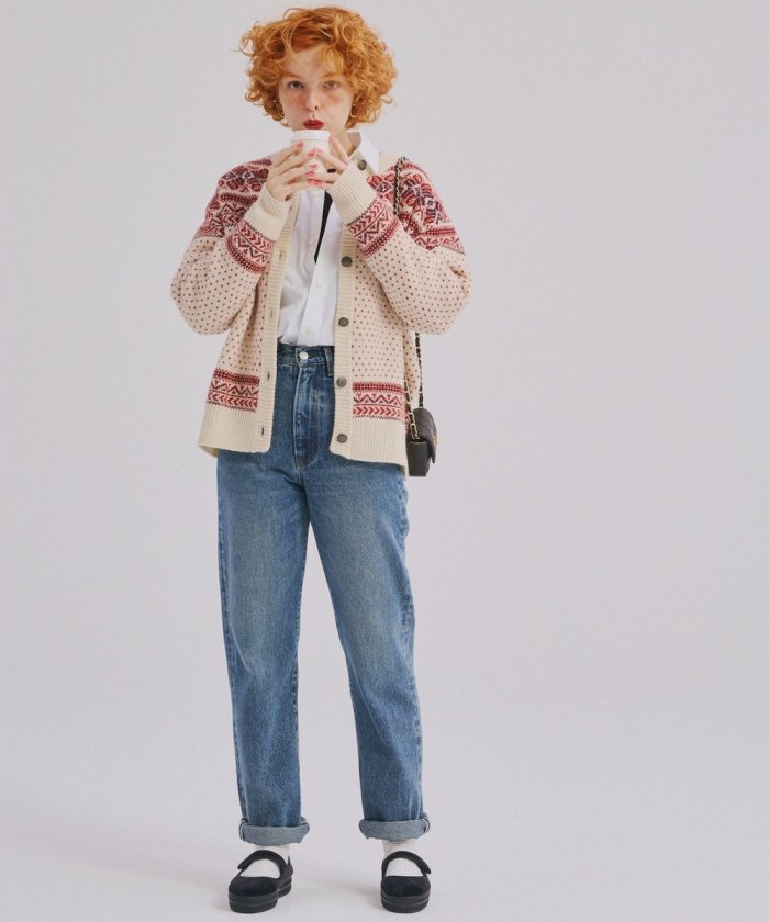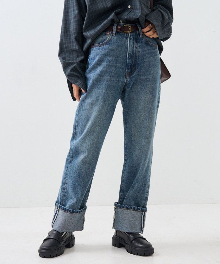 百搭牛仔長褲,厚實的卷邊裝飾。