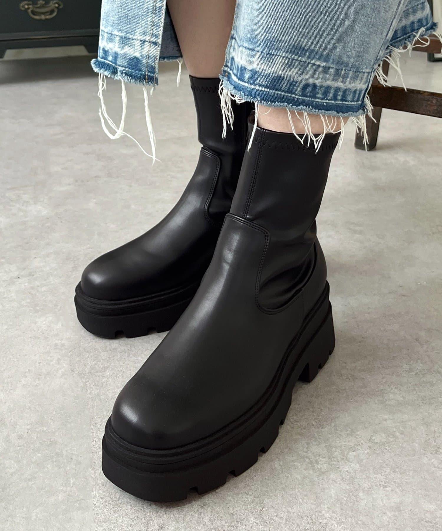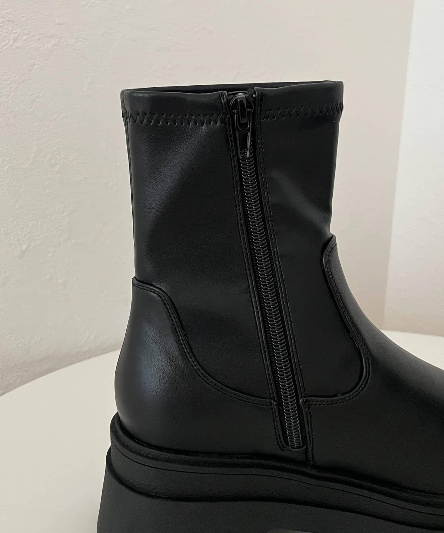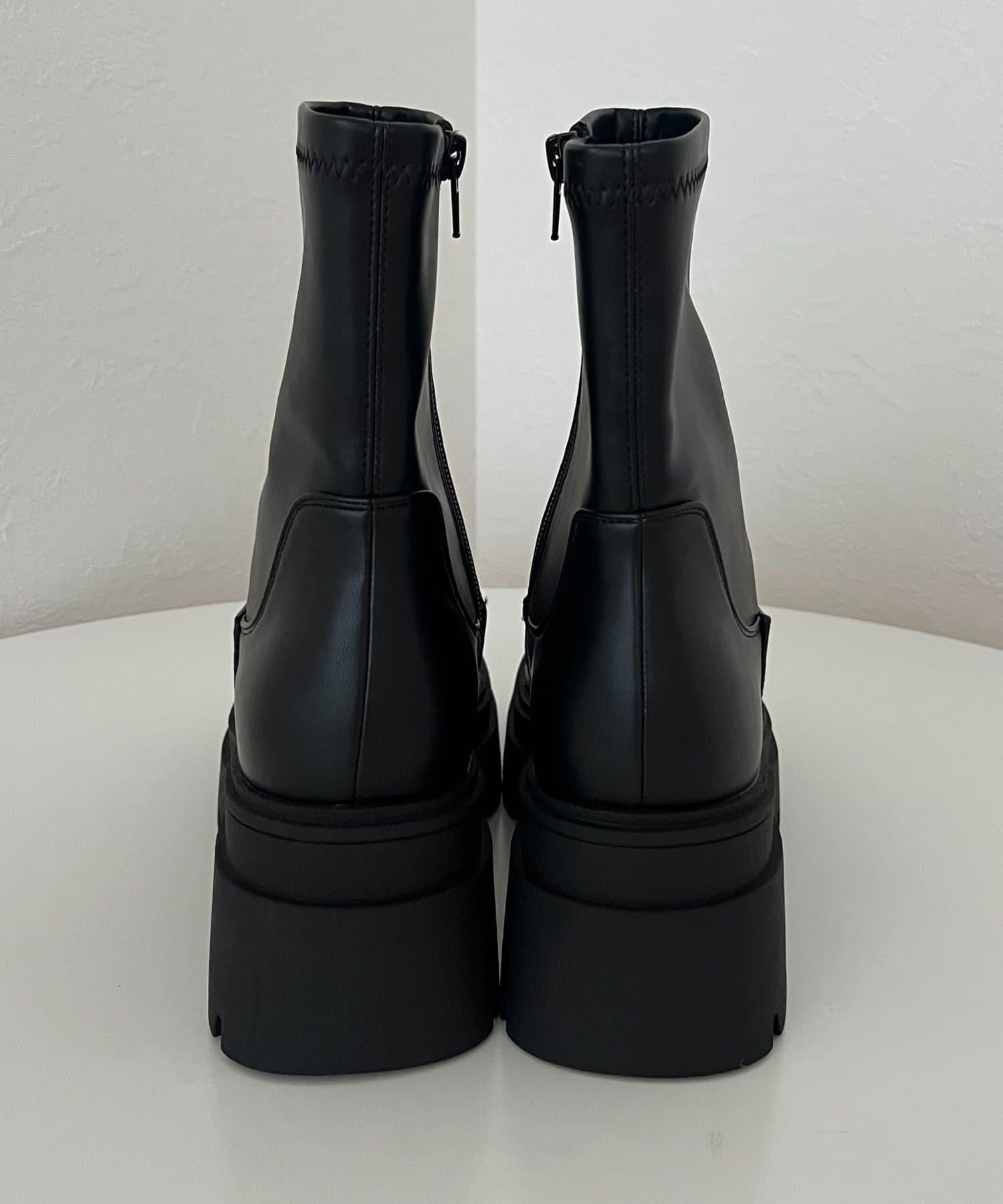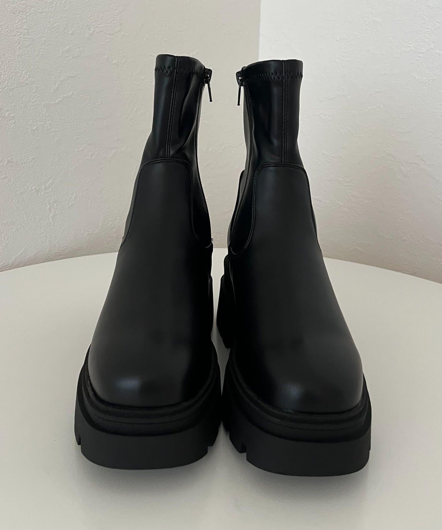 厚底粗跟彈力短靴,具有拉長腿部線條的效果!