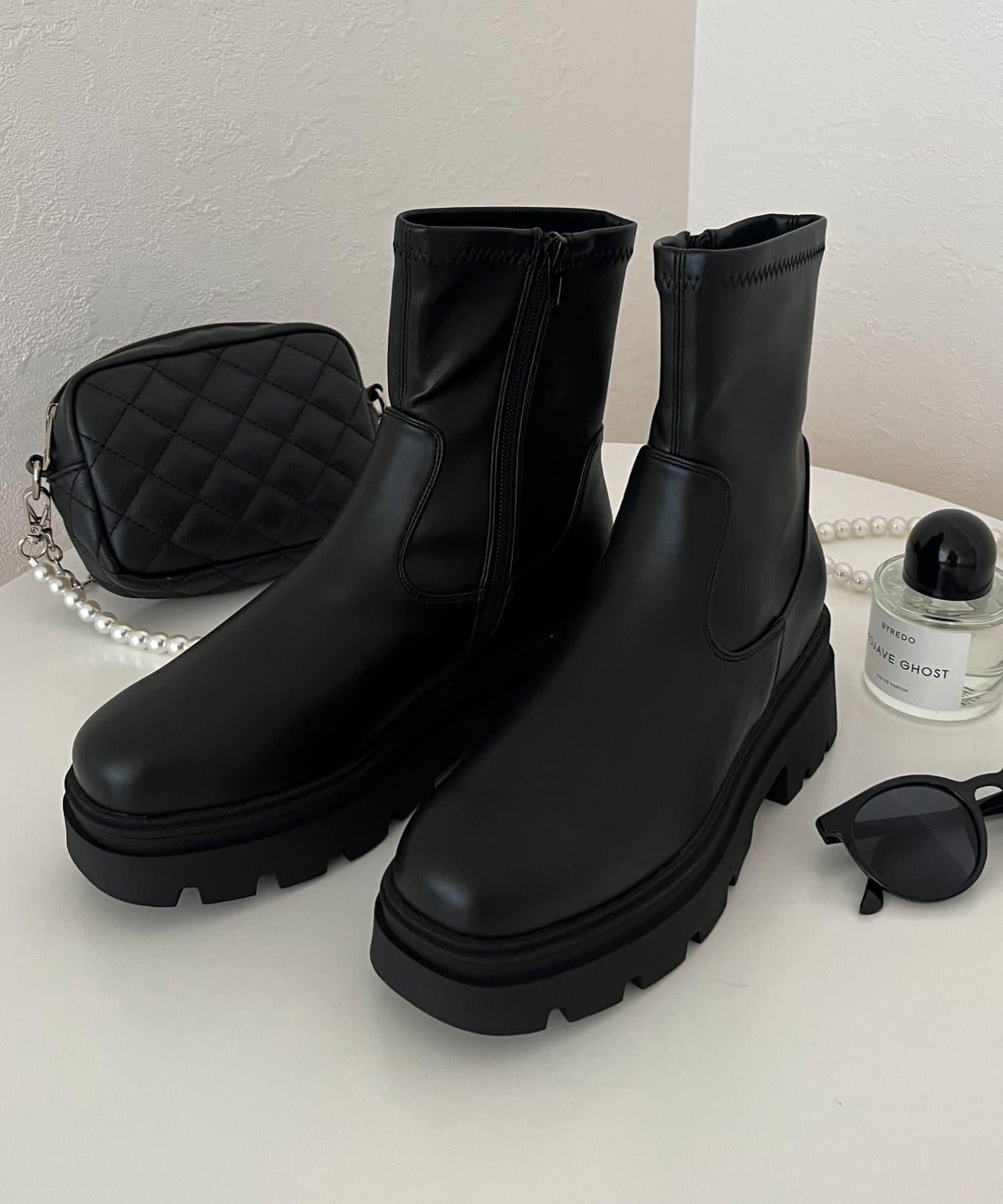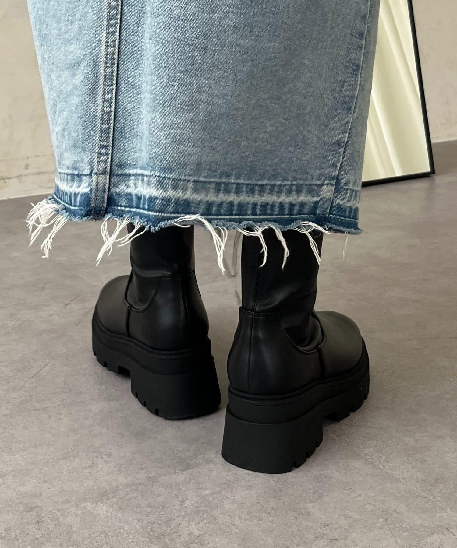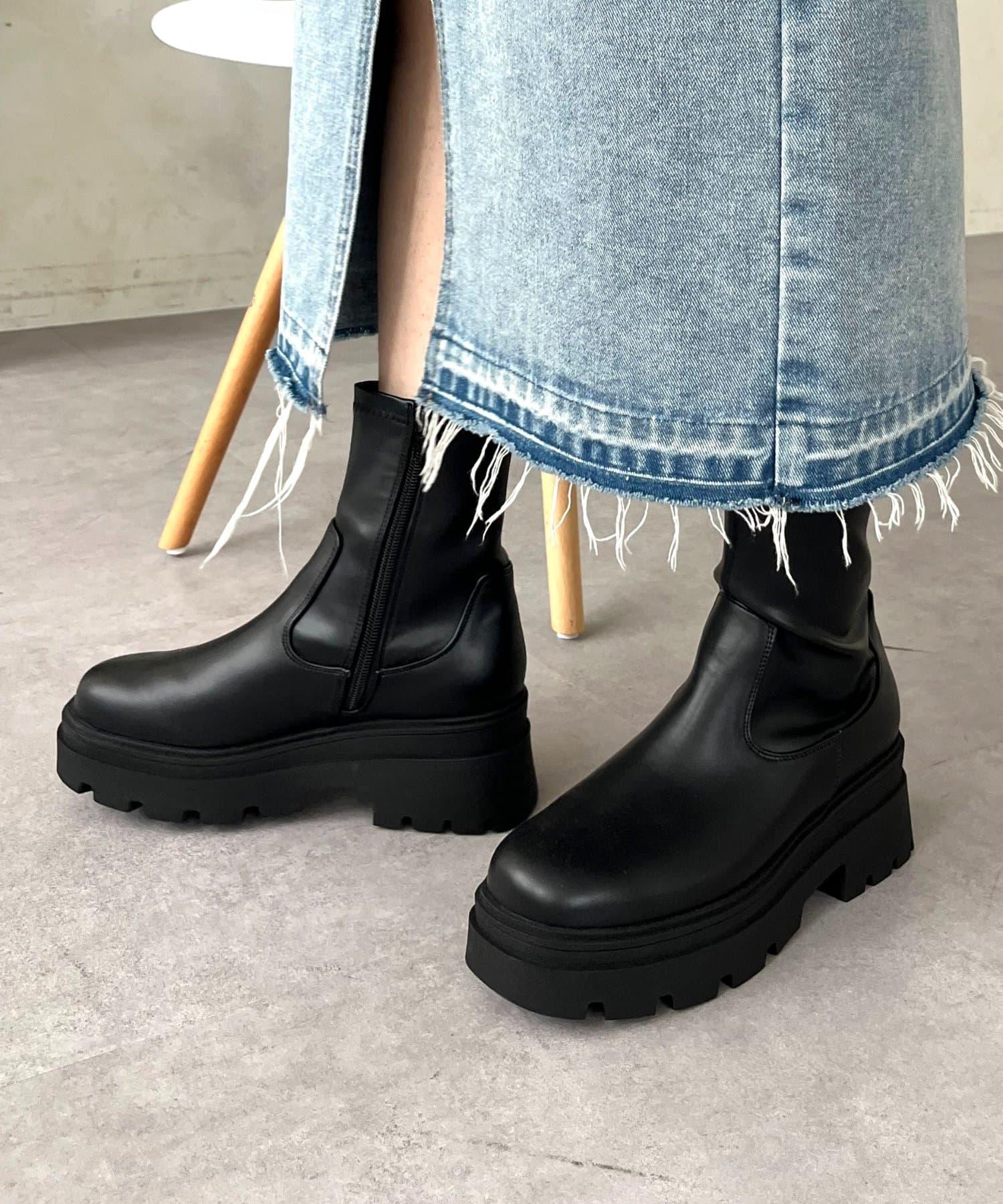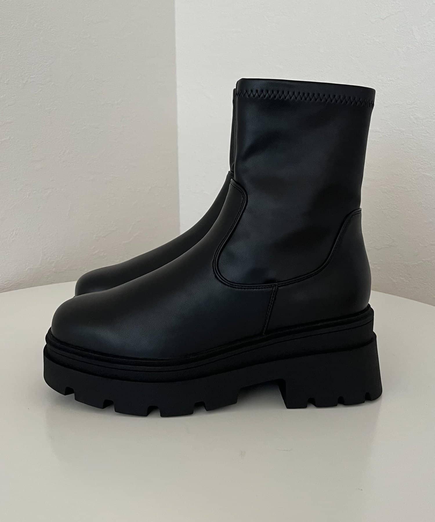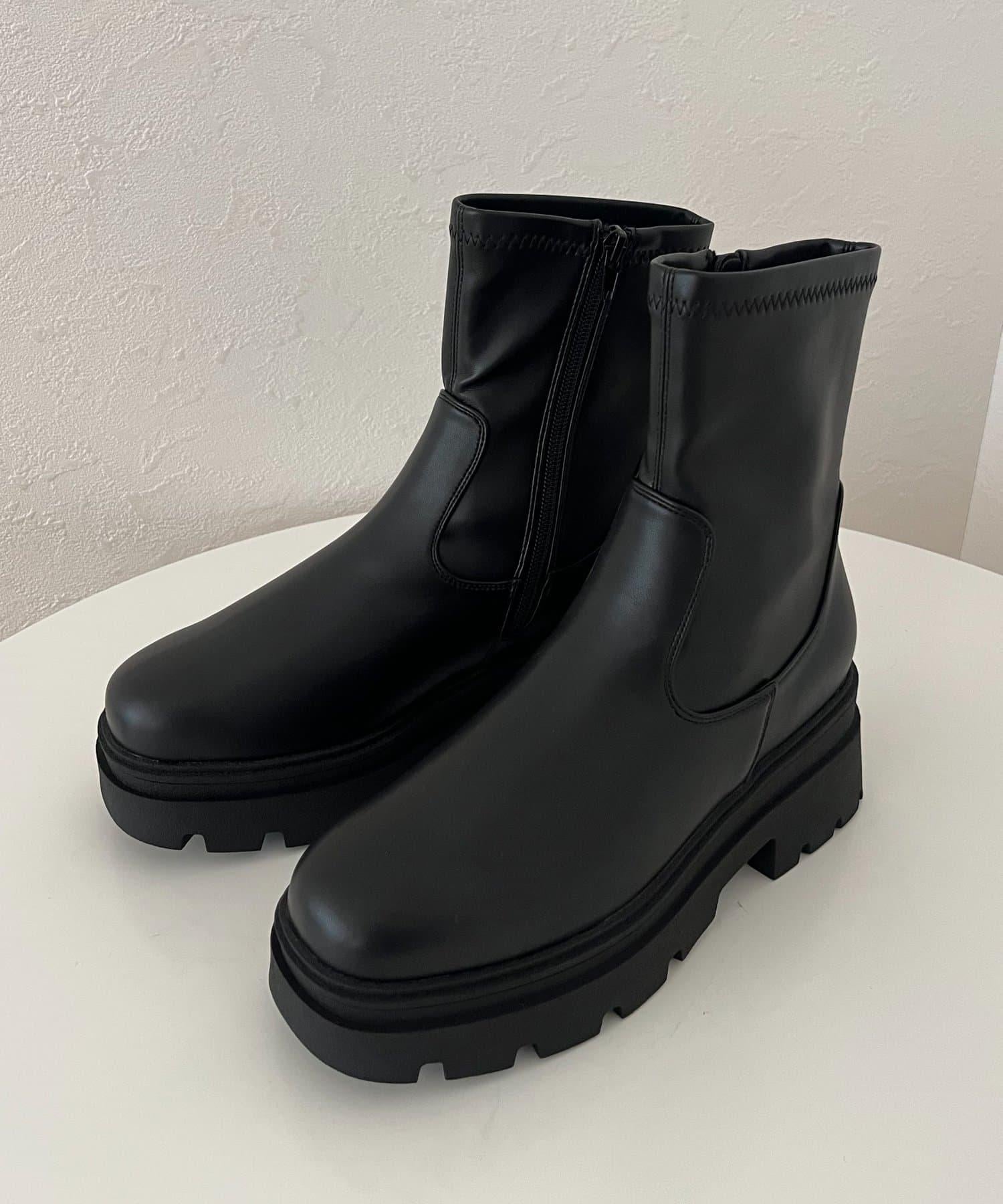 厚底粗跟彈力短靴,具有拉長腿部線條的效果!